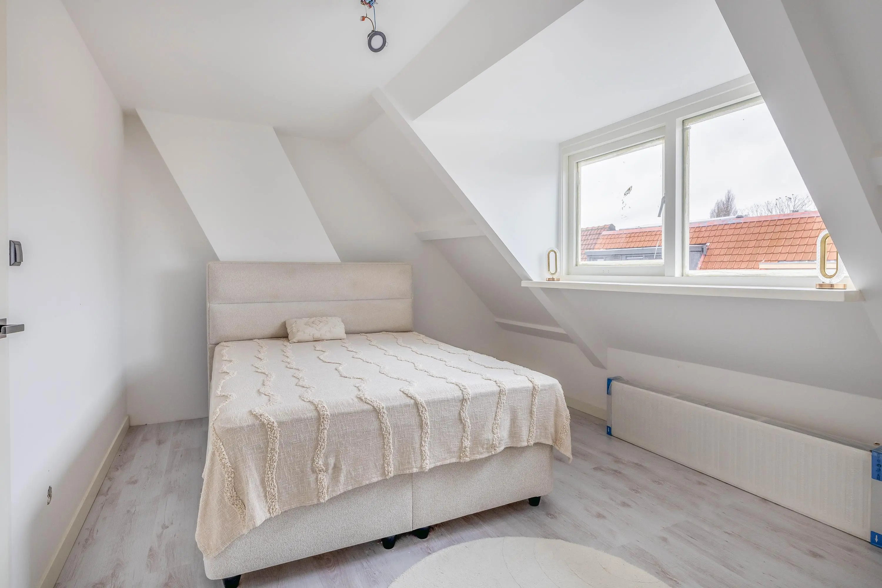 De derde slaapkamer bevindt zich aan de voorzijde van de woning en heeft een oppervlakte van circa 13m². Dankzij een dakkapel is deze slaapkamer vergroot en zeer licht. De vierde slaapkamer ligt eveneens aan de voorzijde en meet ongeveer 9m².