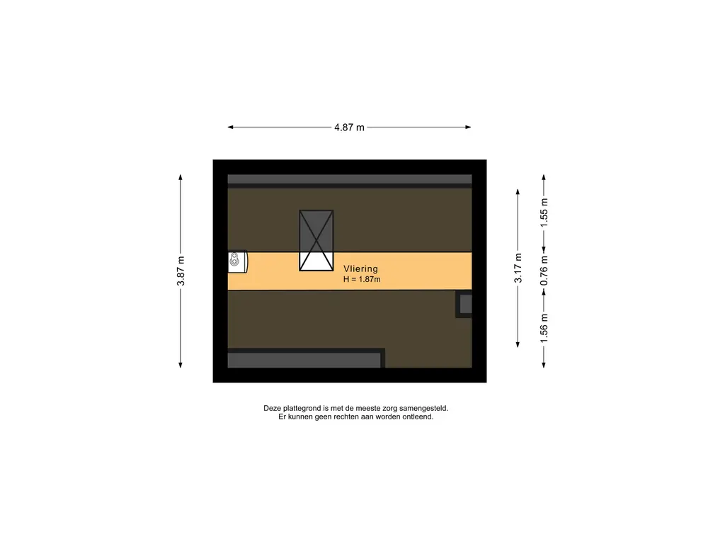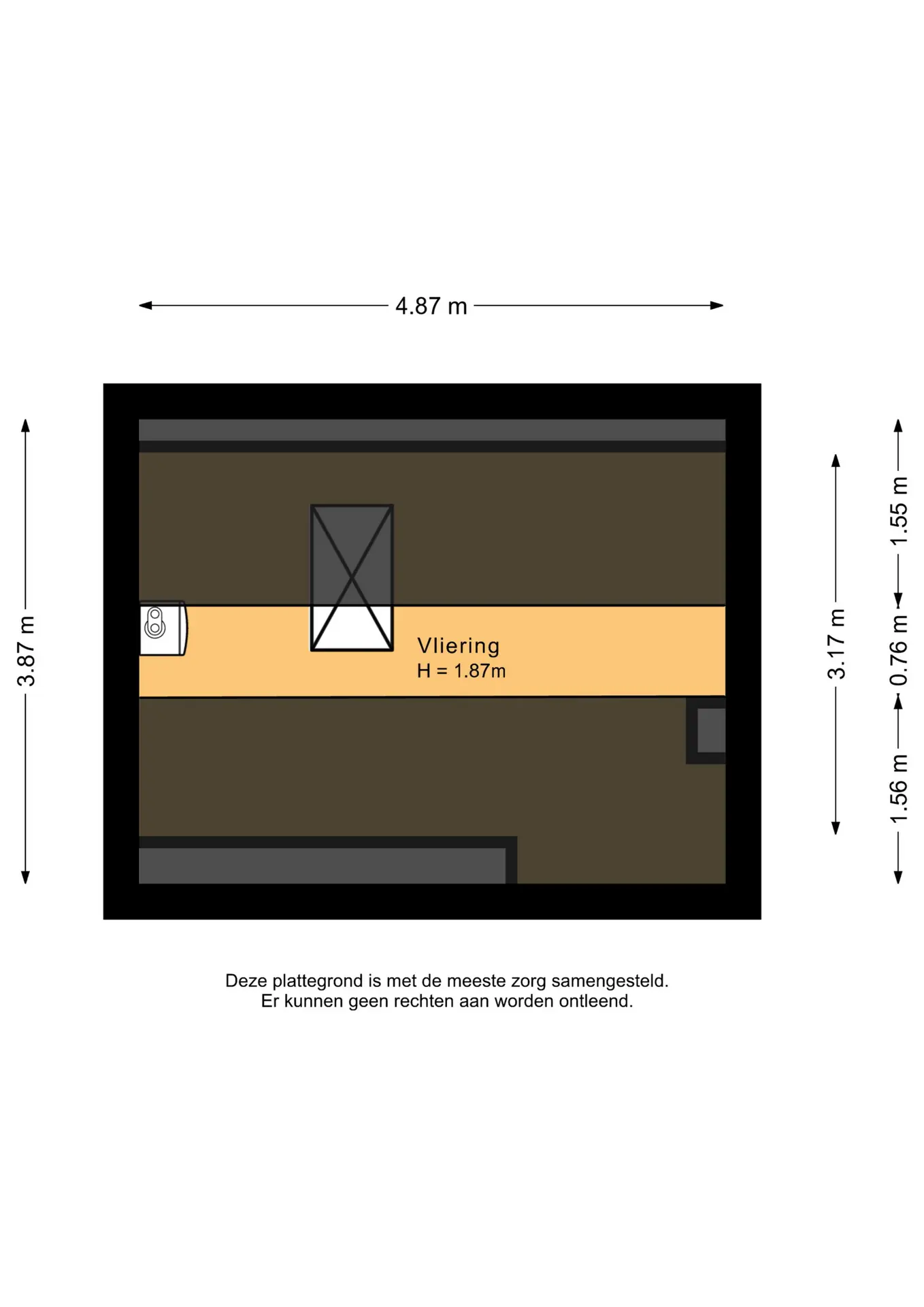 De vliering van circa 15,5m² biedt ruimte voor de CV-opstelling.