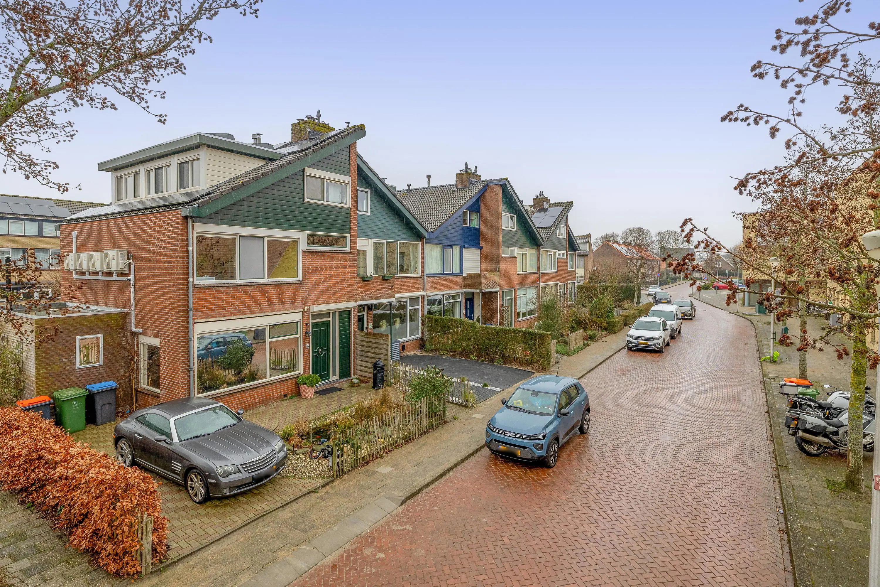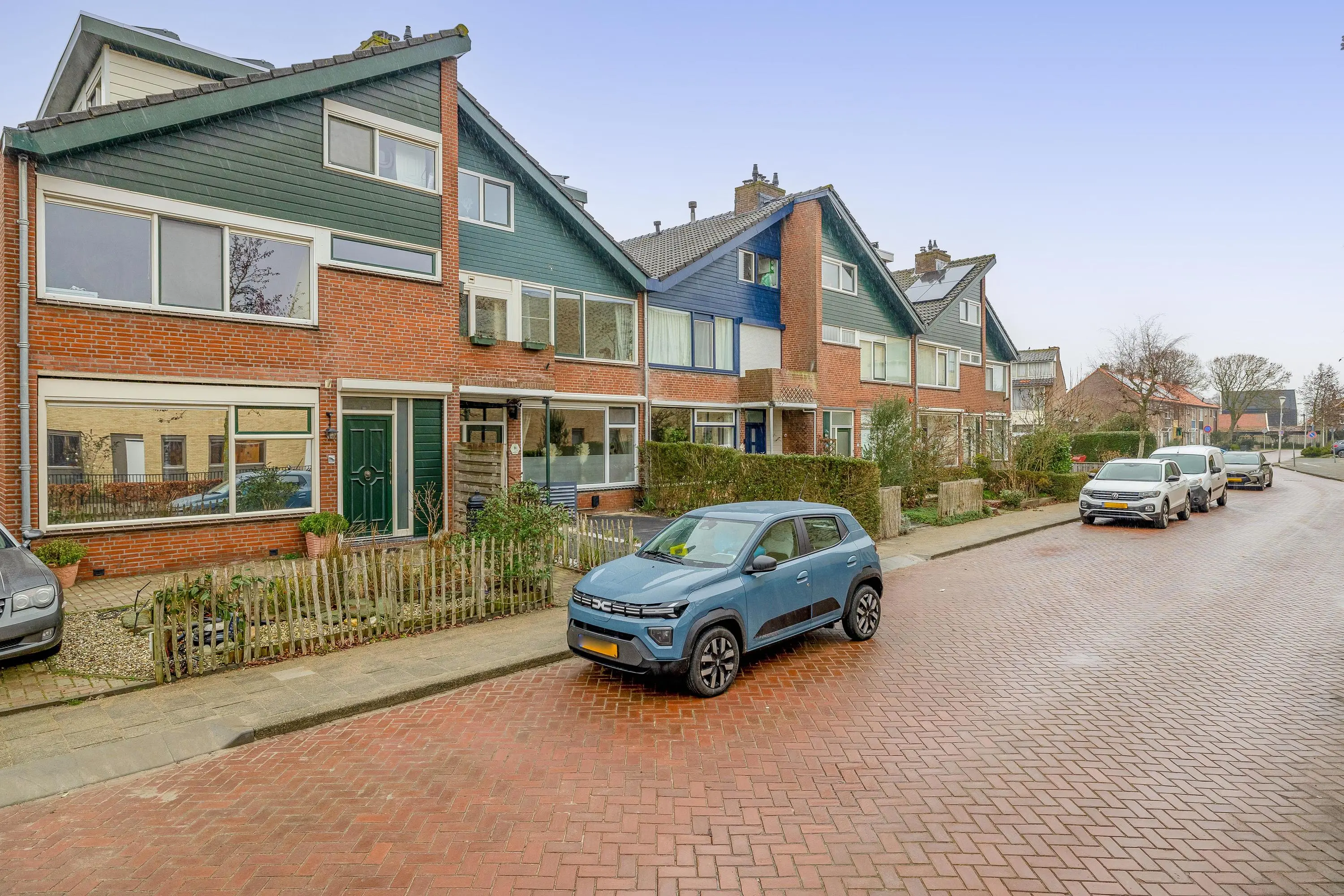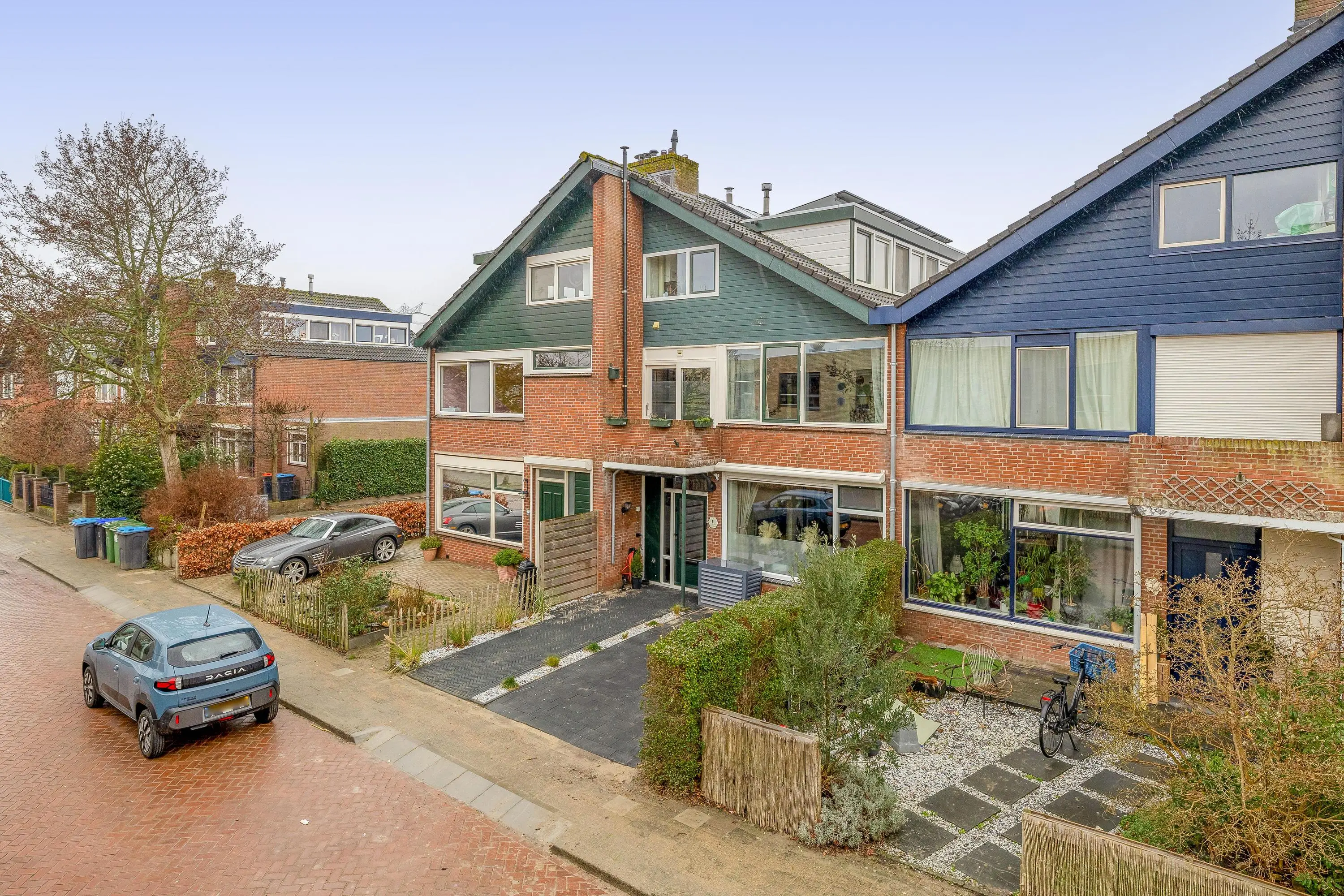 De voortuin is volledig bestraat en biedt de mogelijkheid om op eigen terrein te parkeren, inclusief een laadpunt voor een elektrische auto. Tussen het pad naar de voordeur en de parkeerplaats ligt een strook met kiezelsteentjes als subtiele scheiding. De achtertuin is een sfeervolle mix van groen, bestrating en vlonderplanken, waar eenvoudig een gezellige zithoek gerealiseerd kan worden. Daarnaast is er een stenen berging van circa 6m² aanwezig en is de tuin bereikbaar via een achterom.