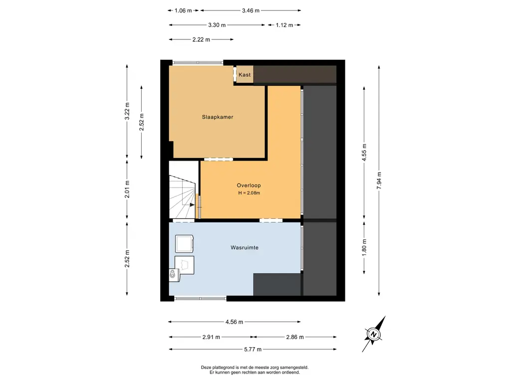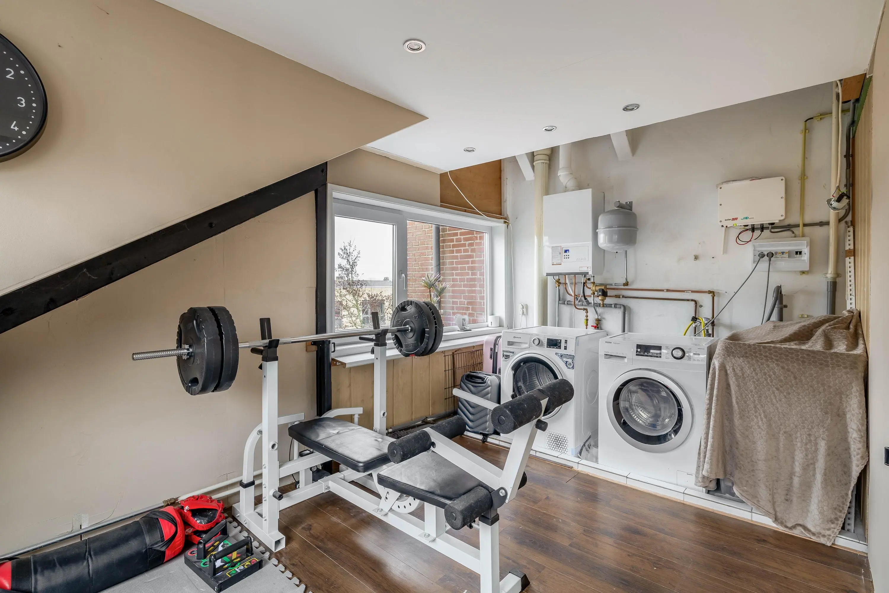 Ook de tweede verdieping is voorzien van laminaat dat doorloopt over de gehele verdieping. Vanaf de overloop is er toegang tot een slaapkamer aan de achterzijde van circa 10,5m² en een multifunctionele ruimte aan de voorzijde. Deze ruimte kan naar eigen wens worden ingericht als extra slaapkamer, werk- of hobbyruimte. Hier bevinden zich bovendien de CV-opstelling en de aansluitingen voor de wasmachine en droger.
