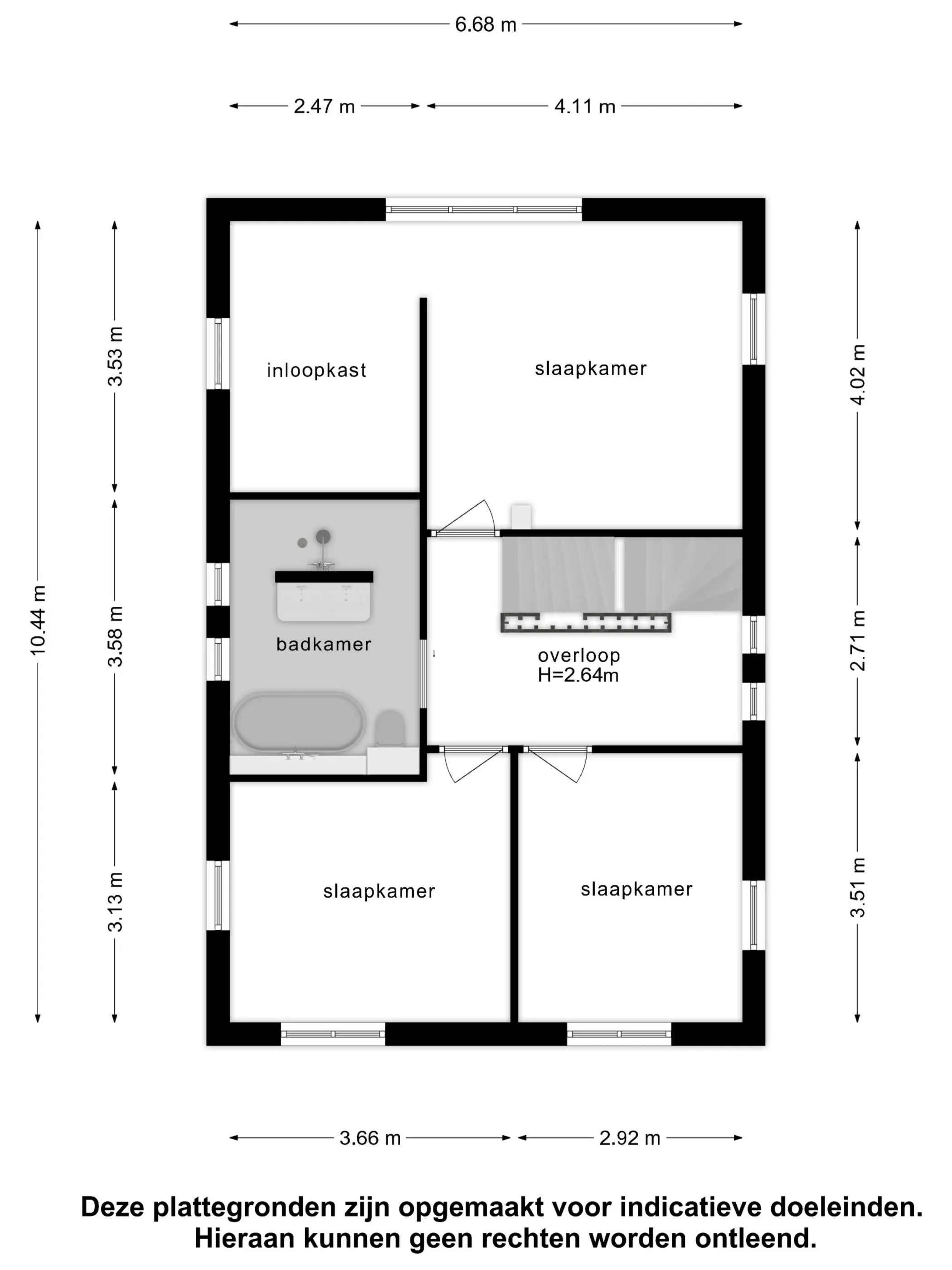 1e verdieping: Overloop met 3 slaapkamers, inloopkast en de luxe badkamer. De master bedroom is gelegen aan de achterzijde van de woning en heeft toegang tot de inloopkast. De slaapkamer heeft een afmeting van ca. 4.11m x 4.02m. De inloopkast heeft een grootte van ca. 3.53m x 2.47.