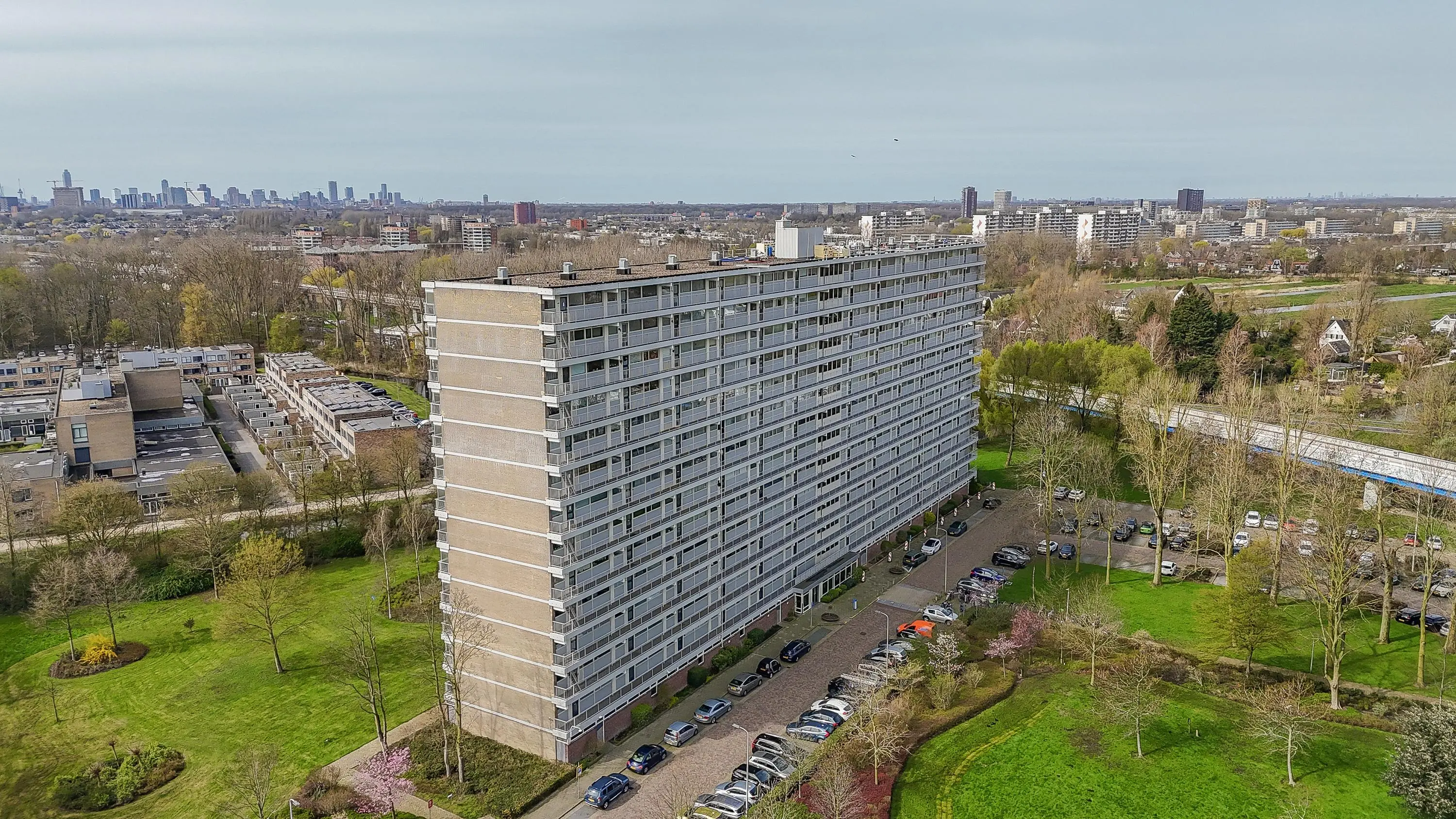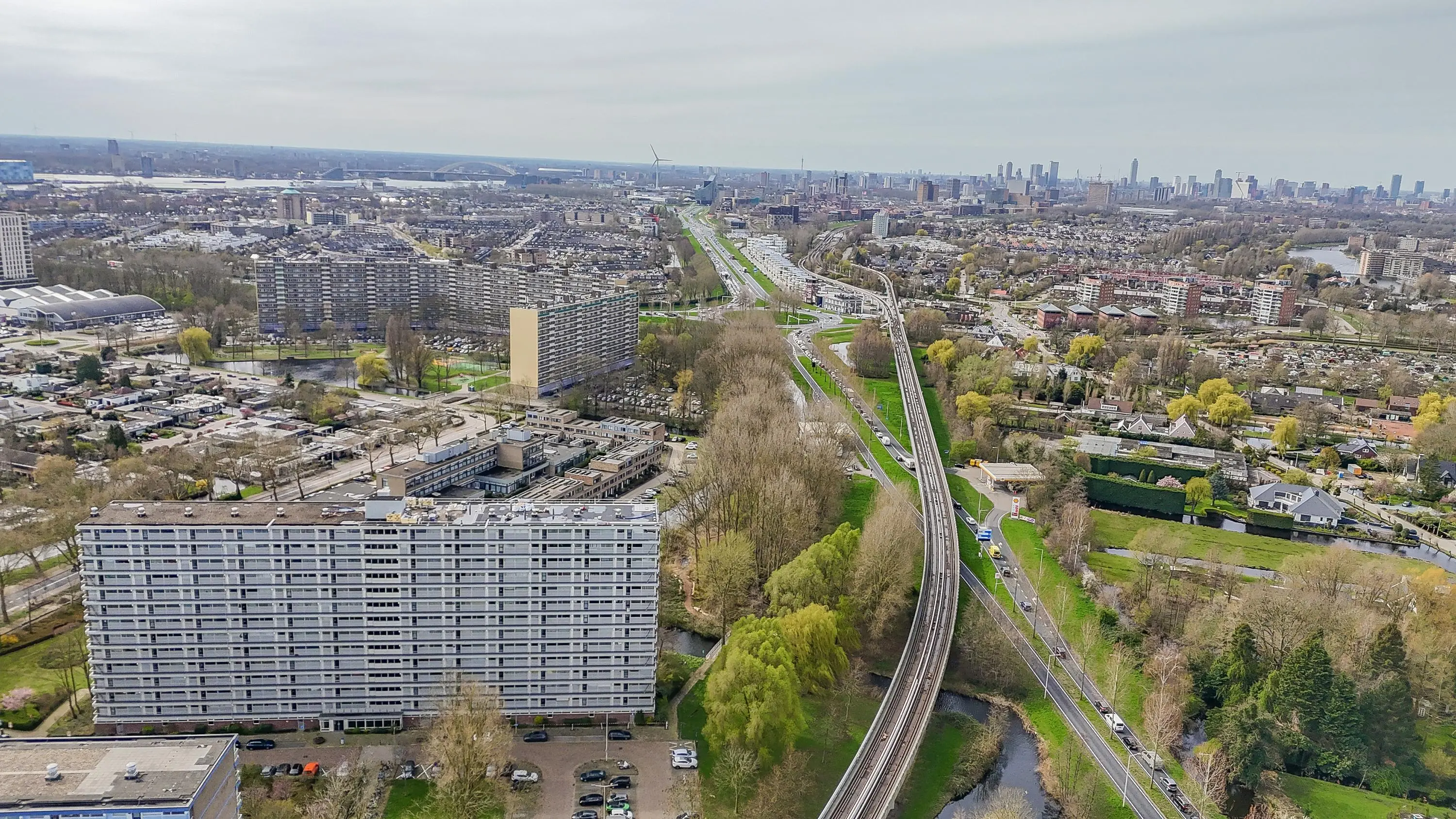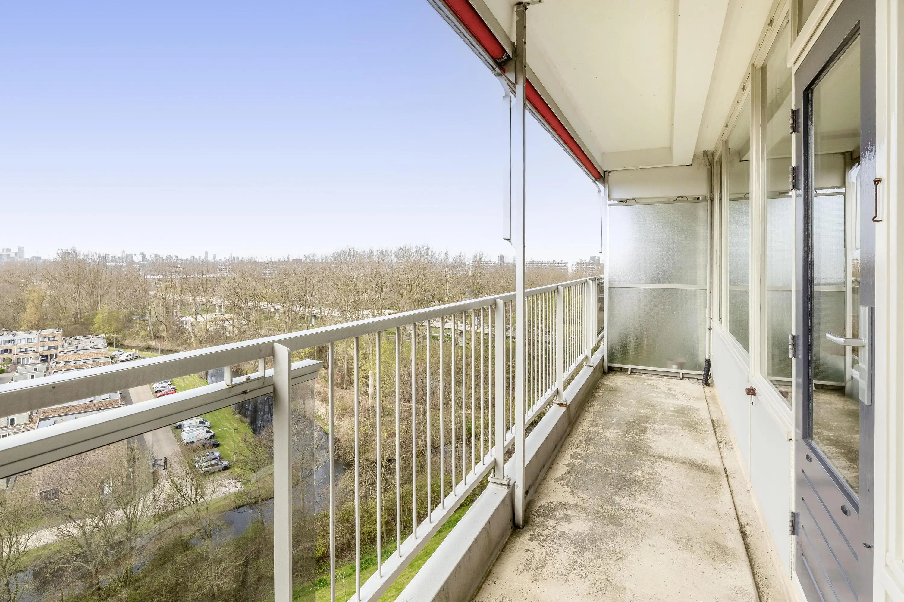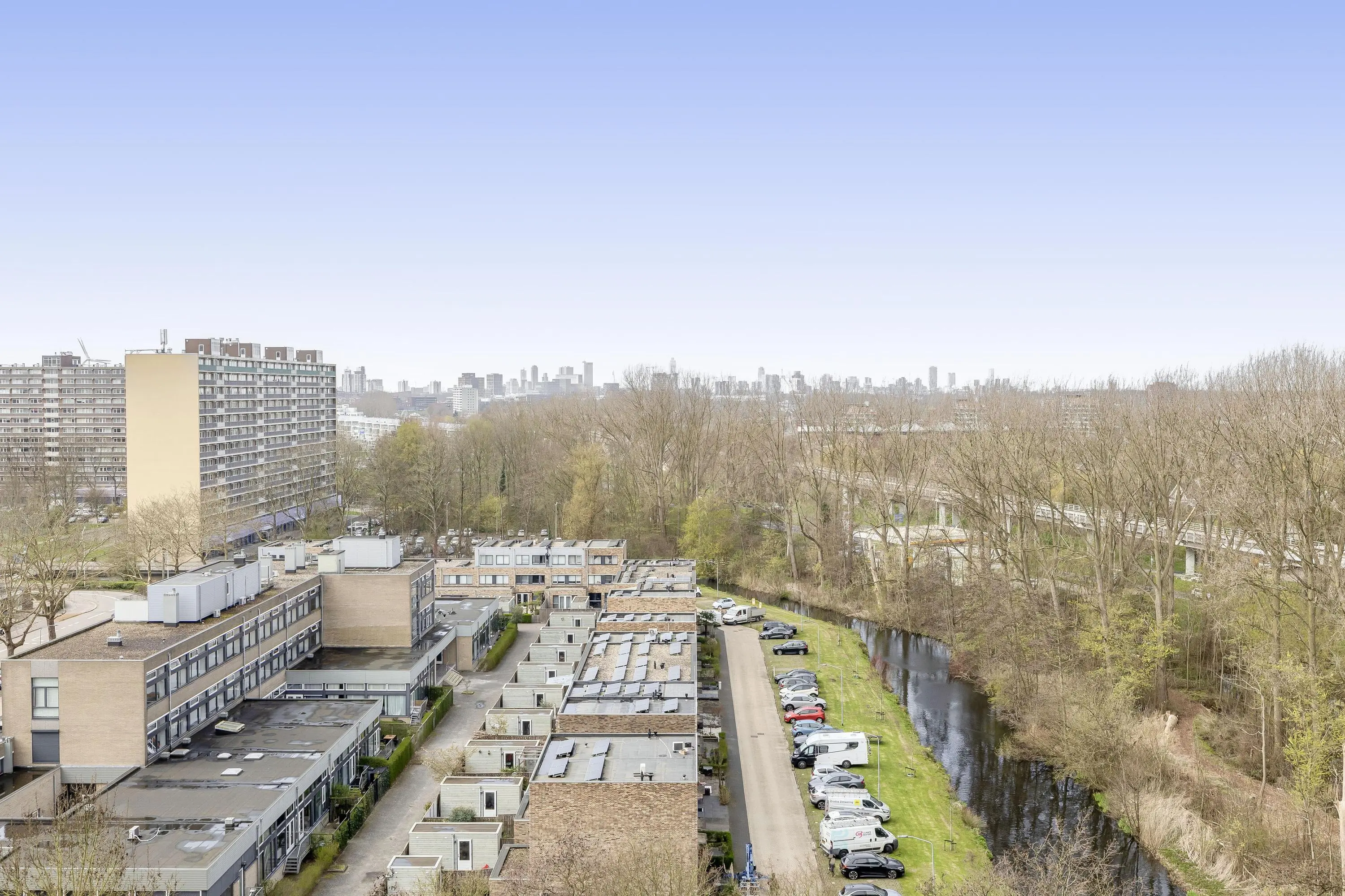 De entree in het appartement is in de hal met daarbij direct de open doorgang naar de keuken. In de hal is verder ook de meterkast aanwezig. De keuken heeft een keurige L-opstelling en is voorzien van veel kastruimte. Aan apparatuur is hier een inductie kookplaat, afzuigkap, oven, spoelbak, koel-/vriescombinatie en een vaatwasser aanwezig. Via de keuken is een open doorgang naar de living Vanuit deze ruimte zijn de verdere kamers in de woning te bereiken. De riante woonkamer geeft een fantastisch uitzicht over groen en richting de stad Rotterdam en is enorm licht door de grote raampartijen. Een leuke bar geeft een speels gevoel aan de ruimte. Aan de voorzijde is de grote slaapkamer gelegen, tussen deze kamer en de woonkamer is een mooie opbergkast. Naast de grote kamer is een fijne tweede slaapkamer te vinden. Deze kamer is ook voorzien van de wasmachine aansluiting. De badkamer en toiletruimte zijn tussen de keuken en de woonruimte in gelegen. De badkamer is ruim van opzet en voorzien van een ruime inloopdouche en een grote wastafel inclusief een dubbele kraan. Naast de badkamer is nog een losse toiletruimte. Het balkon aan de achterzijde is gericht op het zonnige zuiden en geeft een mooi uitzicht over Rotterdam en omstreken.