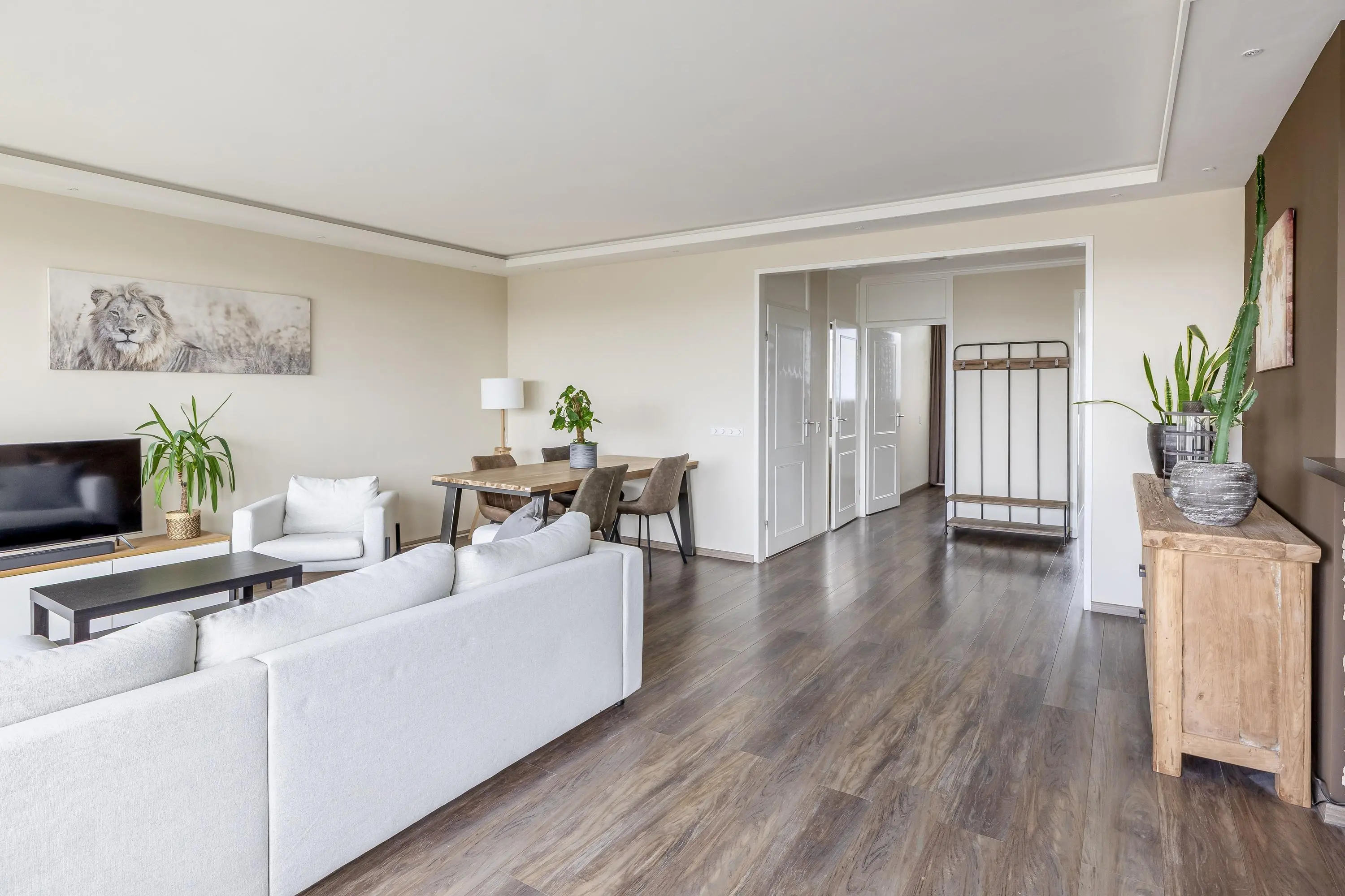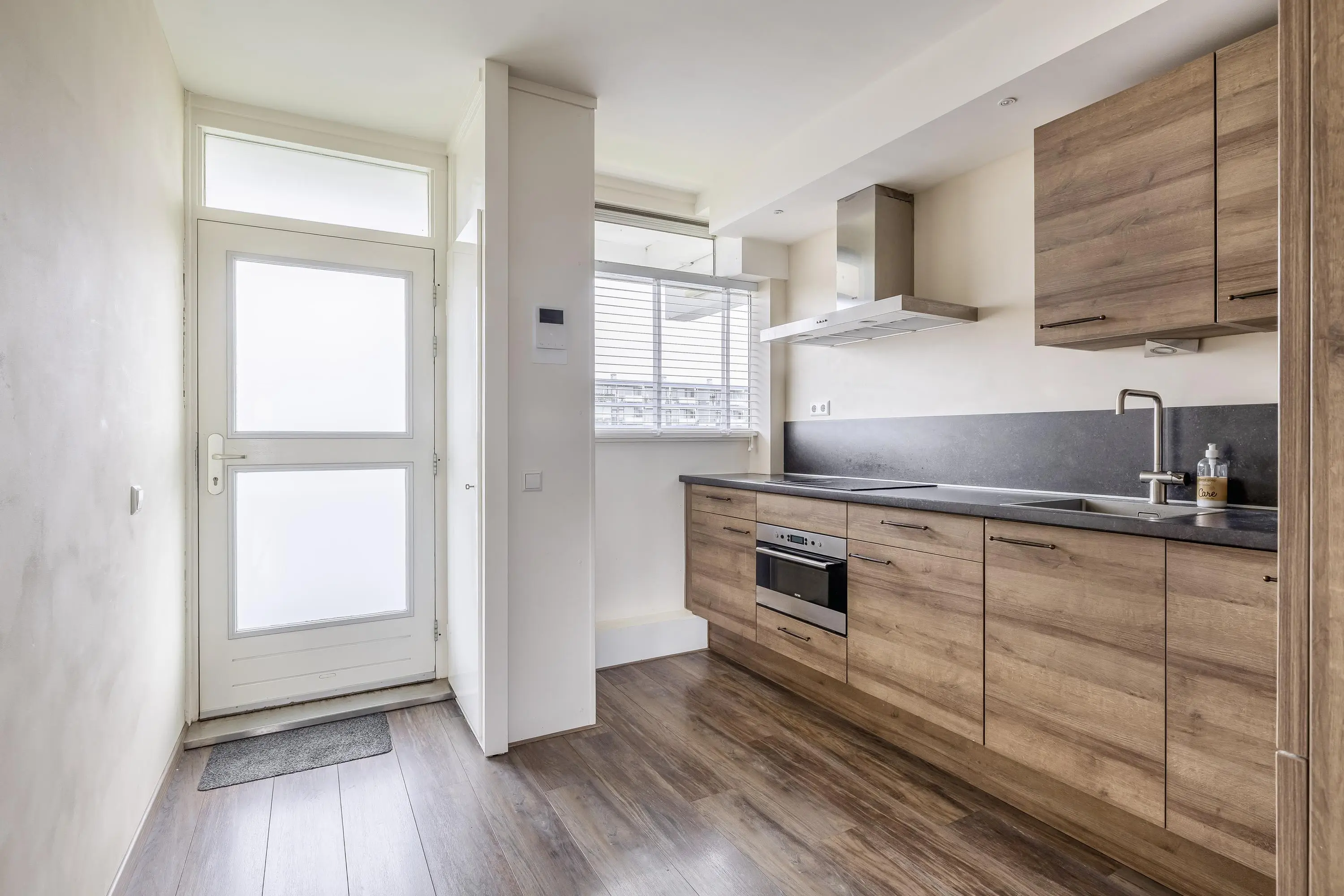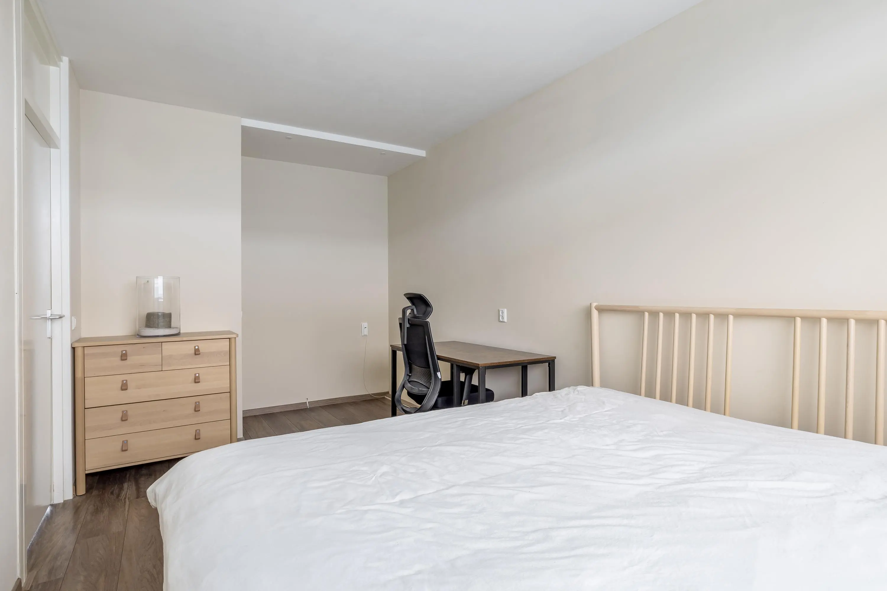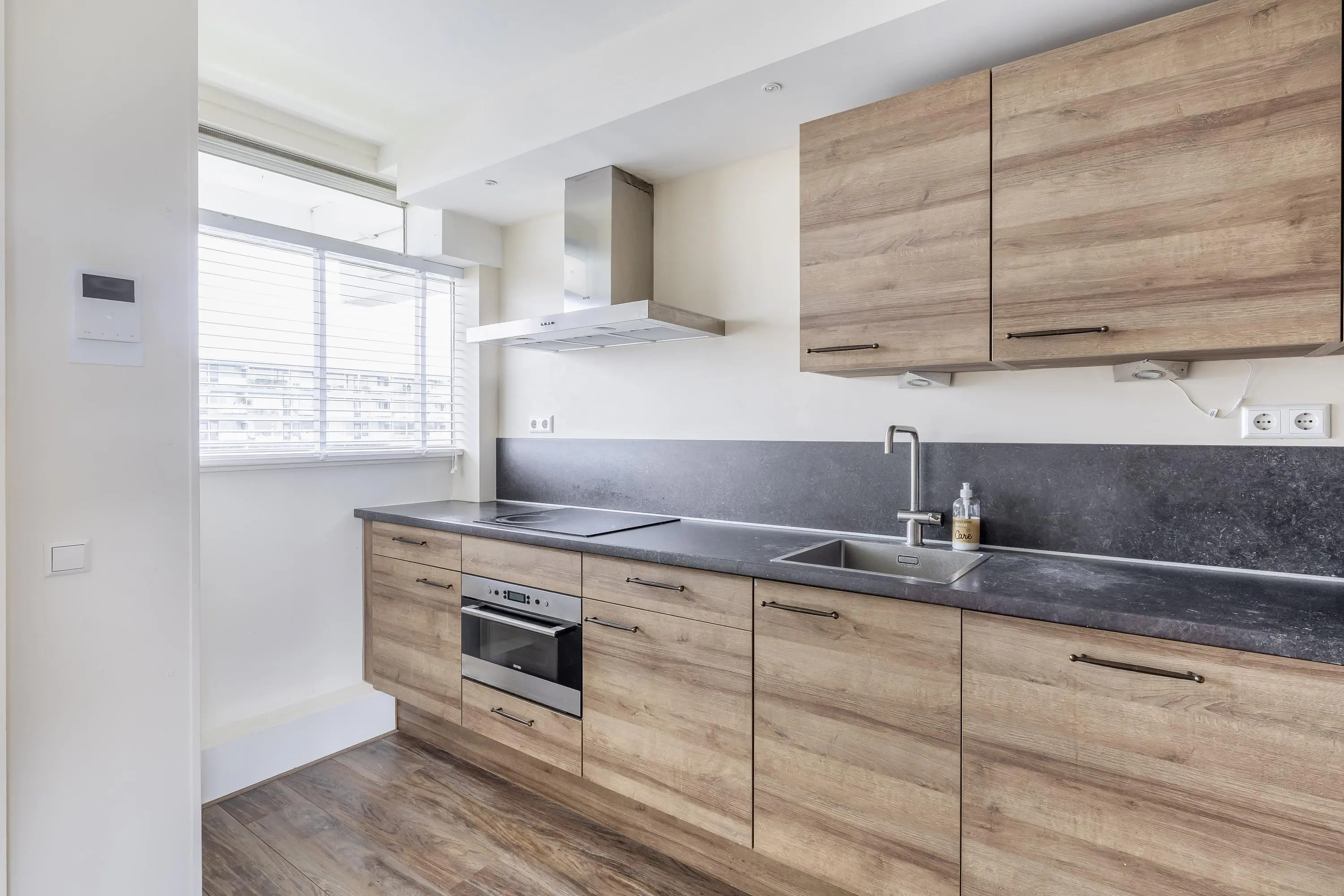De entree in het appartement is in de hal met daarbij direct de open doorgang naar de keuken. In de hal is verder ook de meterkast aanwezig. De keuken heeft een keurige L-opstelling en is voorzien van veel kastruimte. Aan apparatuur is hier een inductie kookplaat, afzuigkap, oven, spoelbak, koel-/vriescombinatie en een vaatwasser aanwezig. Via de keuken is een open doorgang naar de living Vanuit deze ruimte zijn de verdere kamers in de woning te bereiken. De riante woonkamer geeft een fantastisch uitzicht over groen en richting de stad Rotterdam en is enorm licht door de grote raampartijen. Een leuke bar geeft een speels gevoel aan de ruimte. Aan de voorzijde is de grote slaapkamer gelegen, tussen deze kamer en de woonkamer is een mooie opbergkast. Naast de grote kamer is een fijne tweede slaapkamer te vinden. Deze kamer is ook voorzien van de wasmachine aansluiting. De badkamer en toiletruimte zijn tussen de keuken en de woonruimte in gelegen. De badkamer is ruim van opzet en voorzien van een ruime inloopdouche en een grote wastafel inclusief een dubbele kraan. Naast de badkamer is nog een losse toiletruimte. Het balkon aan de achterzijde is gericht op het zonnige zuiden en geeft een mooi uitzicht over Rotterdam en omstreken.