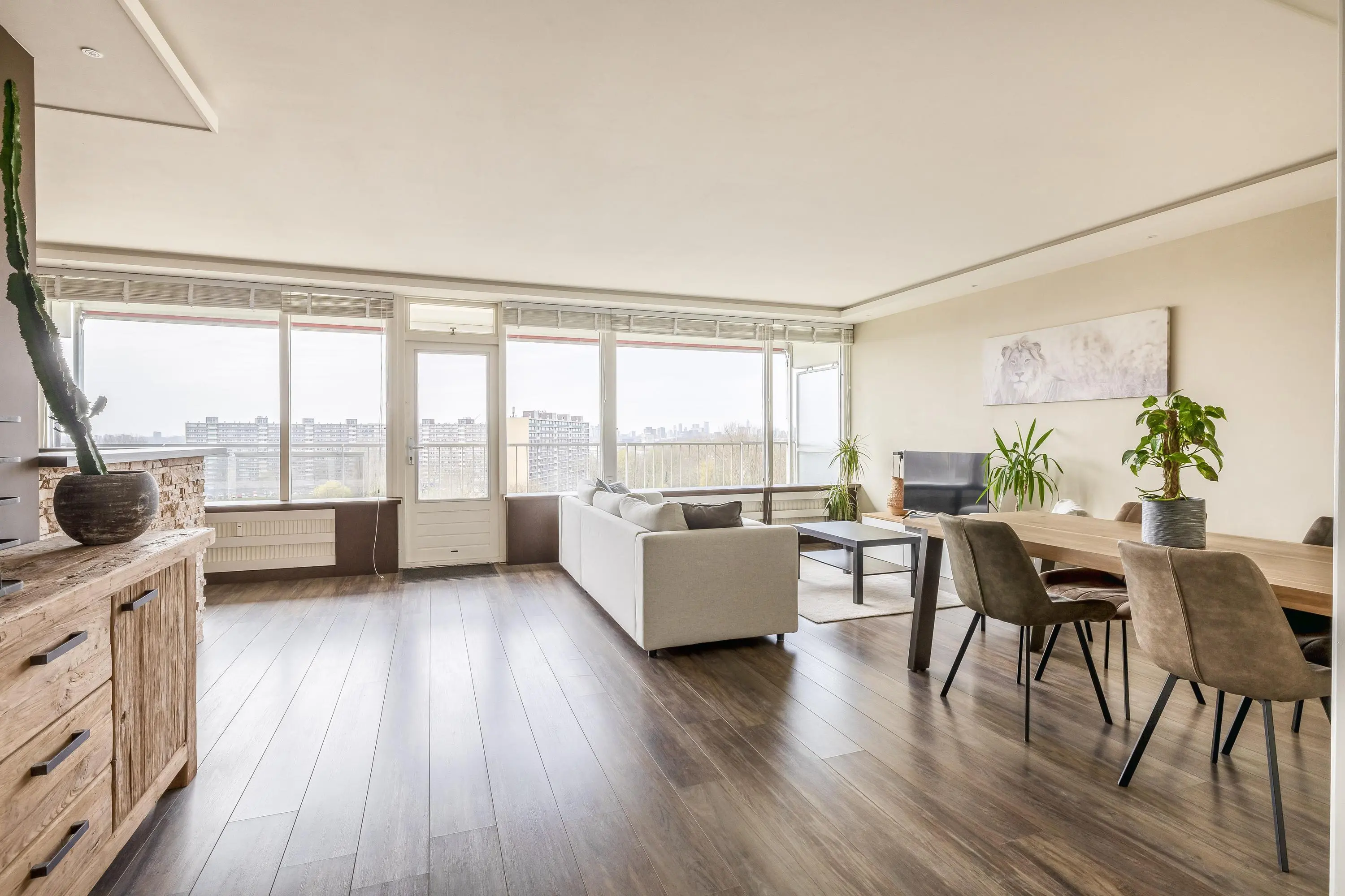 Skyhigh with a view! In dit ruime appartement in Capelle aan den IJssel geniet je dagelijks van een prachtig en weids uitzicht richting de skyline van Rotterdam. Het is gelegen in een goed onderhouden complex met twee liften en omdat het appartement is gelegen op de 11e verdieping is rust en ruimte gegarandeerd!