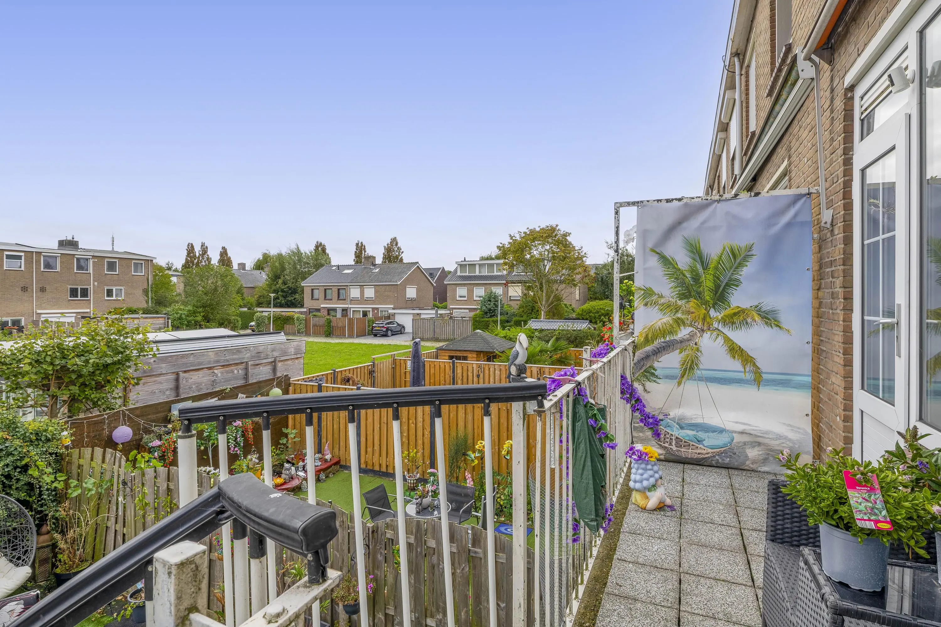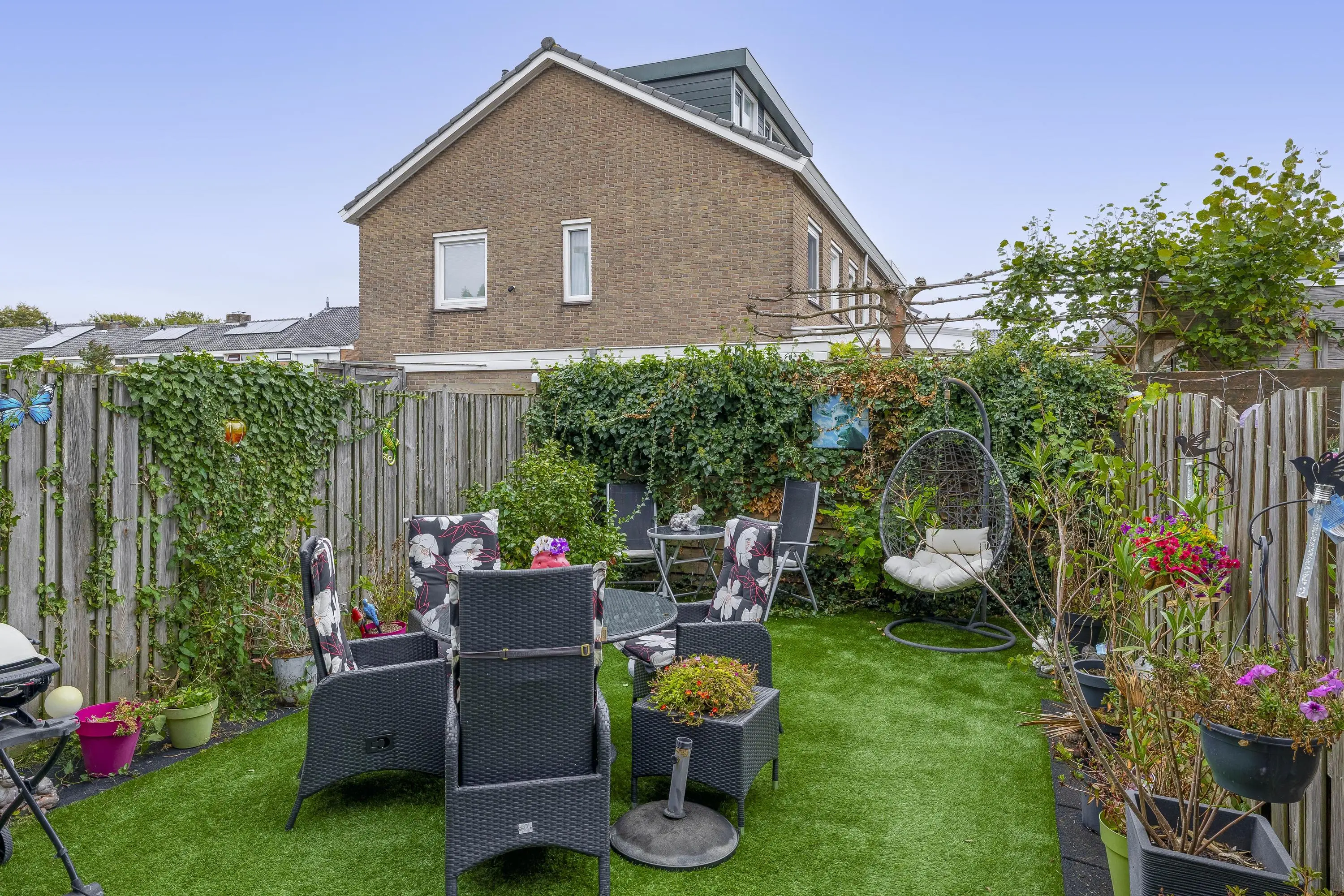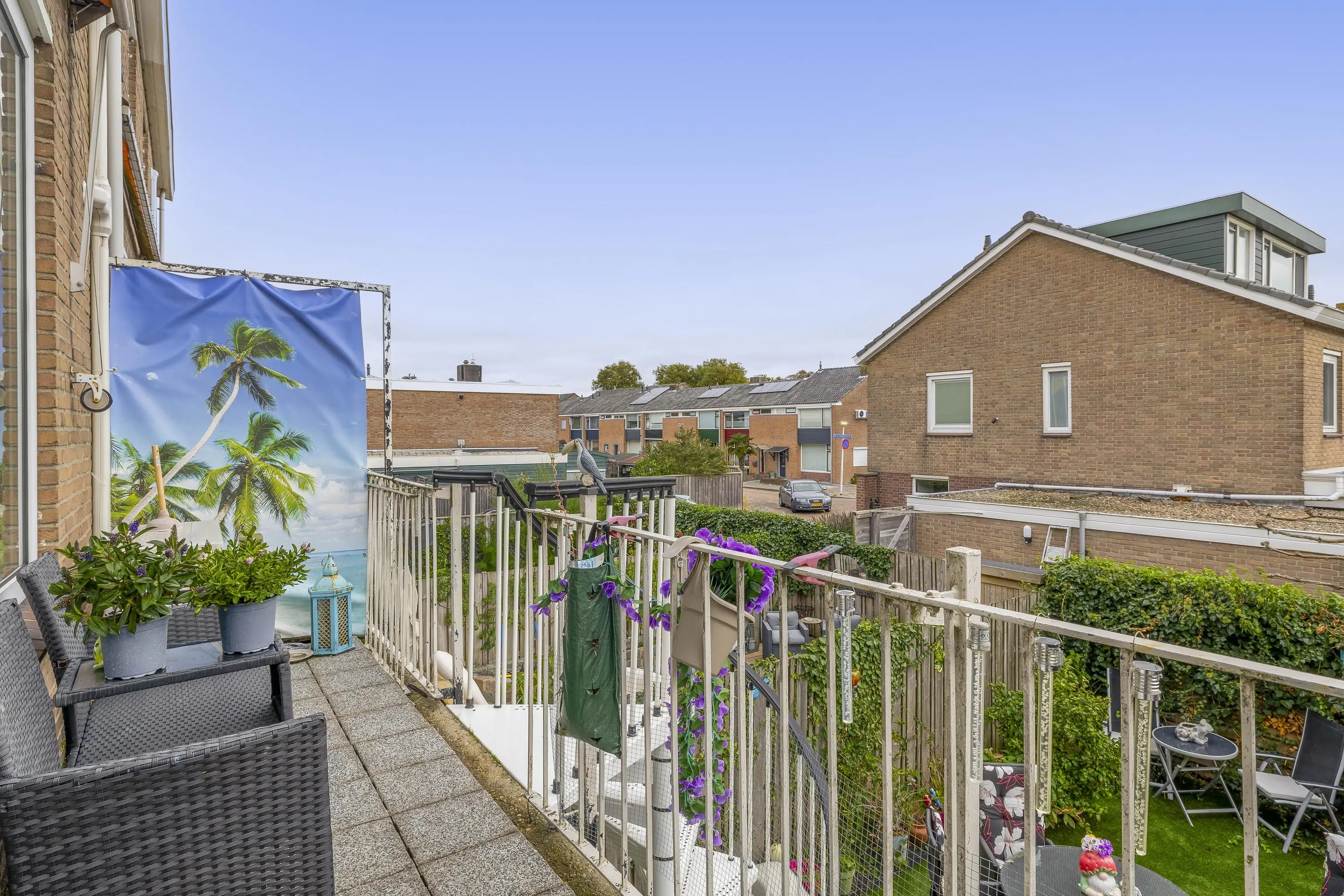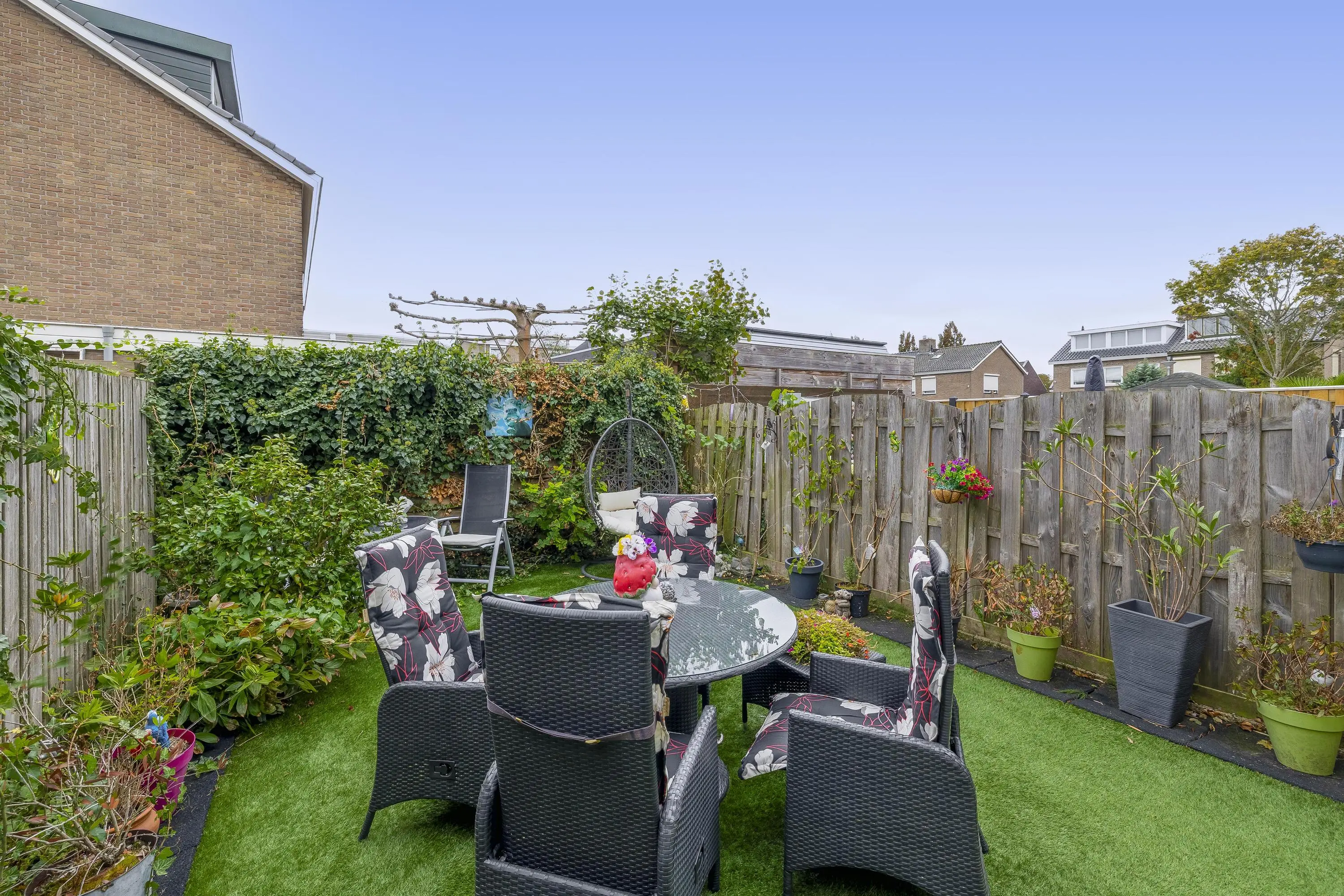 De voortuin biedt de mogelijkheid om te parkeren op de eigen oprit en geeft toegang tot de inpandige garage. De achtertuin ligt op het zonnige zuidoosten. Hierdoor kunt u hier optimaal genieten. Vanwege de vaste trap naar het balkon bent u ook zo weer in de living.