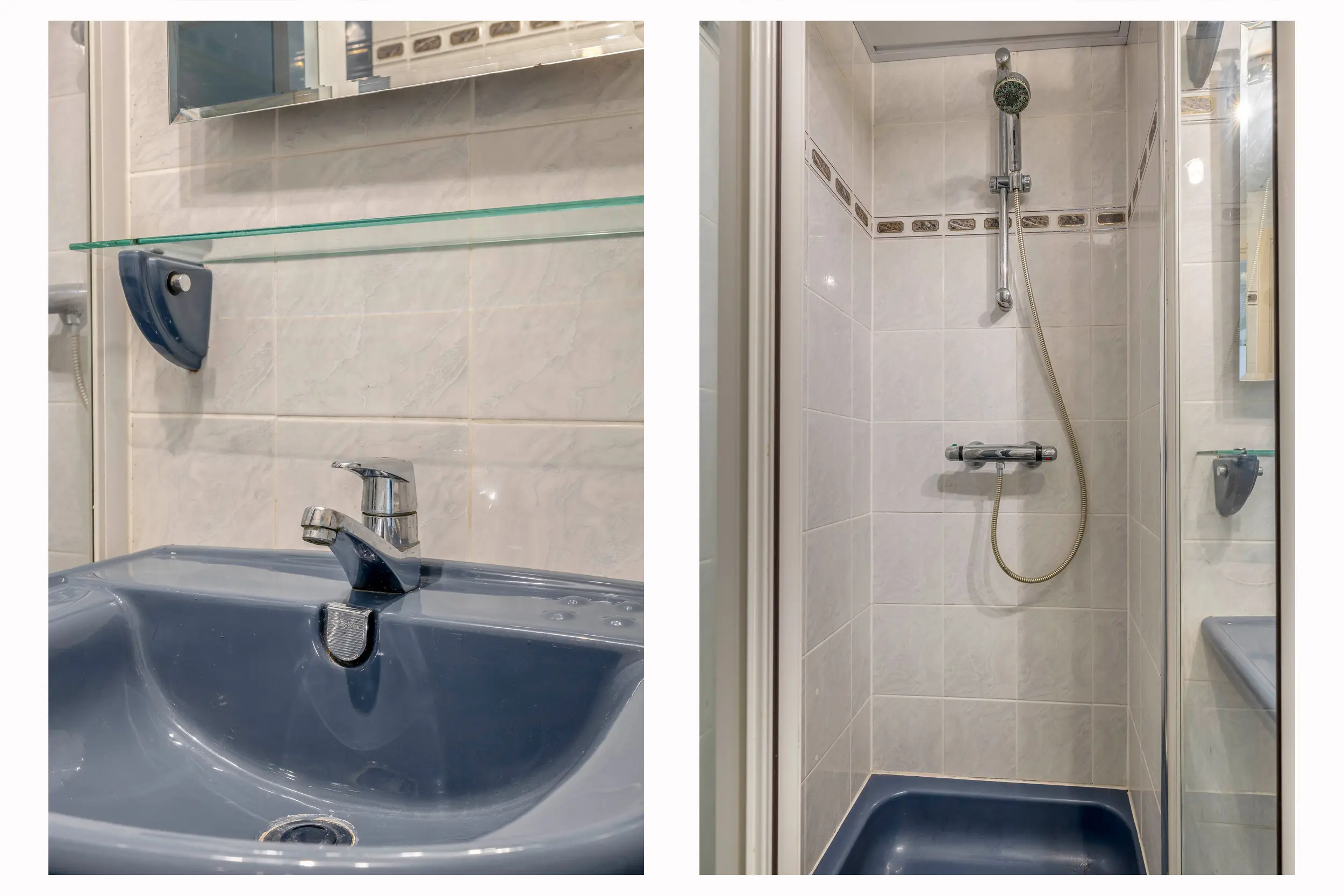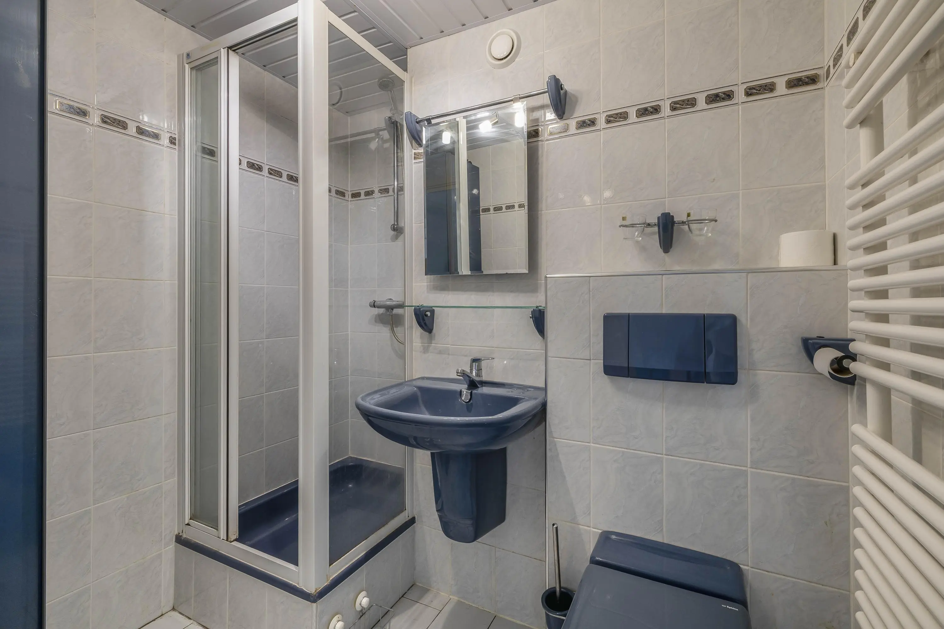 De badkamer bestaat uit over een inloopdouche, wastafel en een toilet.