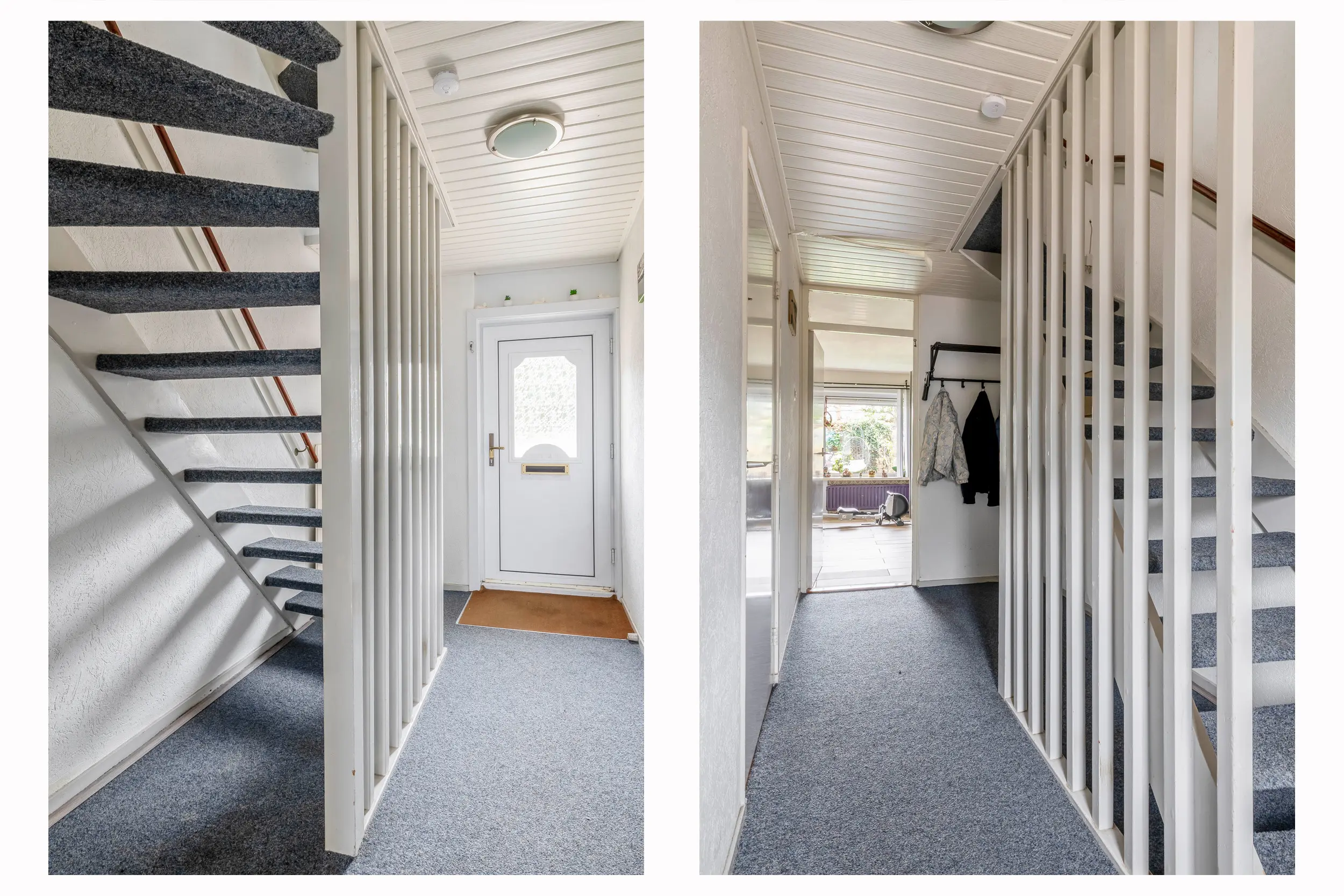 De overloop is voorzien van tapijt en bied toegang tot de 3 slaapkamers, de badkamer en een opbergkast.