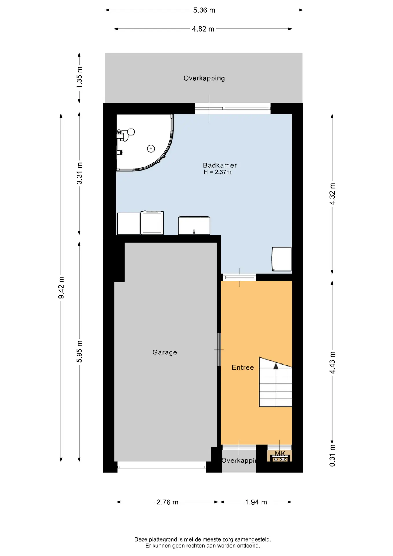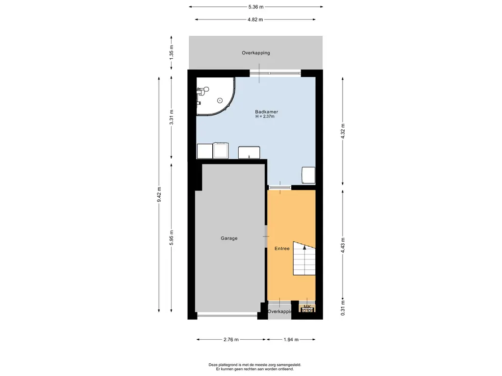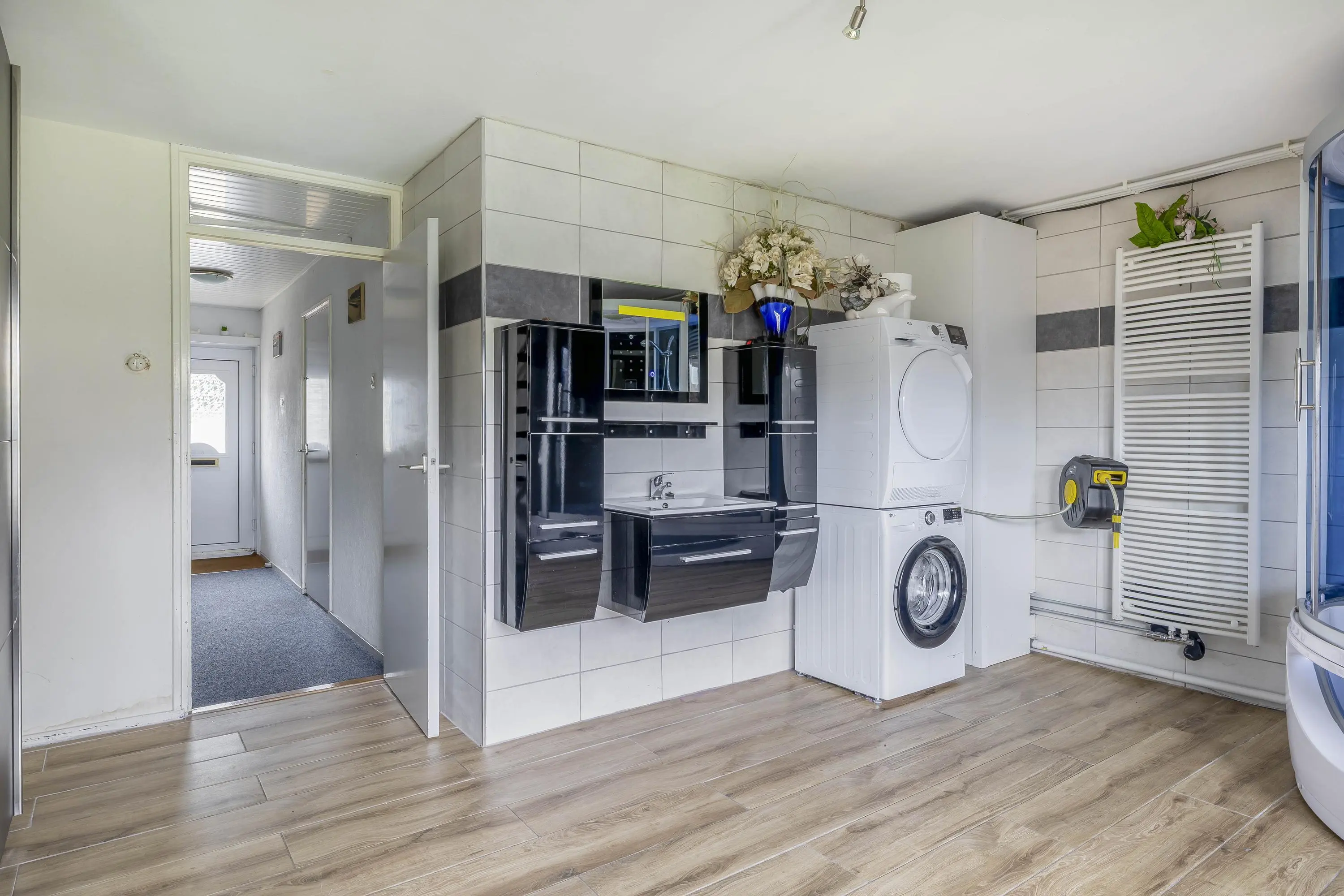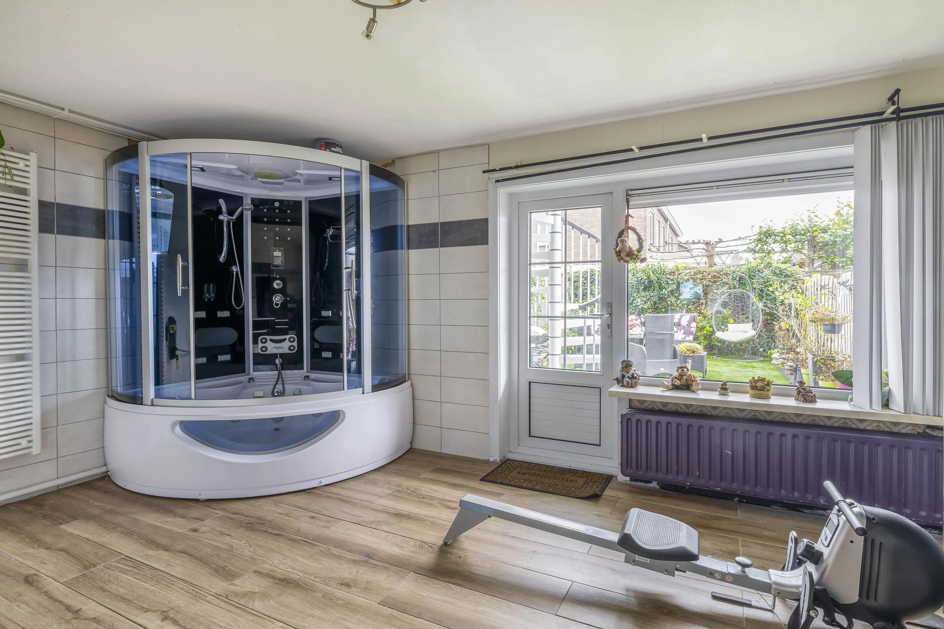 Entree/hal met de meterkast, trapopgang en toegang tot de garage en de tuinkamer. De inpandige garage is voorzien van een elektrische deur. De ruimte kan ook goed dienst doen als hobby- of praktijkruimte. Achterin de woning bevindt zich een kamer met veel daglicht en tal van gebruiksmogelijkheden; een ideale ruimte die je naar eigen wens kunt inrichten. Op dit moment is de tuinkamer voorzien van een stoom-douchecabine en een wastafel. Ook is hier de aansluiting voor de wasmachine/droger. Via een loopdeur is er toegang tot de zonnige achtertuin.