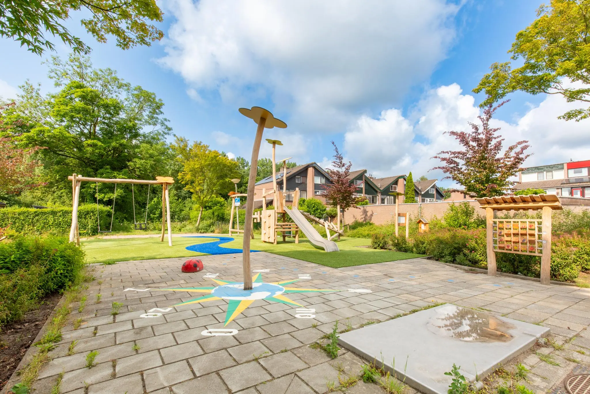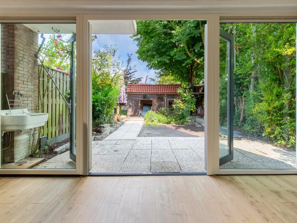 De voortuin ligt op het zuidoosten en hier vindt u een vrijstaande berging. Via de zijtuin is er toegang tot de ruime achtertuin. De tuin ligt op het noordwesten. Vanwege de diepte van de tuin kunt u hier zowel van zon als schaduw genieten.