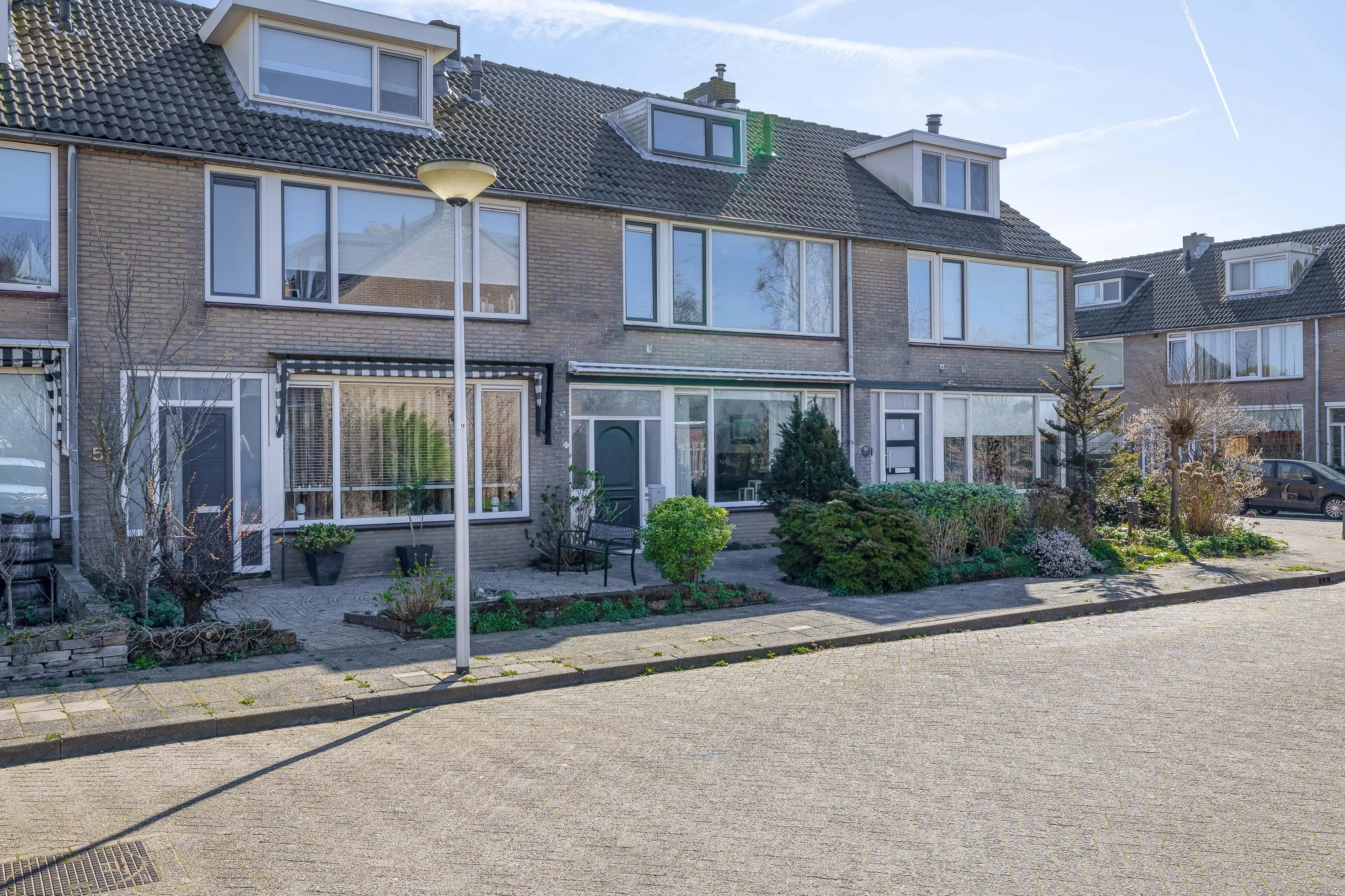 Buiten geniet u van zowel een verzorgde voor- als achtertuin. De voortuin is netjes aangelegd met sierbestrating en beplanting.