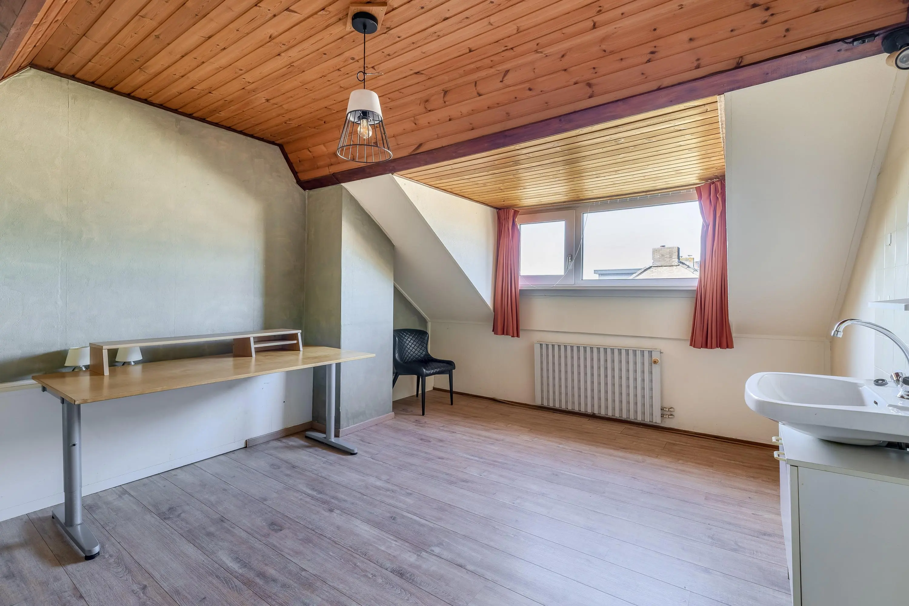 De vierde slaapkamer van ongeveer 14m² is vergroot met een dakkapel, eveneens uitgerust met een laminaatvloer en voorzien van een wastafel. De dakkapel zorgt voor prettig daglicht.