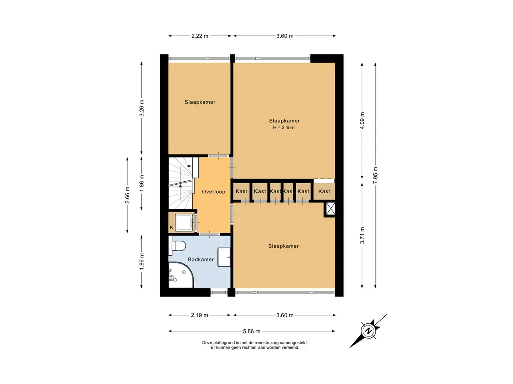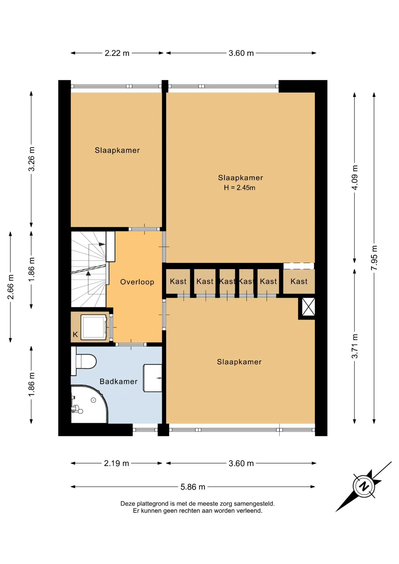 De overloop geeft toegang tot drie slaapkamers en de badkamer. Op de overloop is er ook een waskast aanwezig.