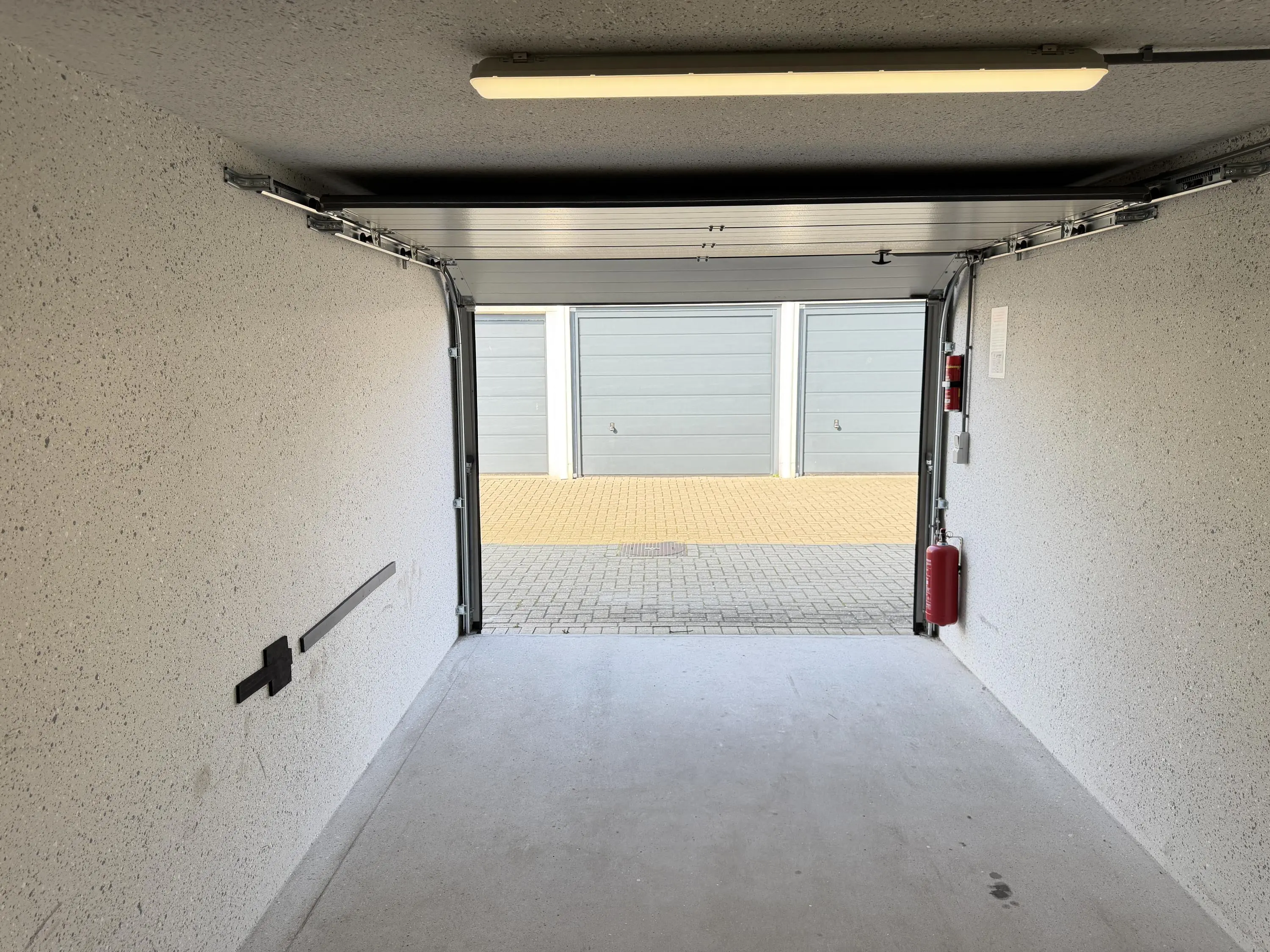 De garage/opslagboxen zijn voorzien van een aardlekautomaat, een dubbele wandcontactdoos, en een waterdicht led-armatuur op lichtschakelaar. De maximale vloerbelasting is 350 kg/m².