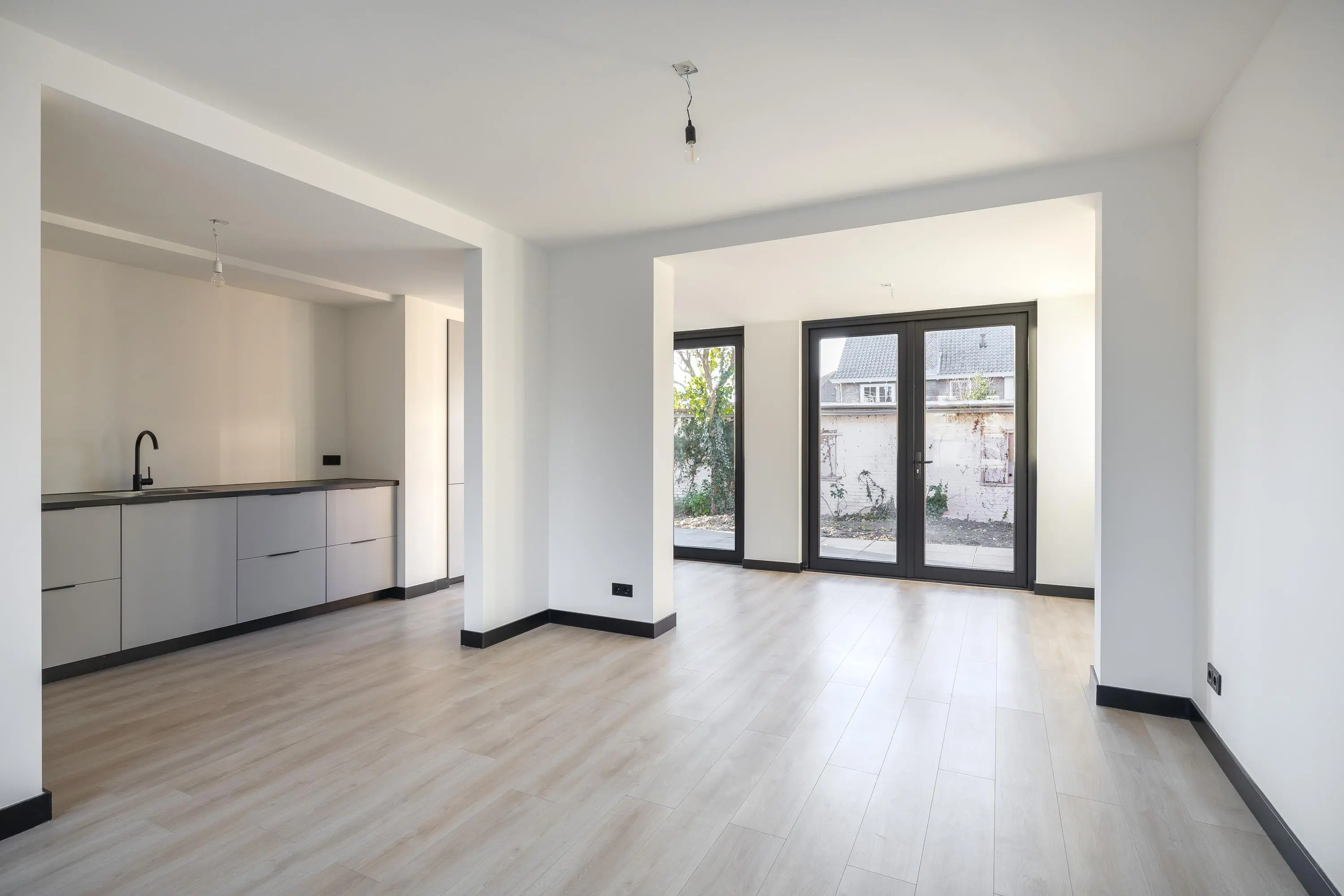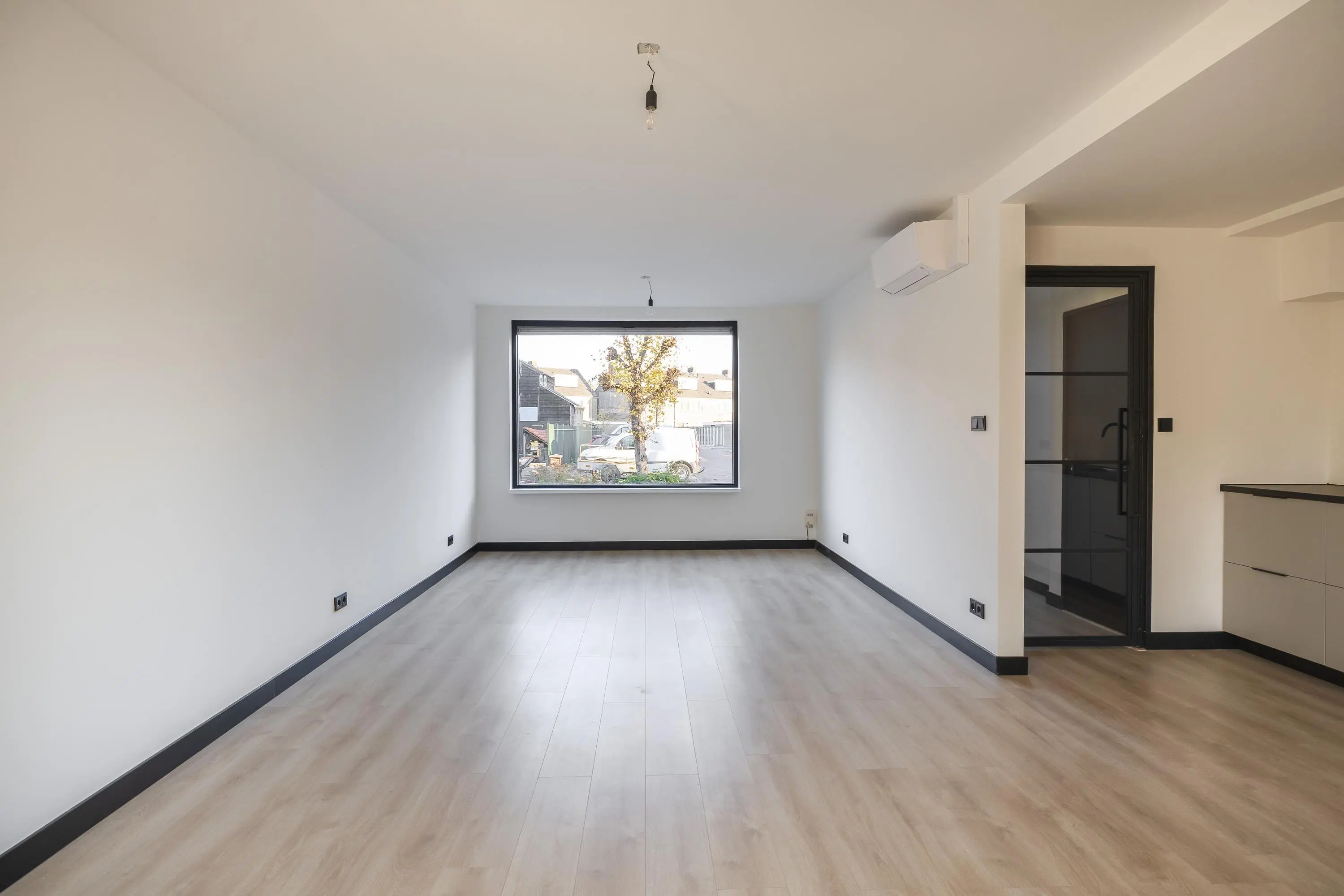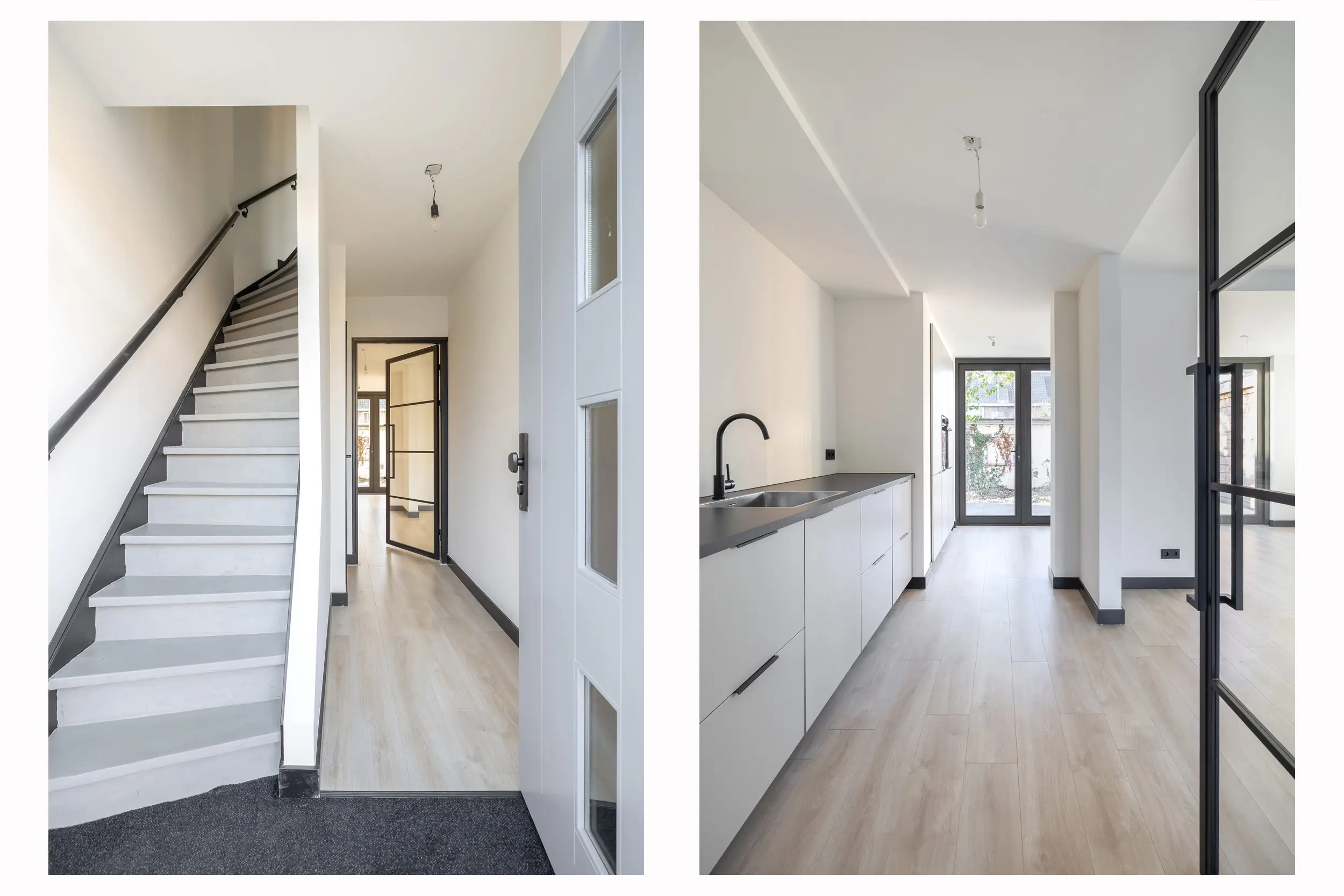 De moderne woonkeuken is in 2025 geplaatst en sluit perfect aan op de afwerking van de rest van de woning. De keuken is uitgerust met een spoelbak, Beko-oven, Ikea-vaatwasser en koelkast, en biedt daarnaast volop opbergruimte.