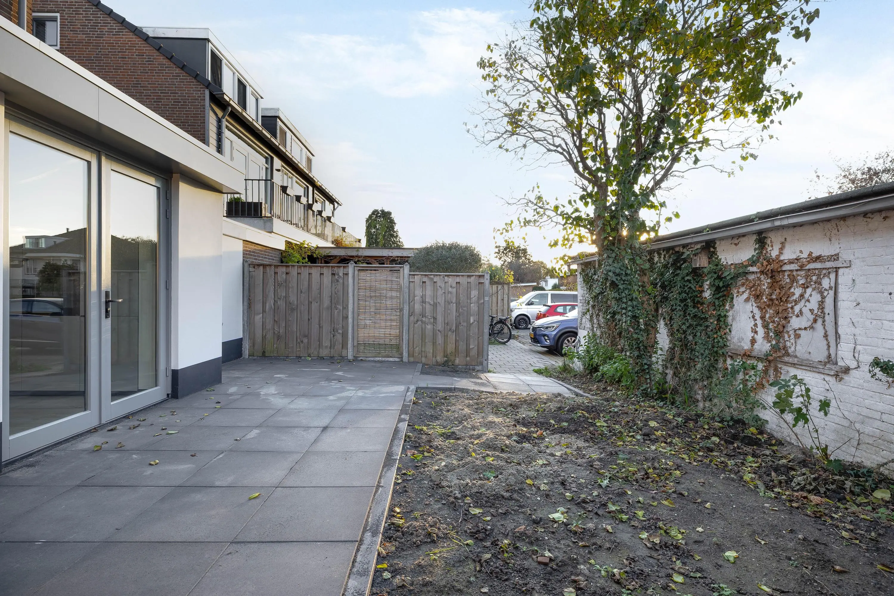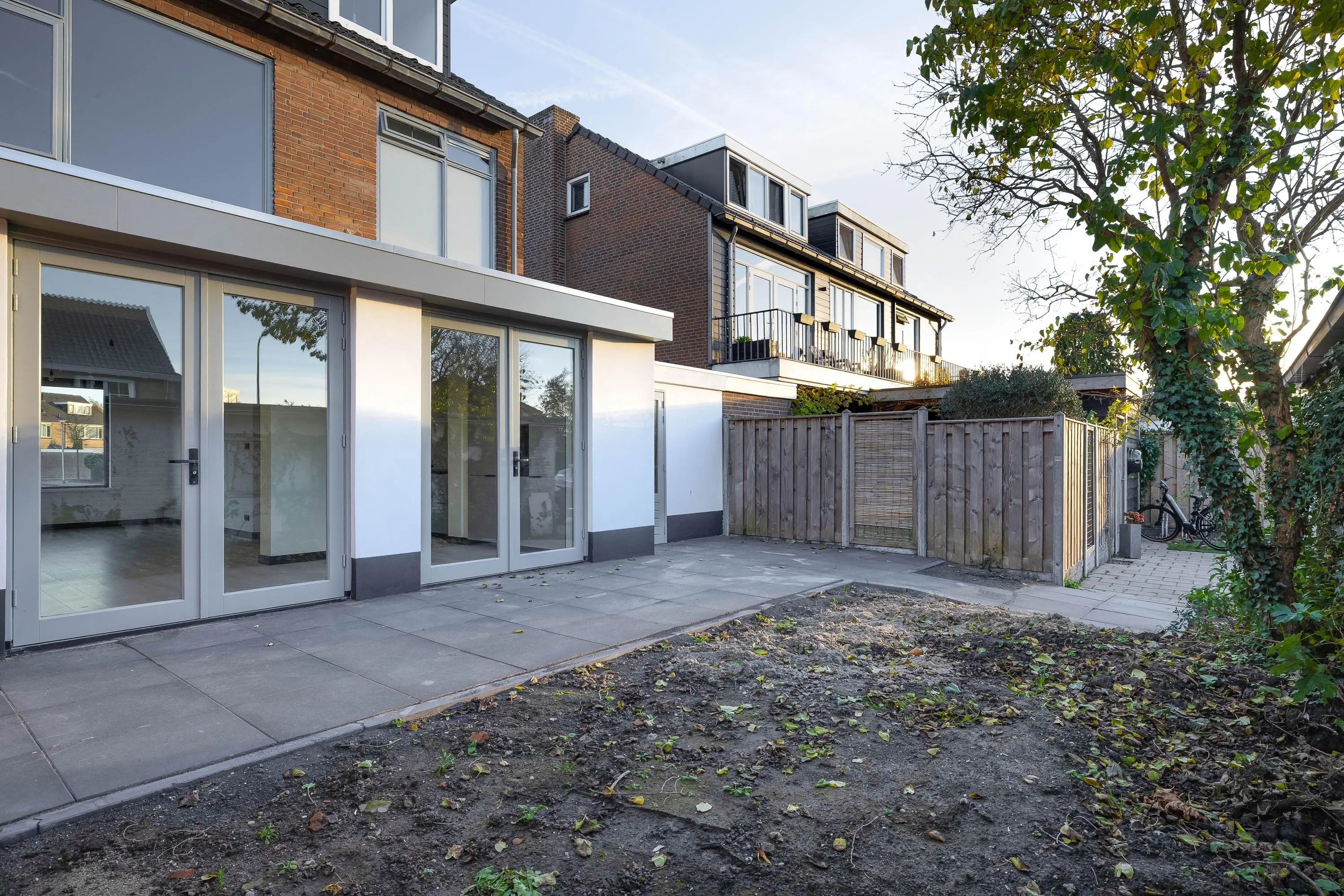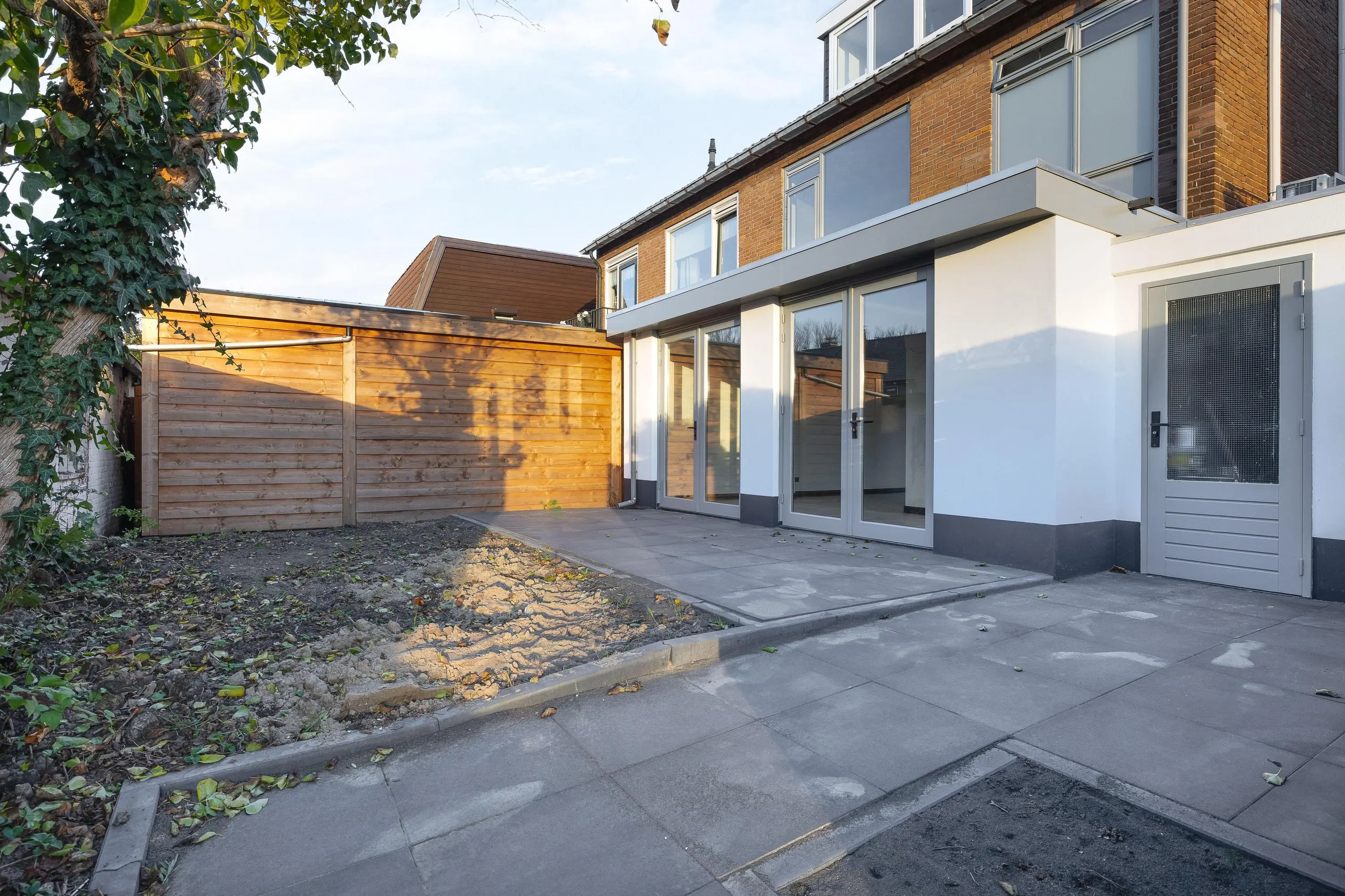 De achtertuin is deels bestraat en biedt voldoende ruimte om geheel naar eigen wens in te richten. Daarnaast is de tuin bereikbaar via een achterom.
