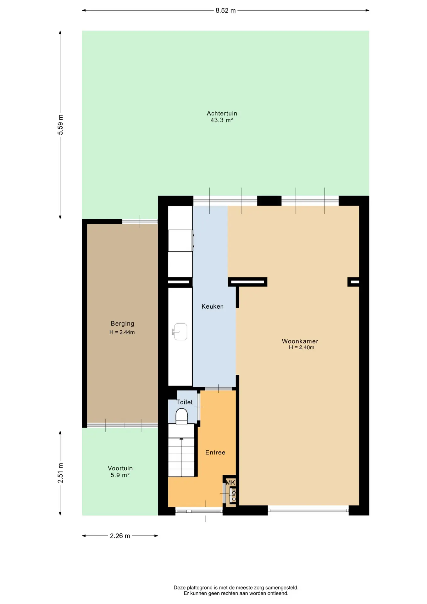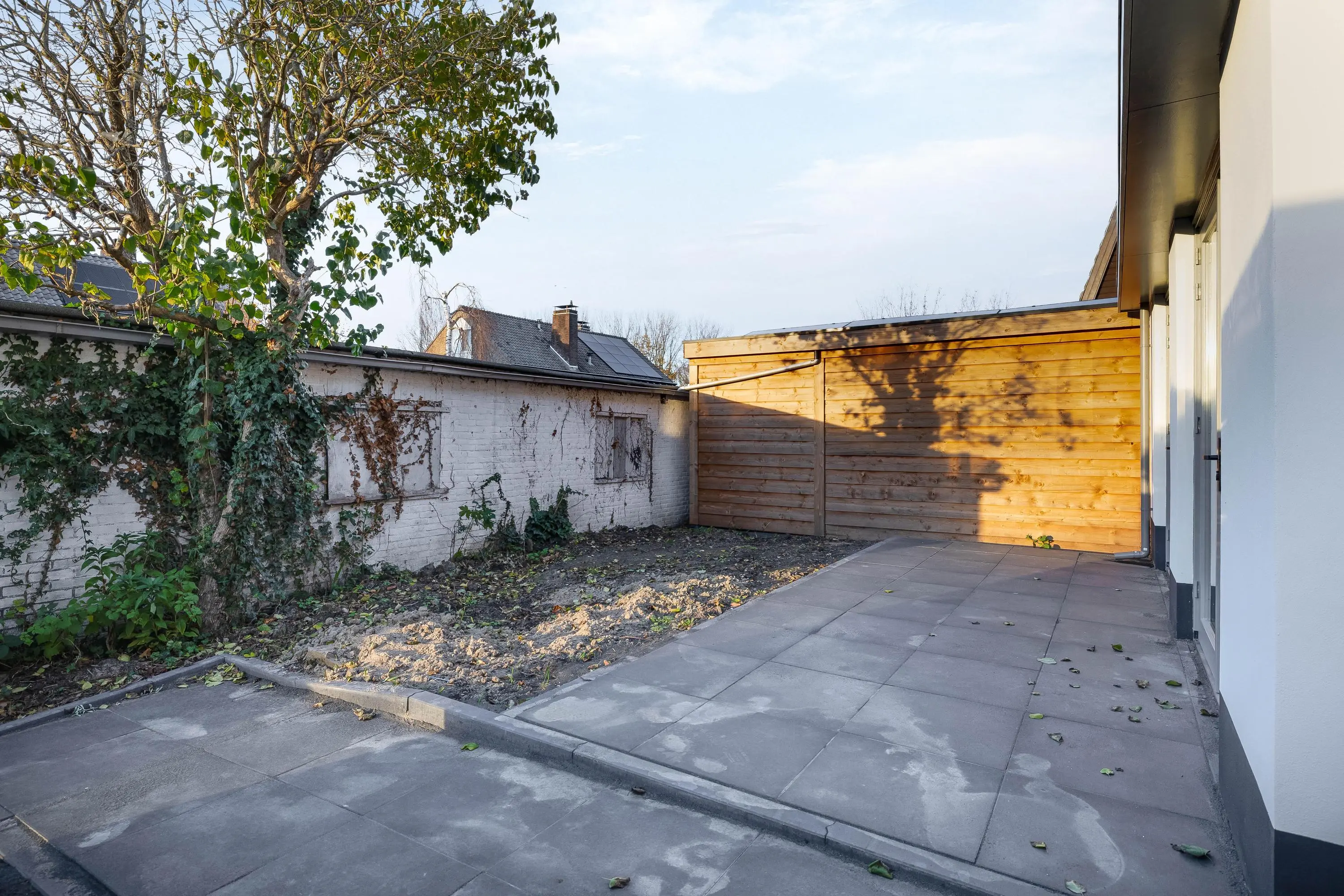 Vanaf de voortuin is er toegang tot de aangebouwde stenen berging, voorzien van elektra. Via de berging loopt u eenvoudig door naar de achtertuin.