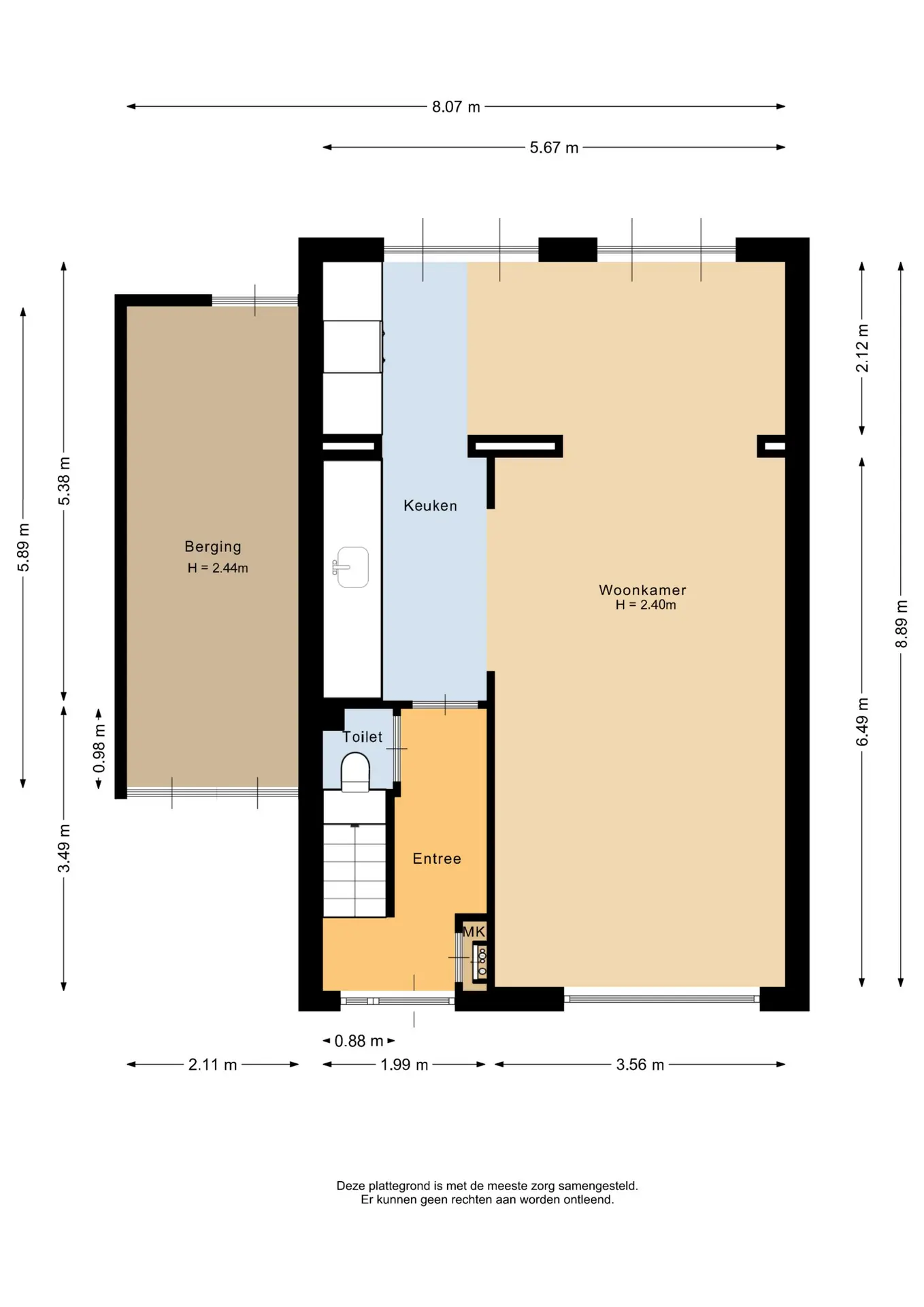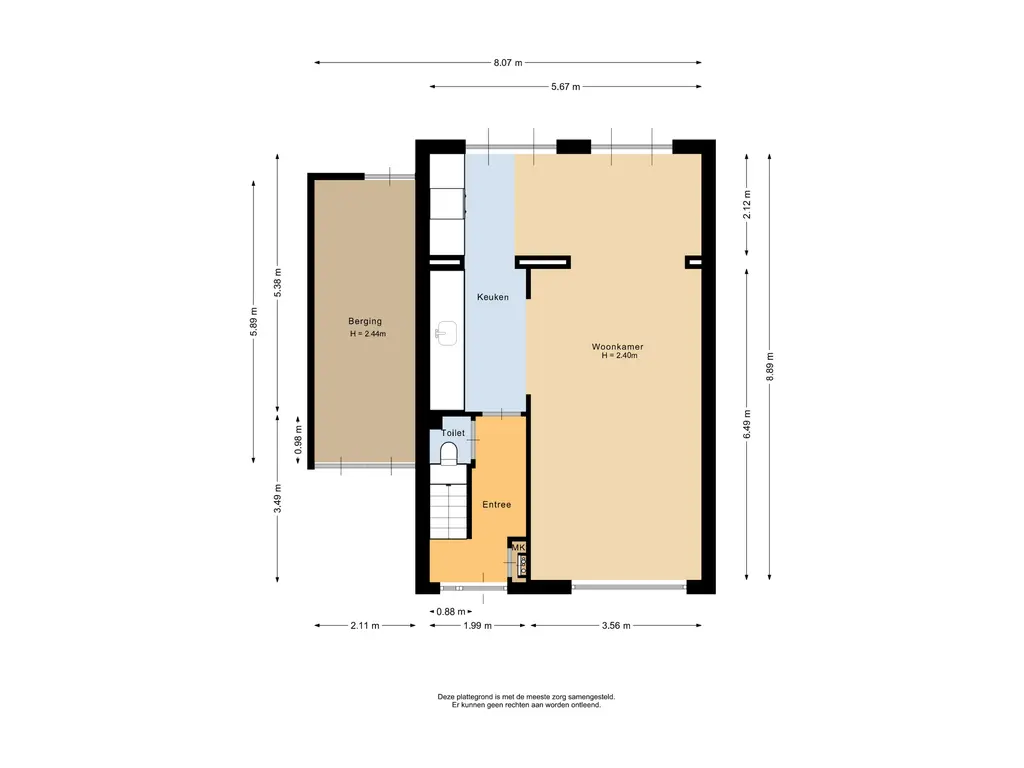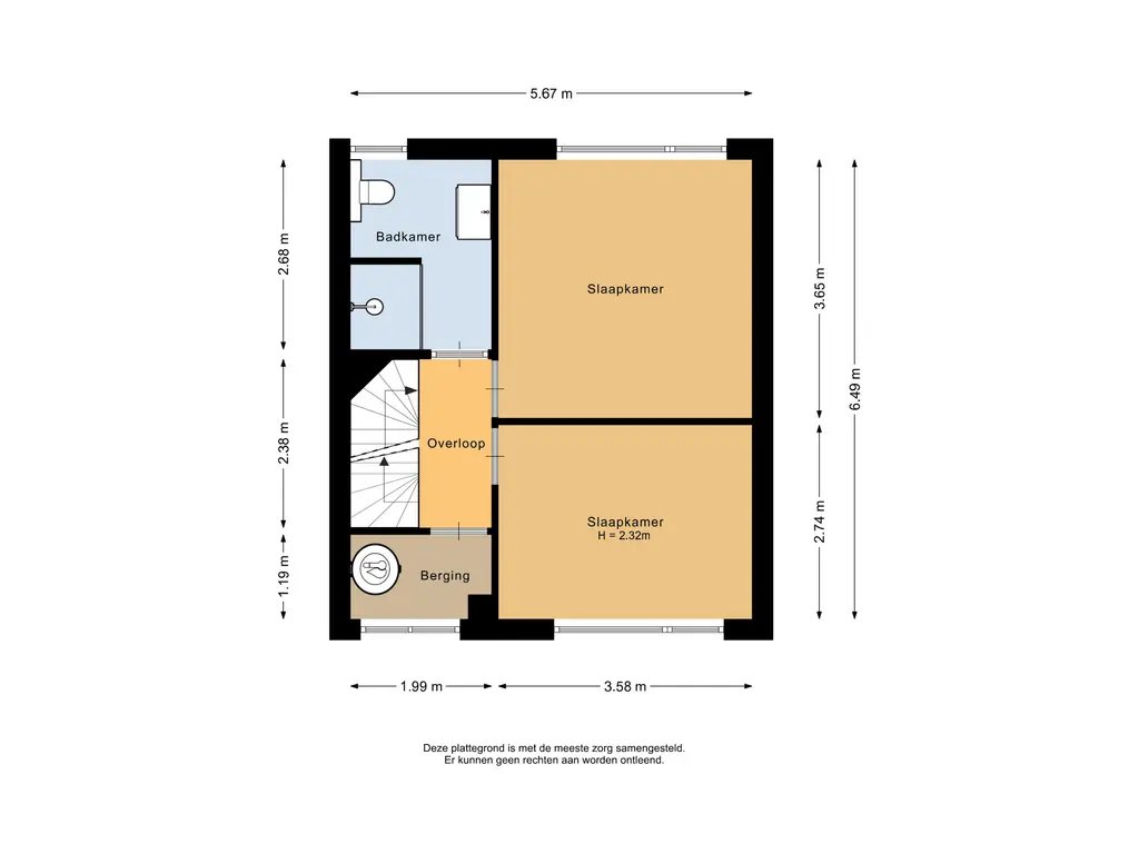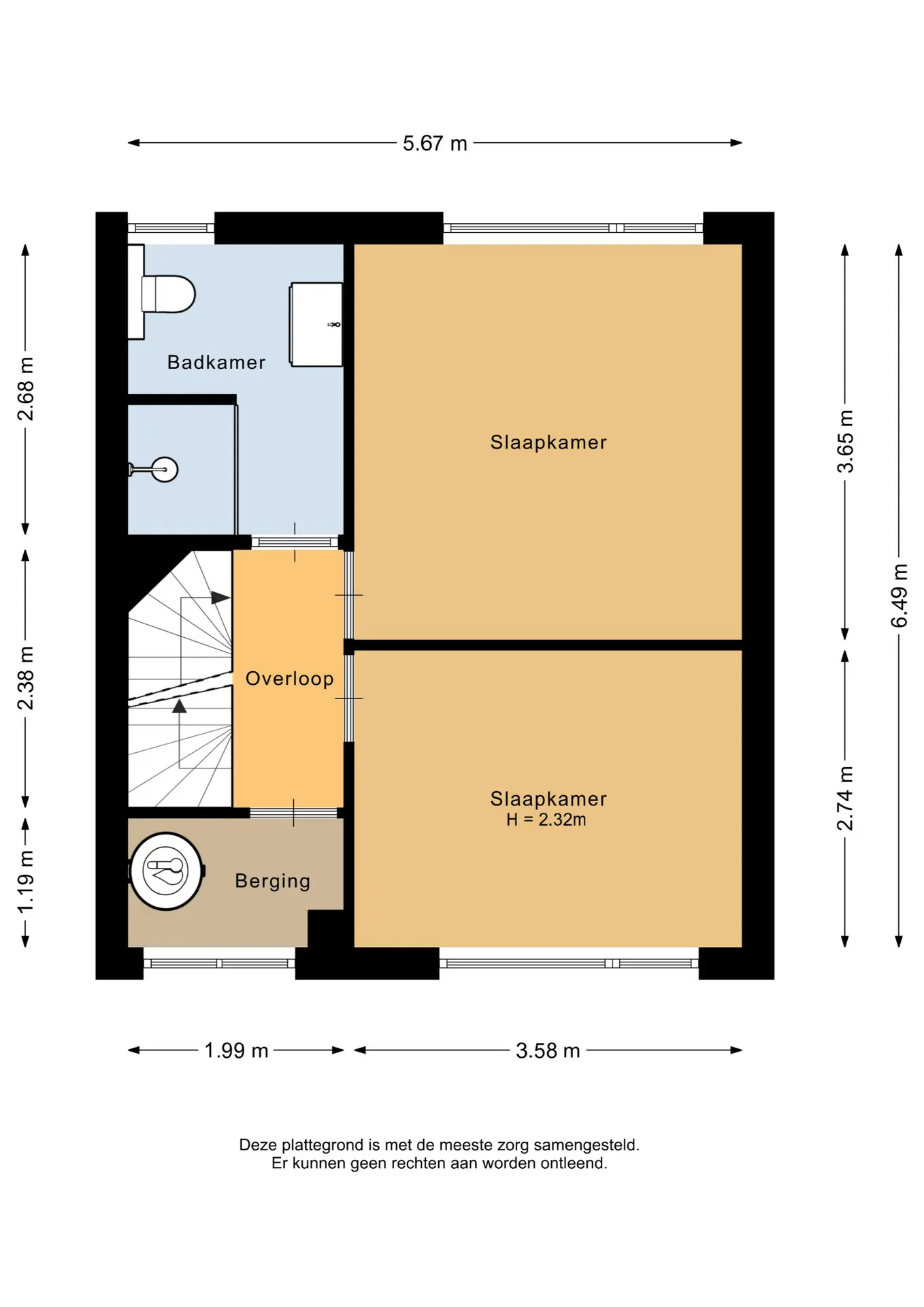 De berging heeft een oppervlakte van circa 2,5m² en biedt ruimte aan de warmtepompboiler.