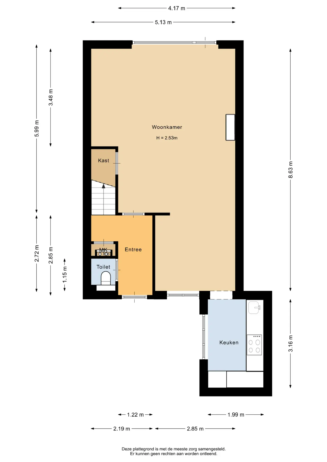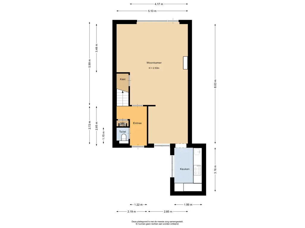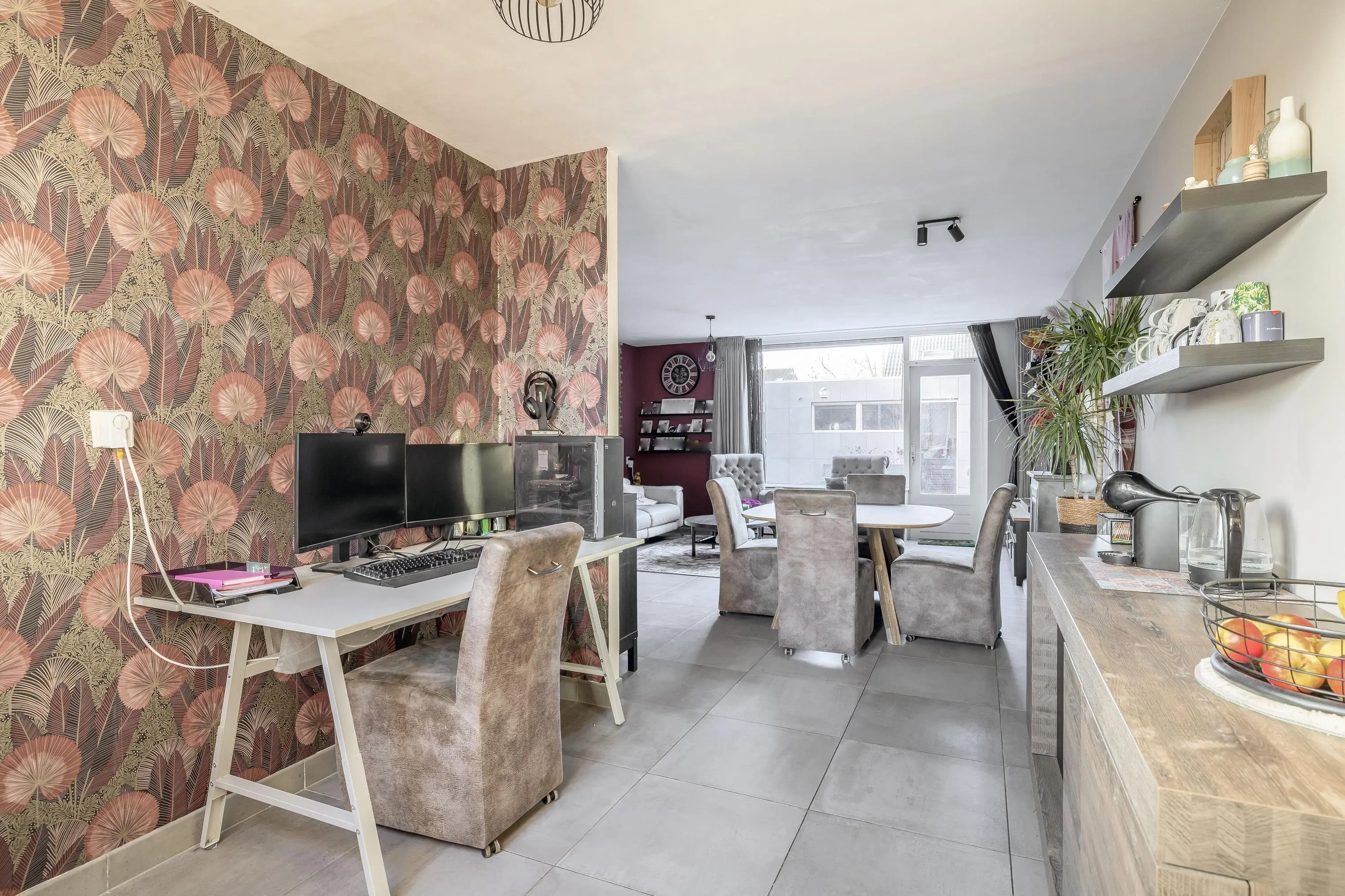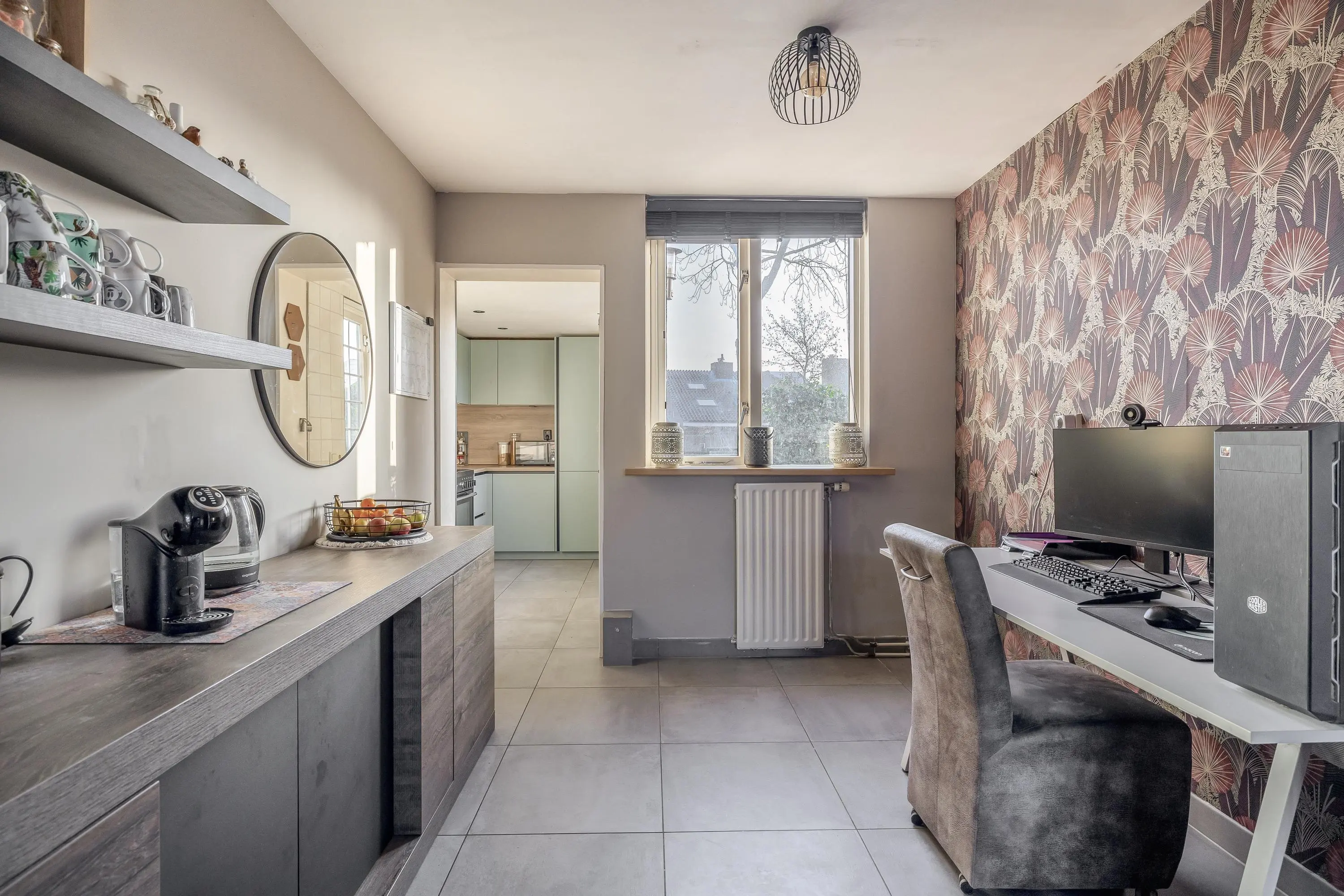 Aansluitend aan het woongedeelte bevindt zich een open ruimte die ideaal is voor een werkplek of bijvoorbeeld een speelhoek. Vanuit deze ruimte loopt u door naar de keuken.