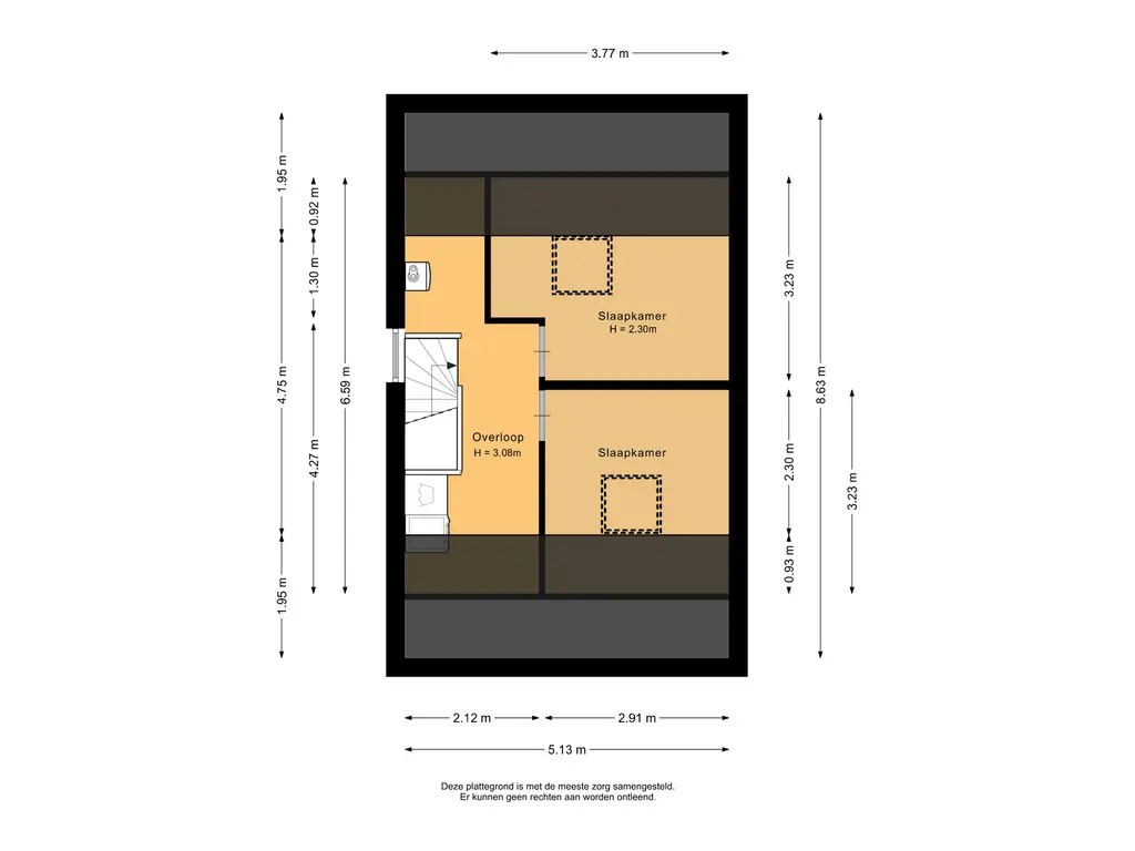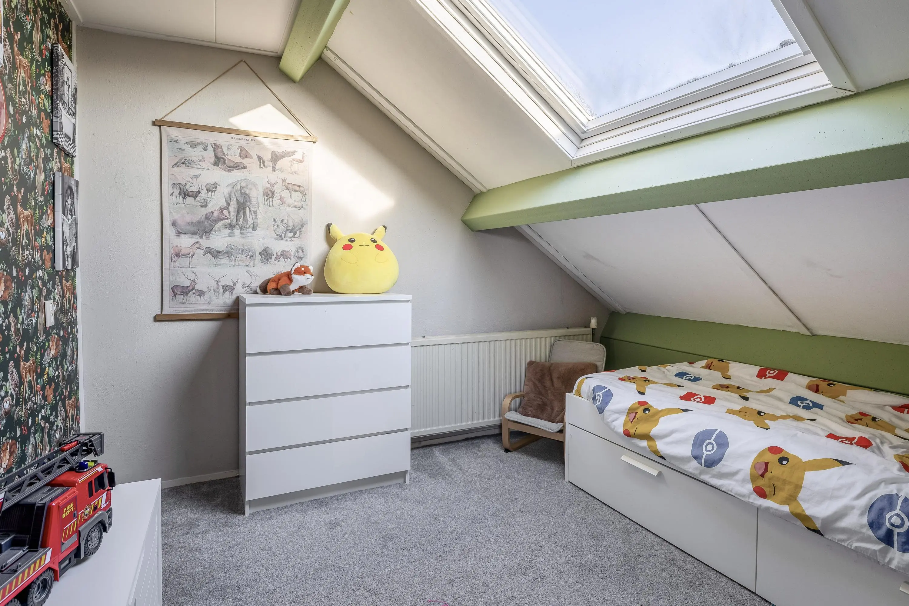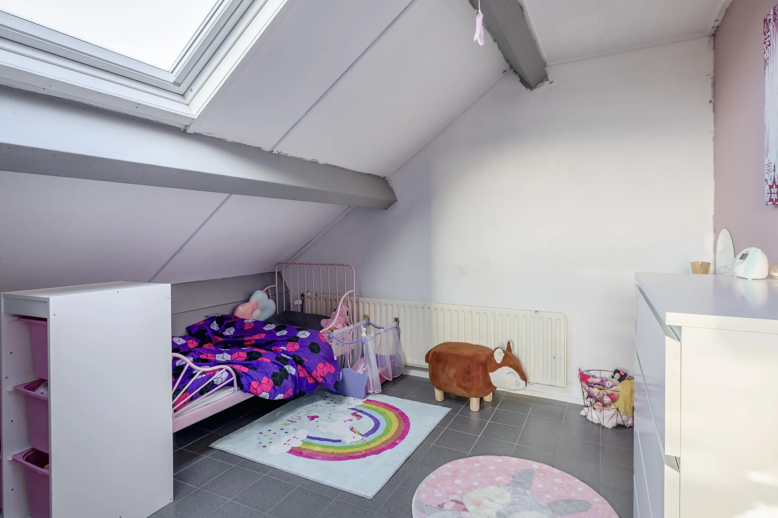 Beide slaapkamers zijn goed van formaat en beschikken over een dakraam, waardoor ze prettig licht en luchtig aanvoelen. De ene slaapkamer is voorzien van een tegelvloer, terwijl de andere is afgewerkt met een beklede vloer.