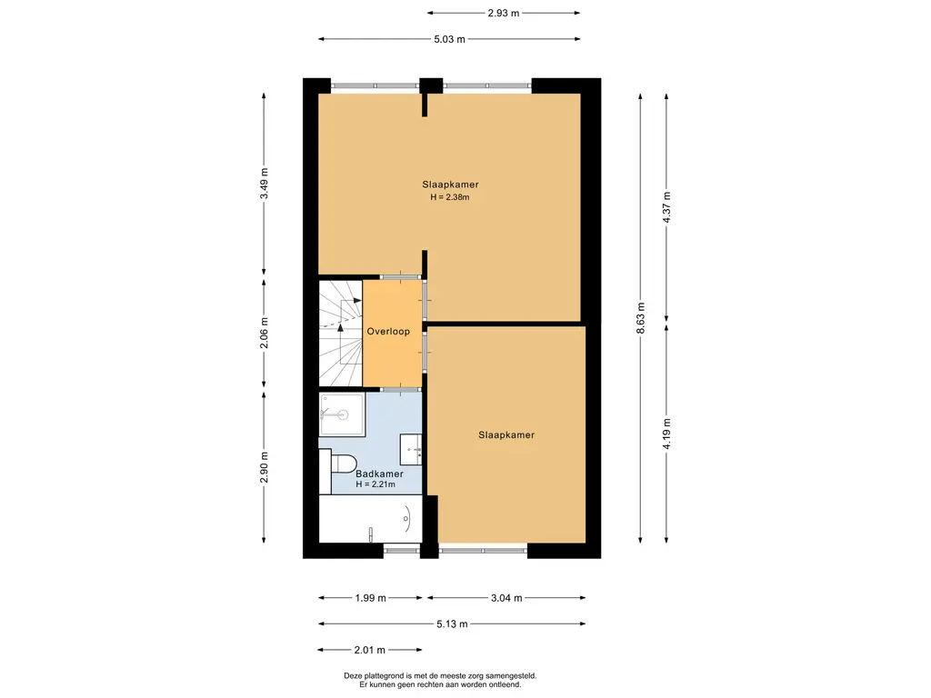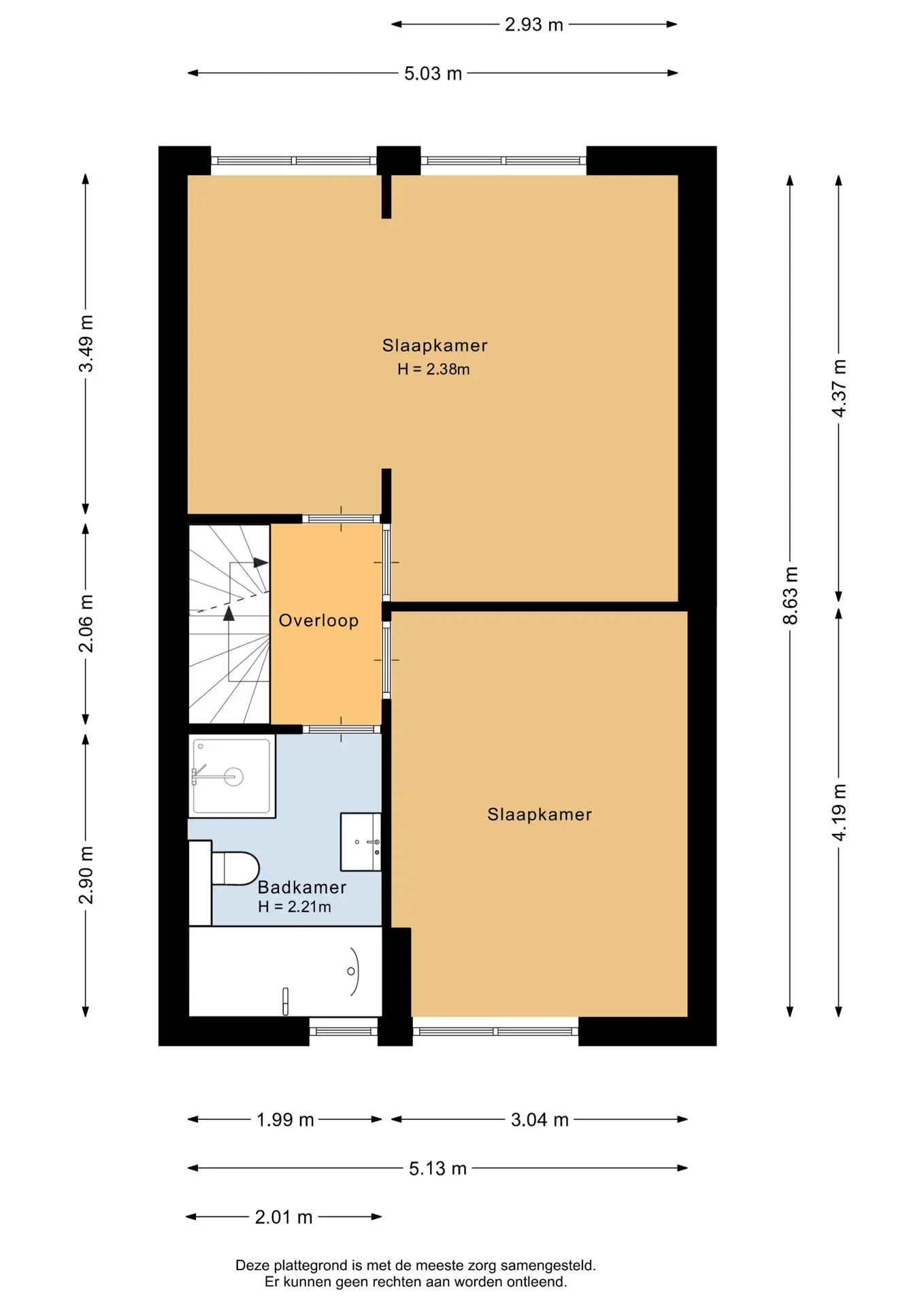 De tweede slaapkamer bevindt zich aan de voorzijde en heeft een oppervlakte van circa 12,5m².