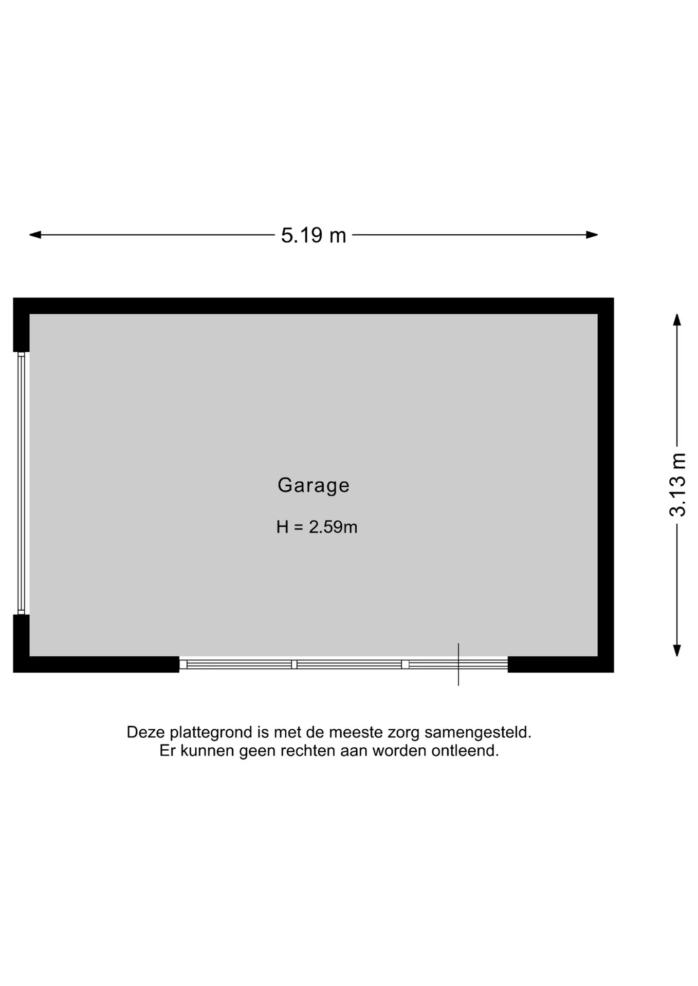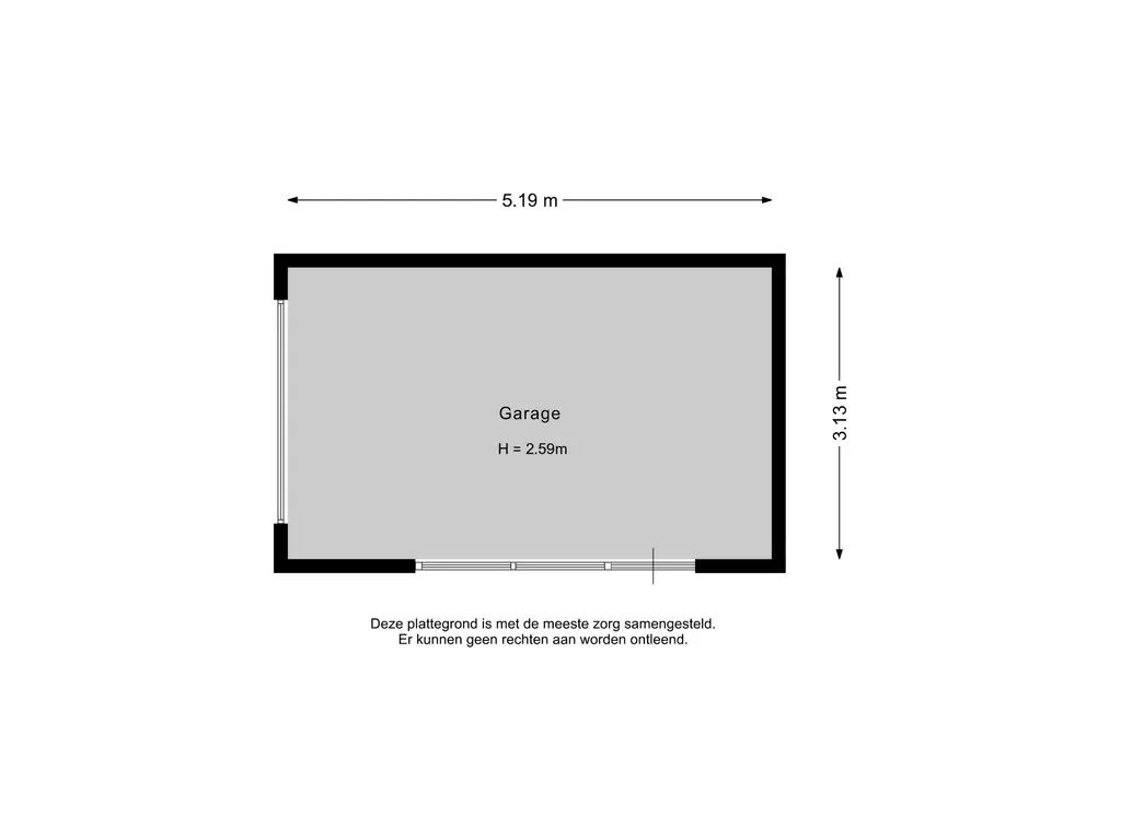 De praktische garage van circa 16m² biedt voldoende ruimte om een auto te parkeren of te gebruiken als extra bergruimte.