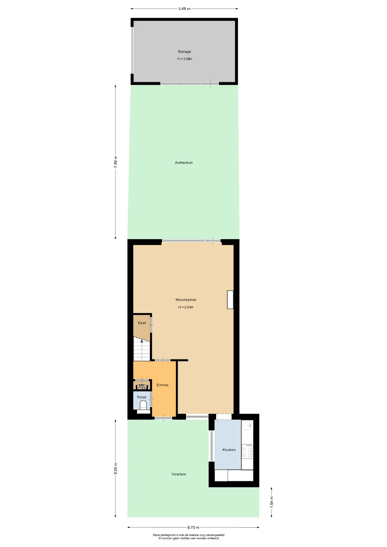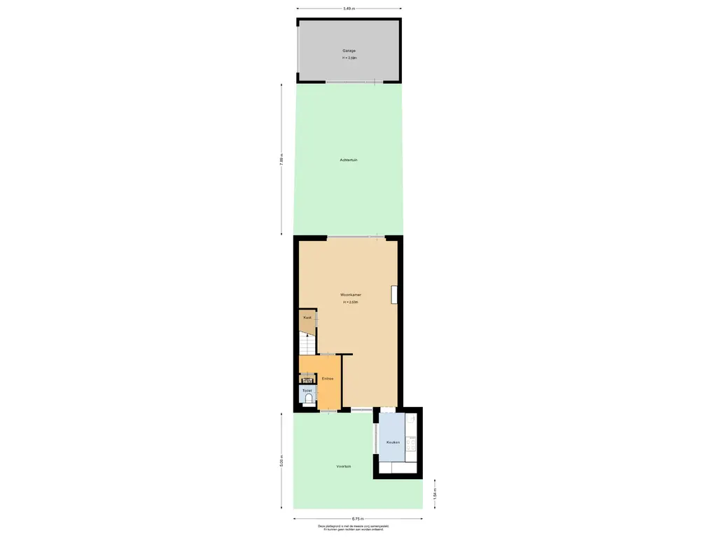 Via de zijtuin is er een doorgang van achter- naar voortuin, deze strook van ca. 44m² is huurgrond van de gemeente.