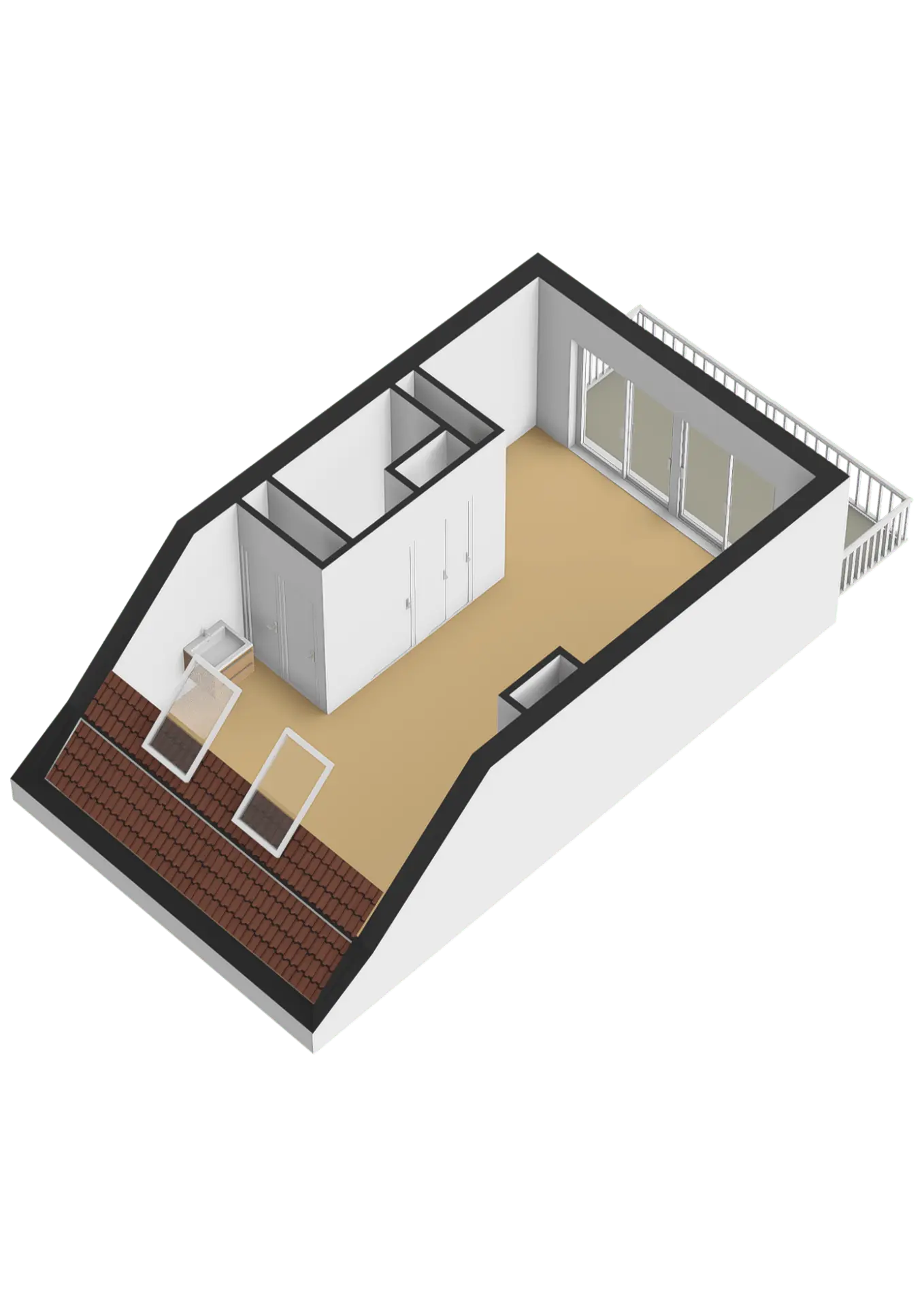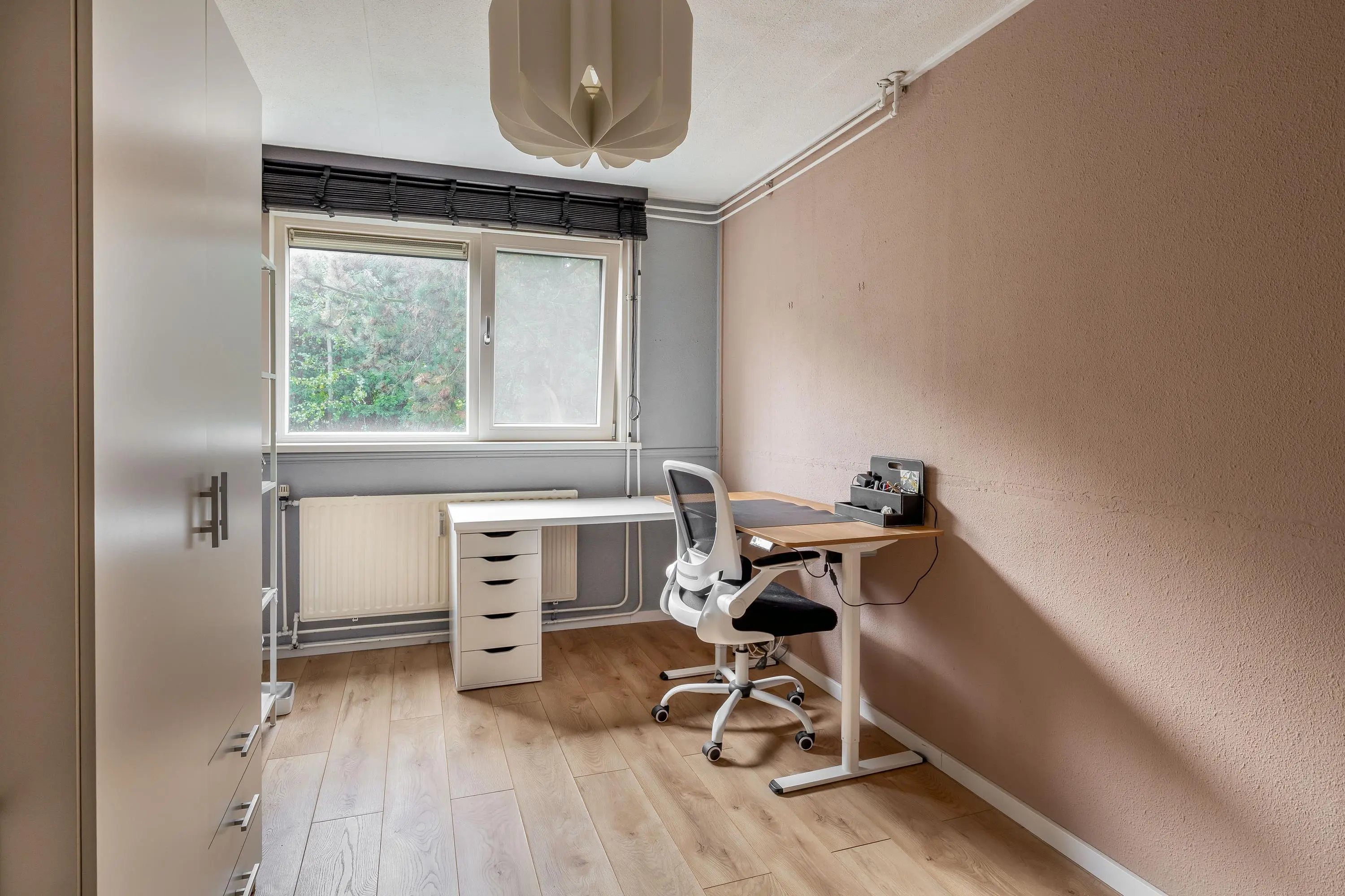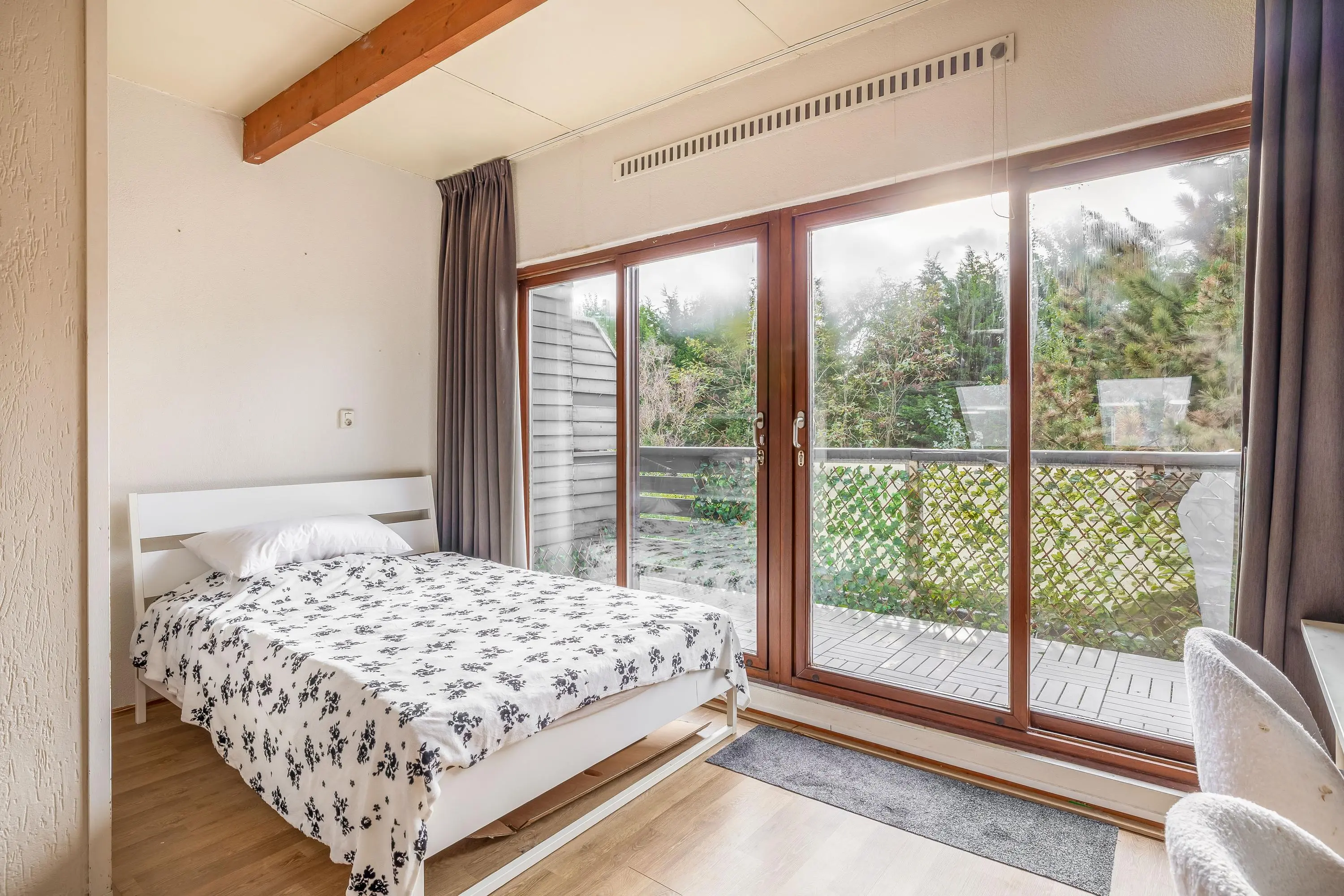 De opkomst op de tweede etage is op de overloop. De laatste slaapkamer is ook op deze etage te vinden. Een ruime kamer met aan de voorzijde 2 dakramen en aan de achterzijde een deur naar het balkon op het zuidoosten. Op het platte dak liggen zonnepanelen. Wat een fijn familiehuis!