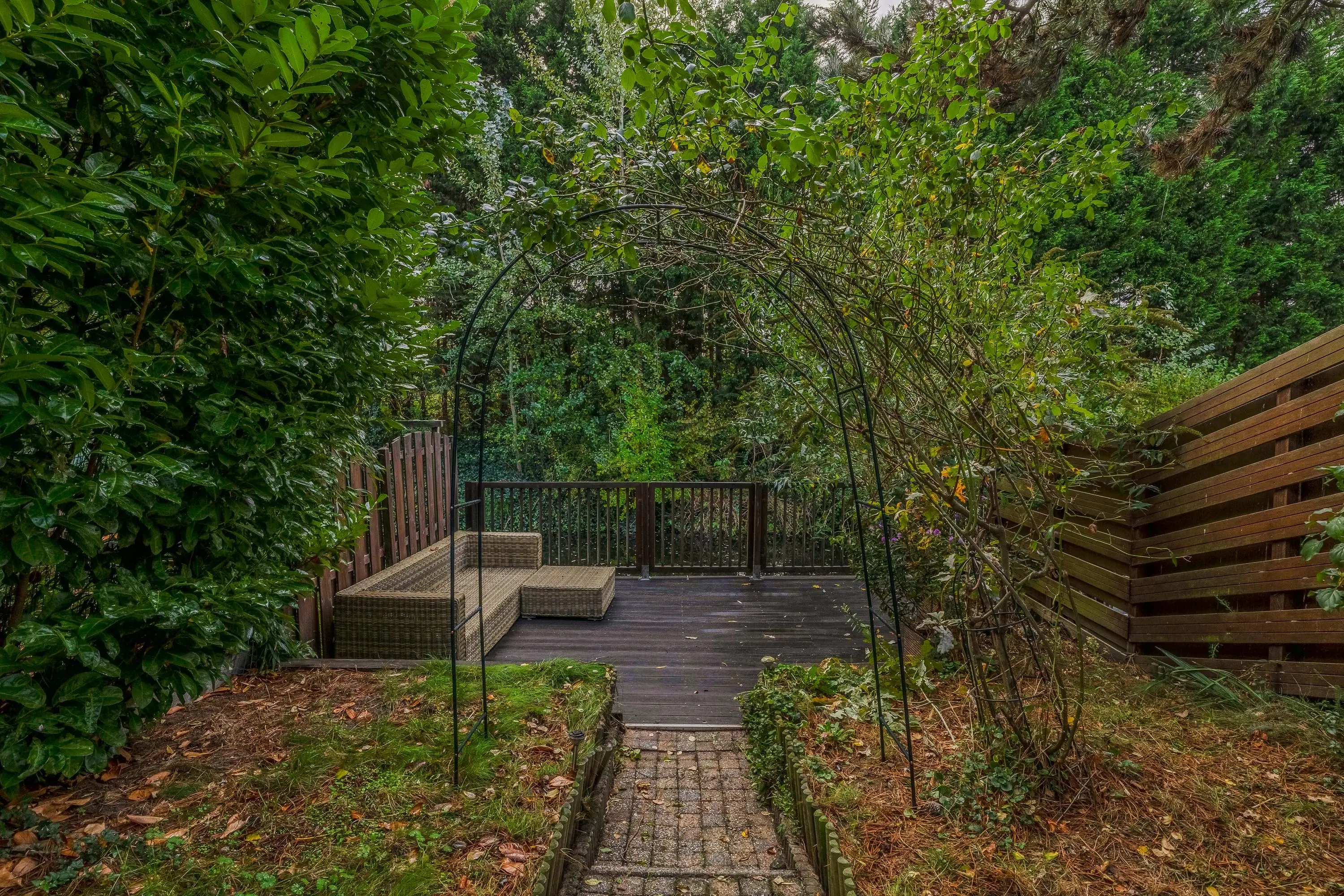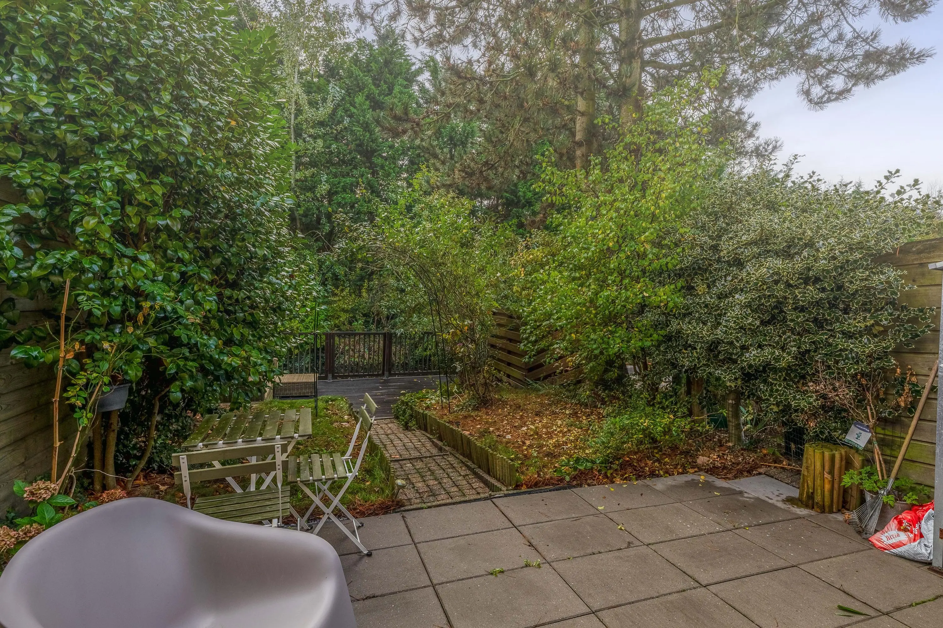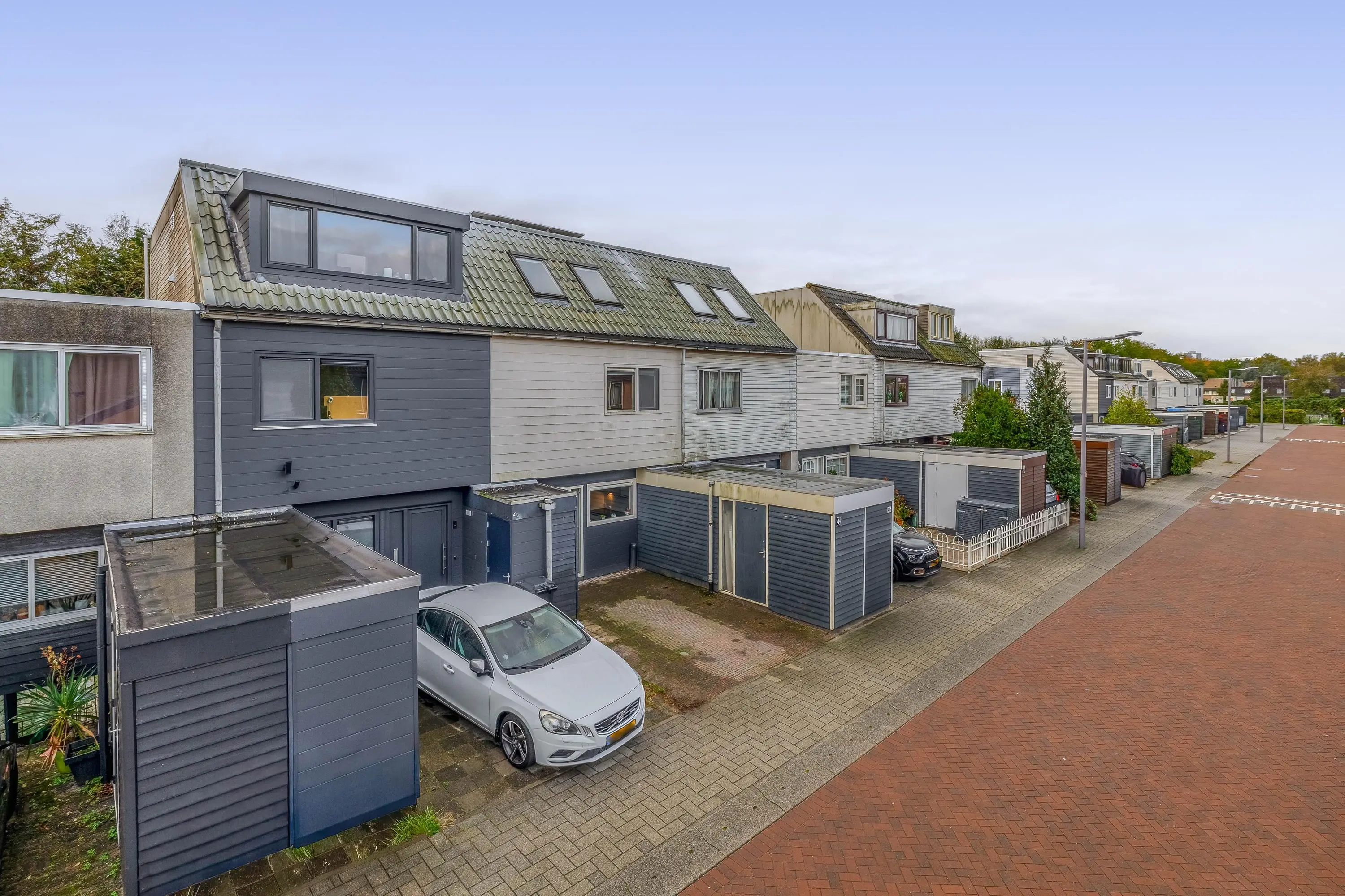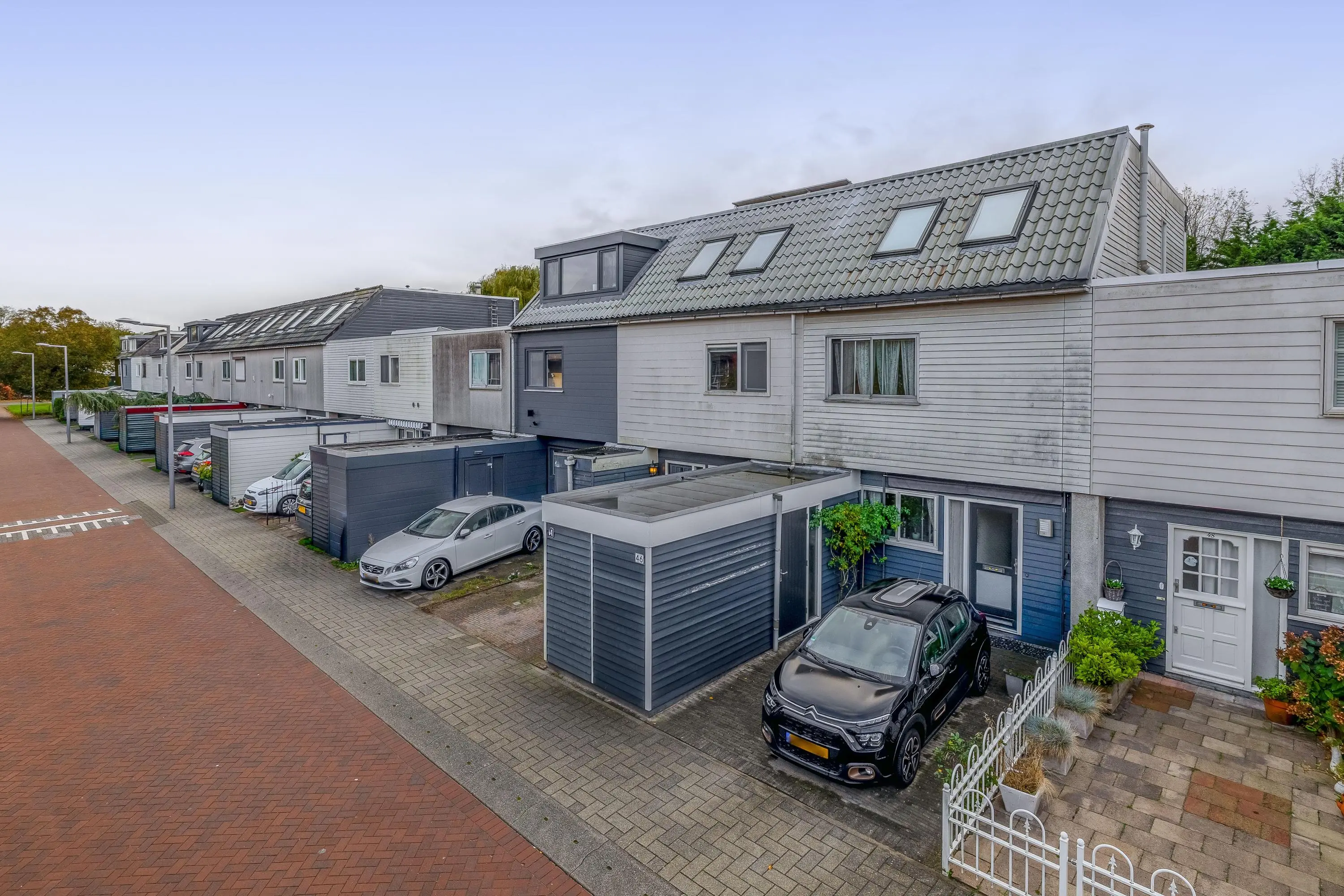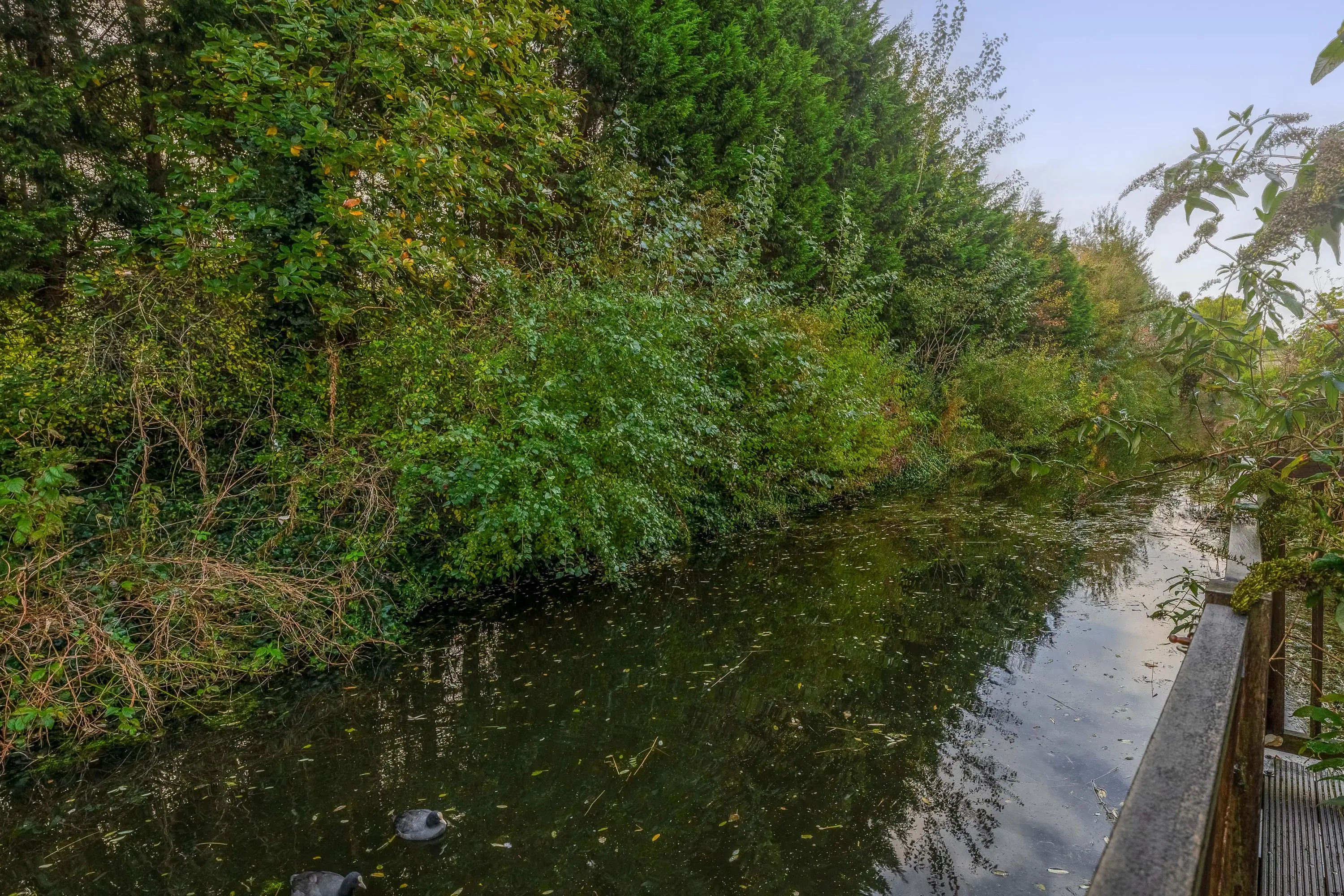 Via de voortuin is de doorgang naar de woning. De voortuin is voorzien van een eigen parkeerplaats en een praktische berging. De achtertuin heeft een heerlijk oppervlakte met veel groen, en een fijn stuk terras aan het water. Door de ligging op het zuidoosten is er veel zon in de tuin te vinden. Toch is er door de aanwezigheid van bomen achter het perceel veel privacy. Er zijn veel mogelijkheden voor een speelhoek voor de kinderen, nog meer planten en kleurrijke bloemen of juist een lekker stukje gras. Kortom; een royaal en groen perceel aan het water in een nog groenere wijk!