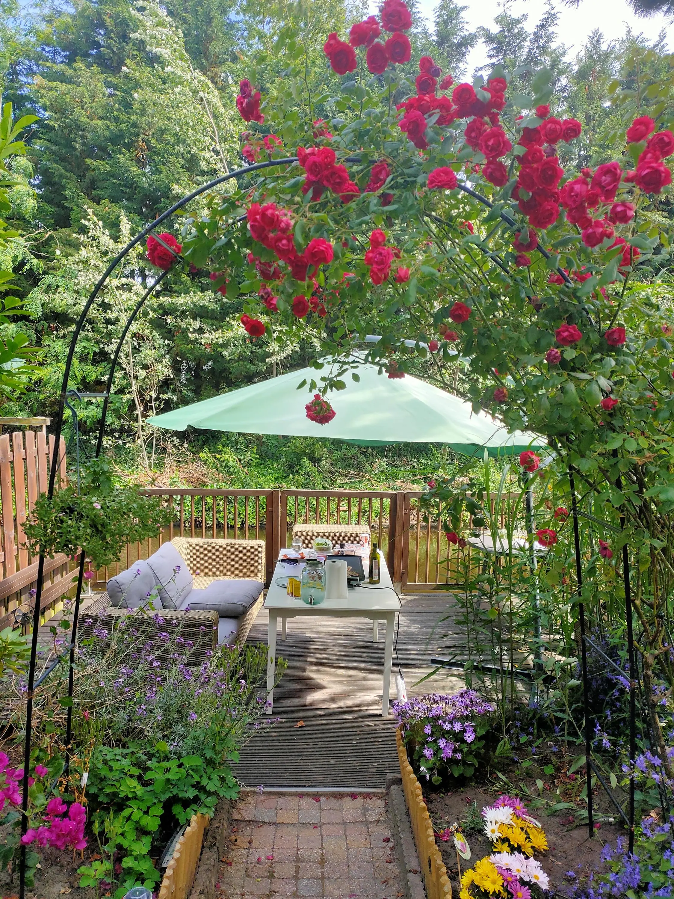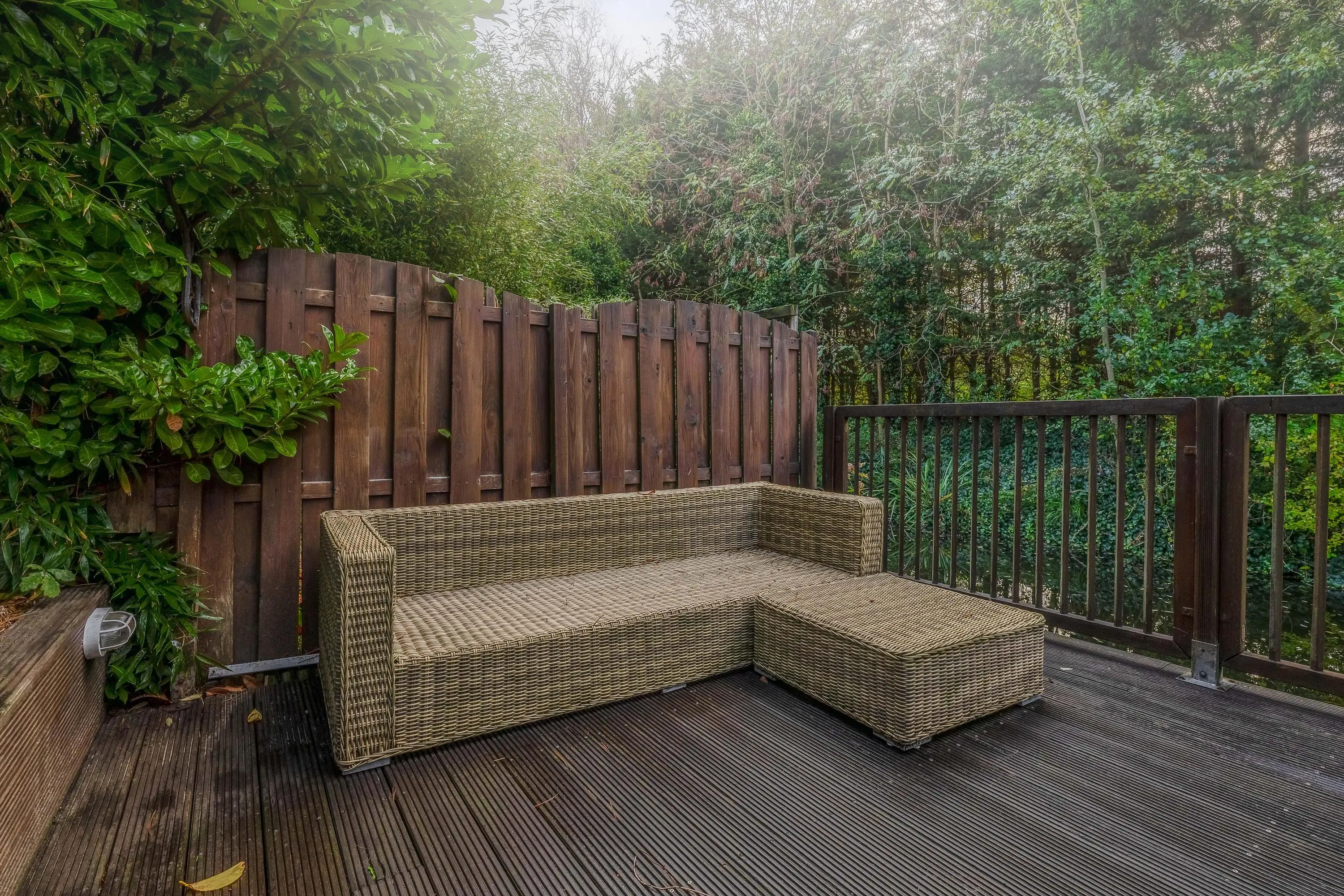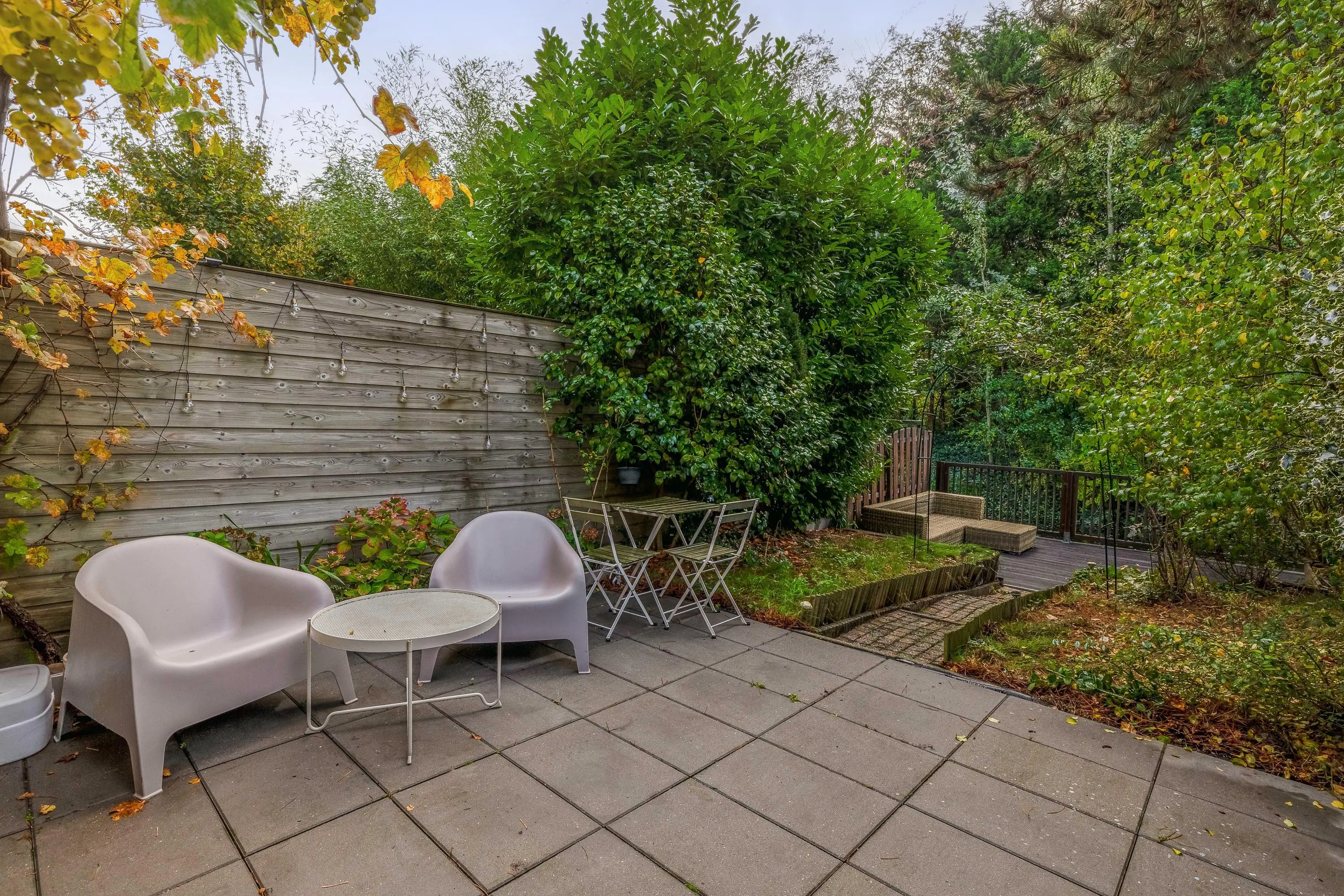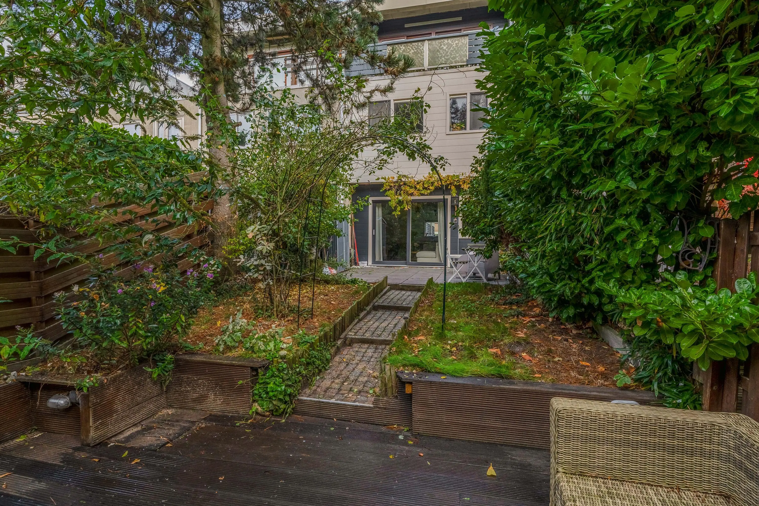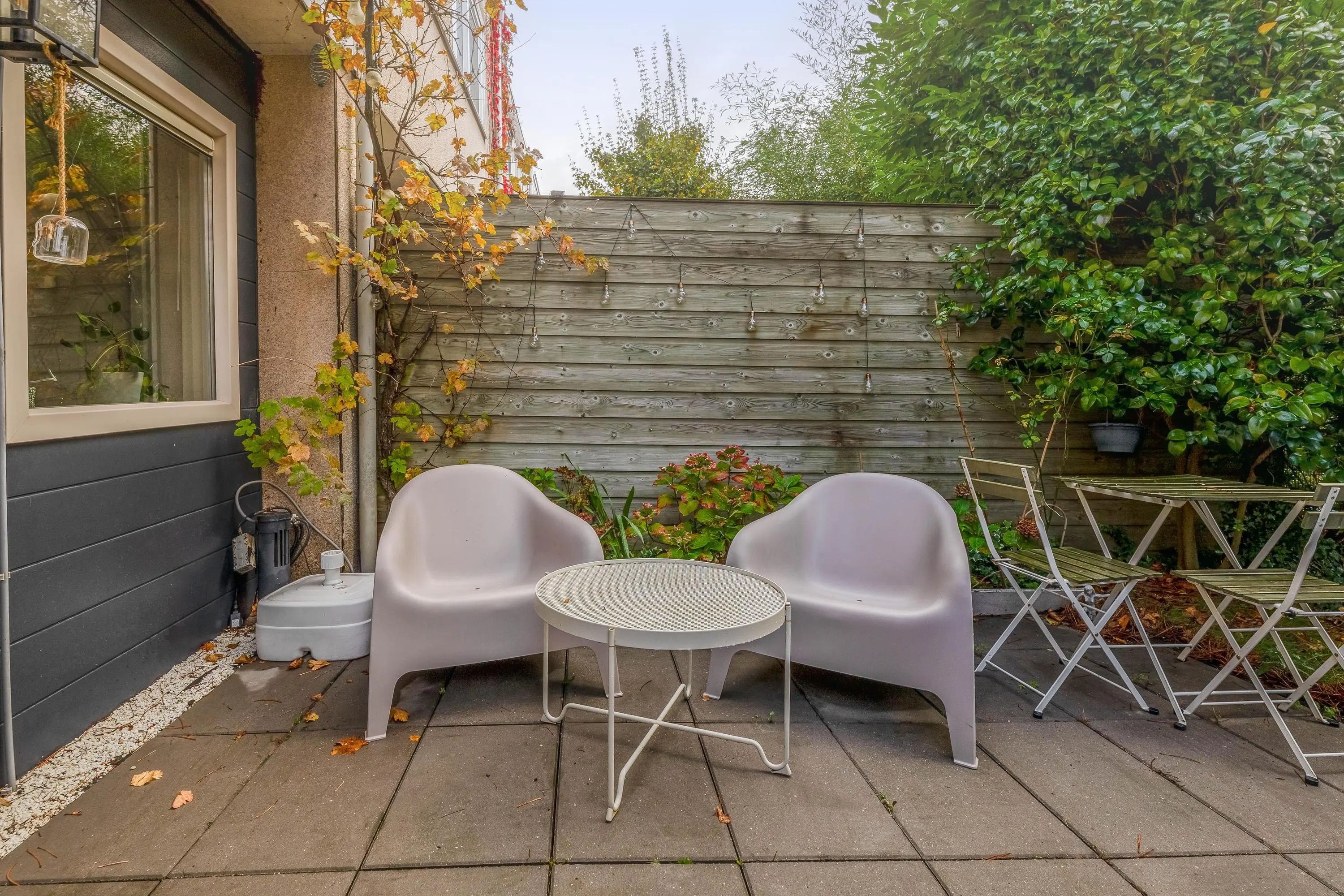 Via de voortuin is de doorgang naar de woning. De voortuin is voorzien van een eigen parkeerplaats en een praktische berging. De achtertuin heeft een heerlijk oppervlakte met veel groen, en een fijn stuk terras aan het water. Door de ligging op het zuidoosten is er veel zon in de tuin te vinden. Toch is er door de aanwezigheid van bomen achter het perceel veel privacy. Er zijn veel mogelijkheden voor een speelhoek voor de kinderen, nog meer planten en kleurrijke bloemen of juist een lekker stukje gras. Kortom; een royaal en groen perceel aan het water in een nog groenere wijk!