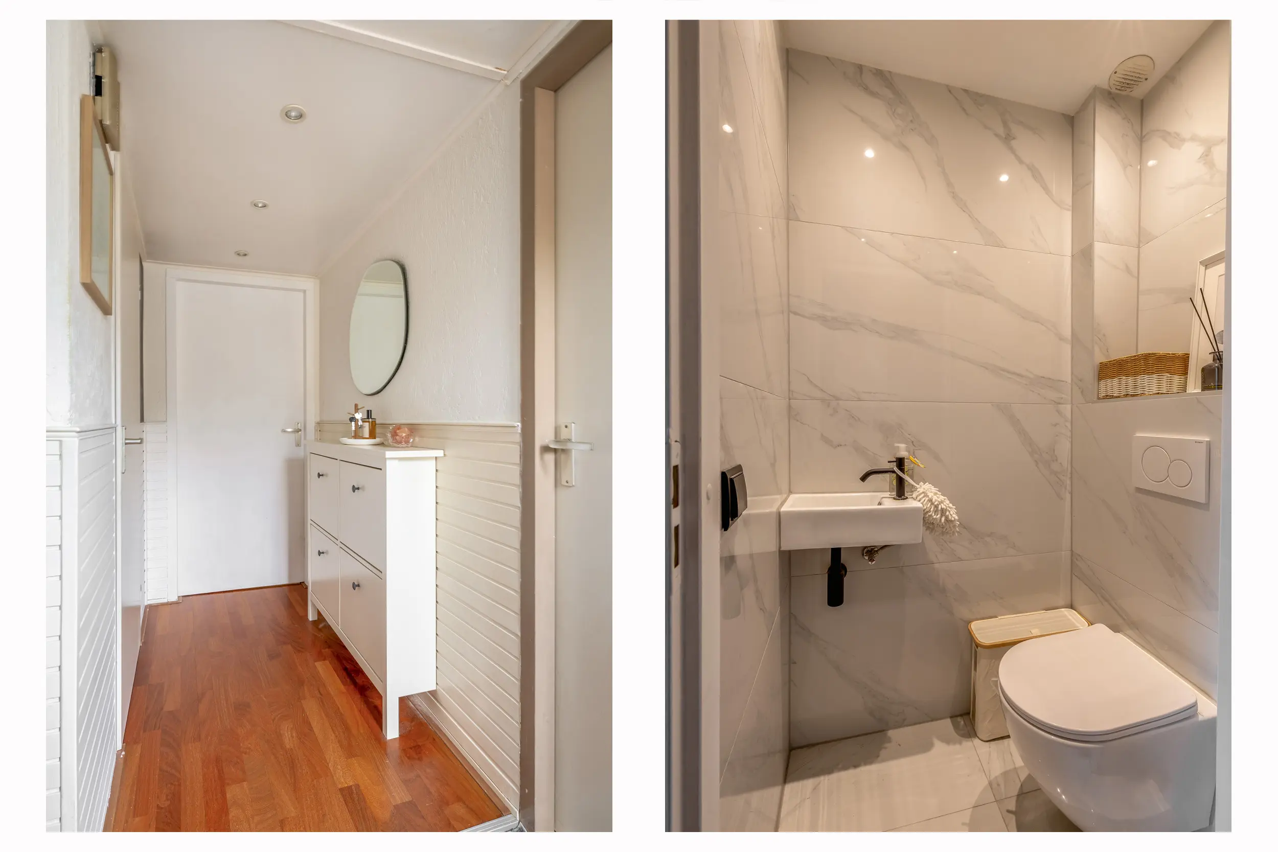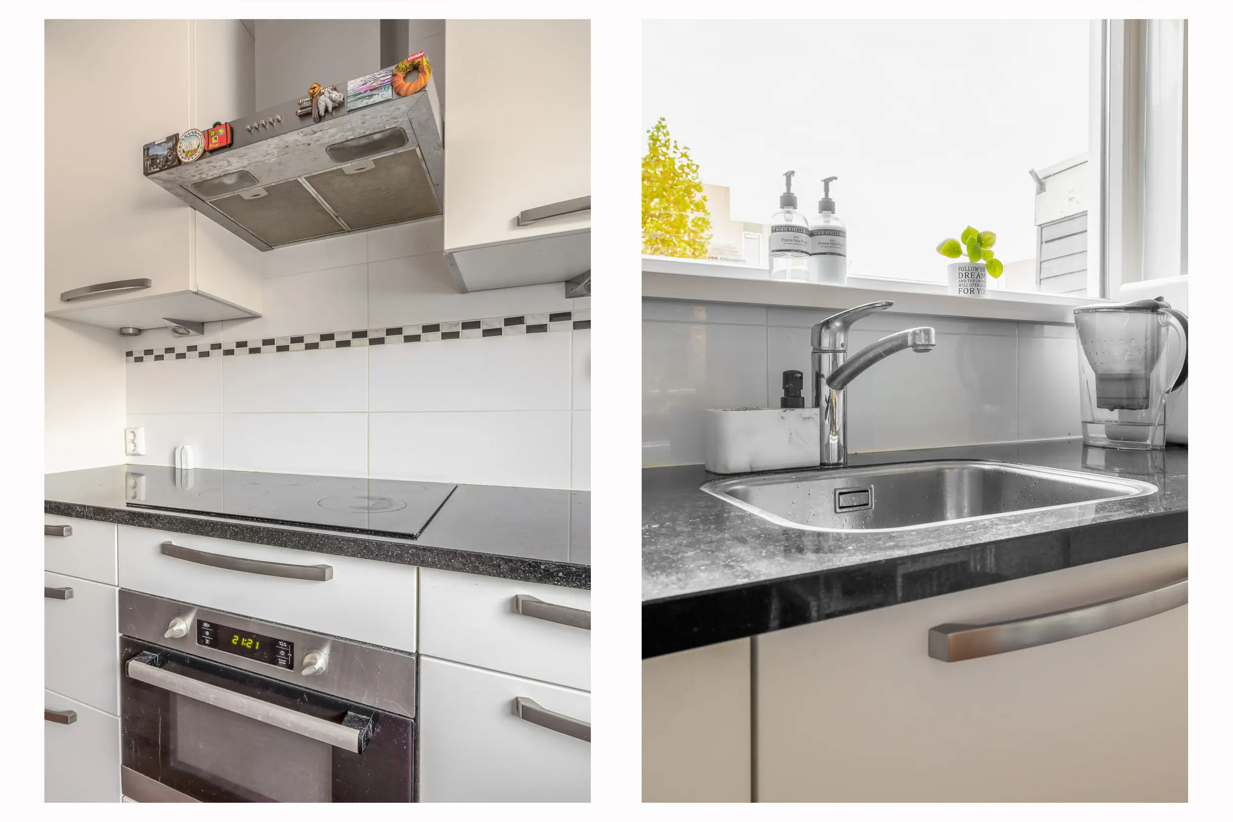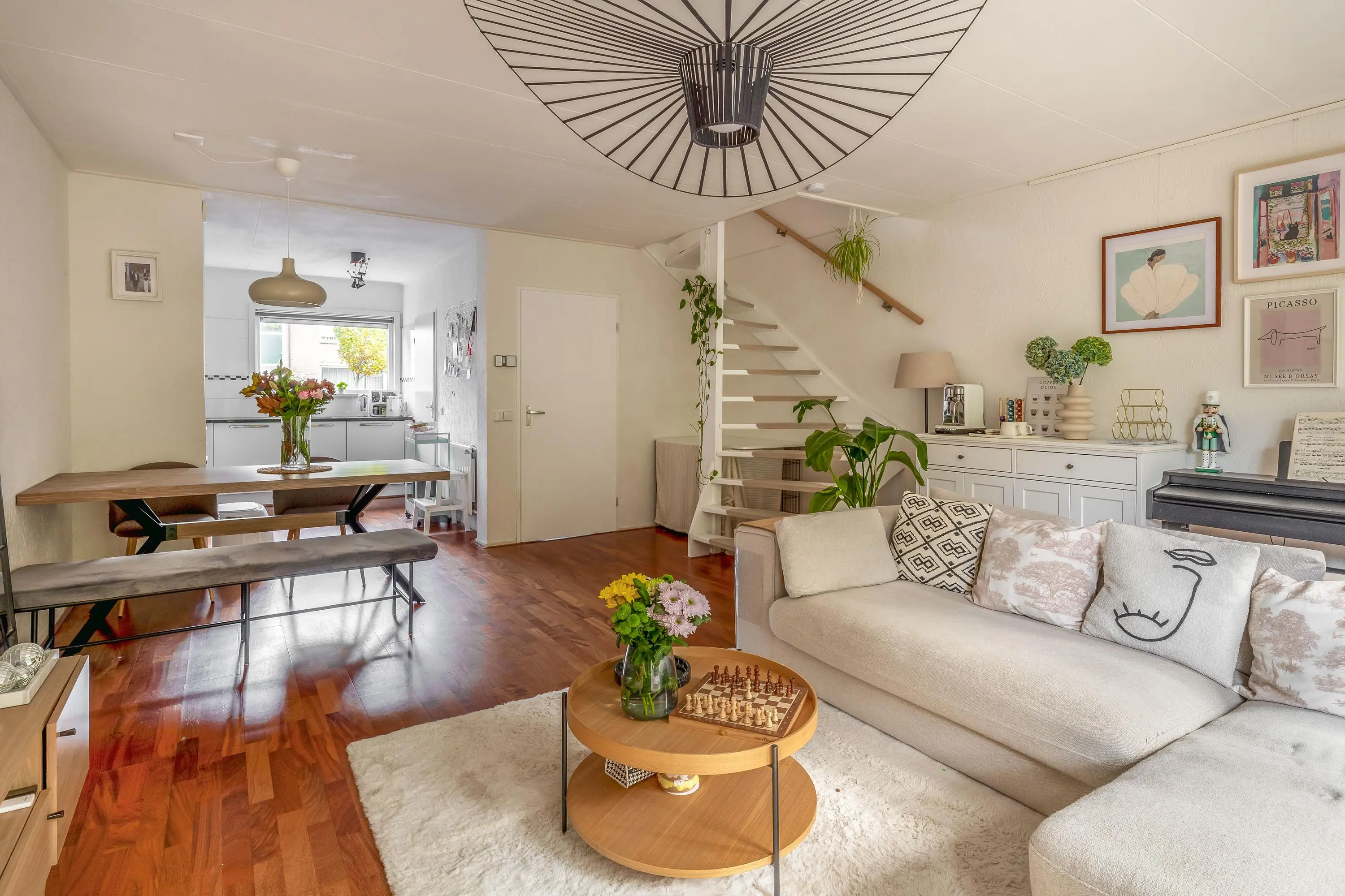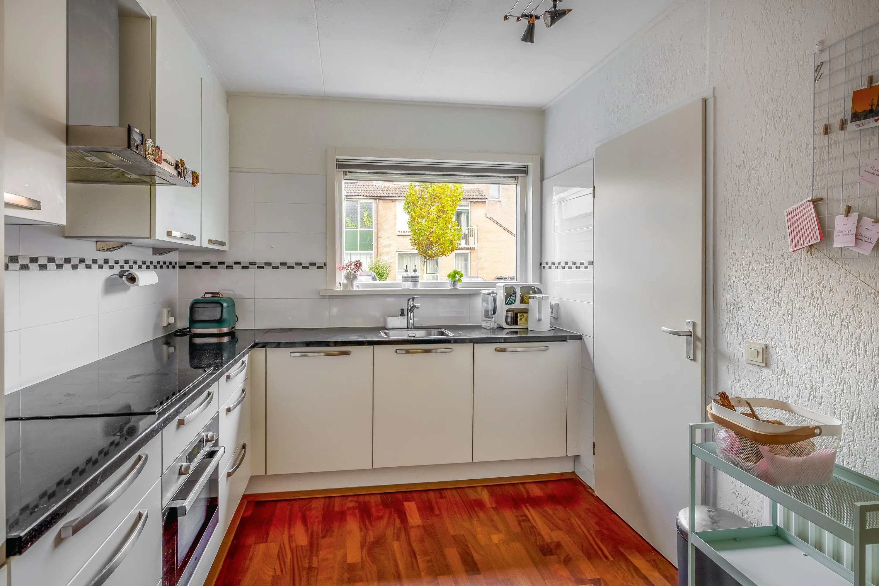 De entree in de woning is in de hal. Aan de linkerzijde is de gerenoveerde toiletruimte aanwezig, deze is voorzien van een wandcloset en een fonteintje. Ook is de meterkast in de hal aanwezig. Dan volgt de doorgang naar de woonkamer. Links is een trapkast te vinden. En dan die heerlijke living aan de achterzijde en open keuken aan de voorzijde. Wat een fijne plek om te zijn! Er is voldoende ruimte voor een gezellige zithoek en een praktische eethoek. De keuken bevindt zich aan de voorzijde. Deze is in een U-opstelling voorzien van een divers aanbod aan apparatuur. Denk dan aan een inductie kookplaat, afzuigkap, koelkast, vaatwasser, spoelbak en natuurlijk veel kastruimte. Middels de grote schuifpui is de doorgang naar de fijne achtertuin.
