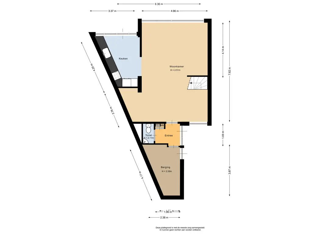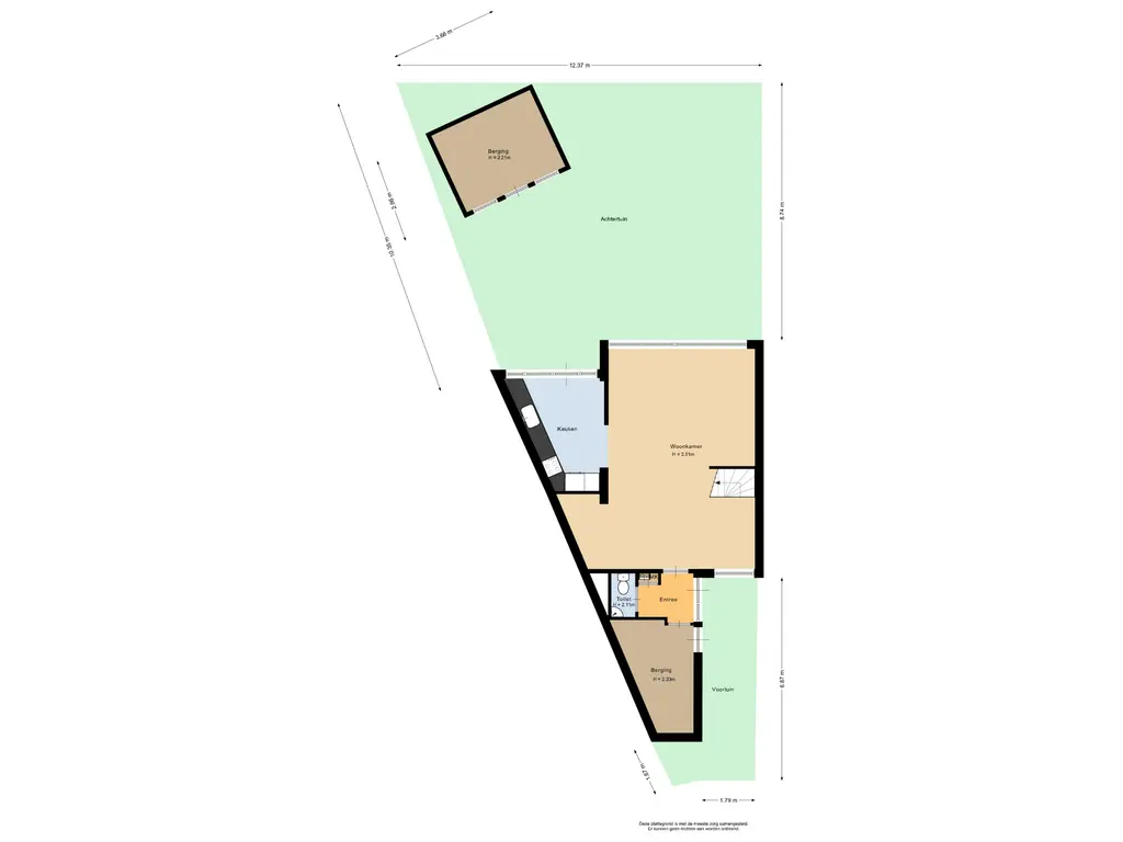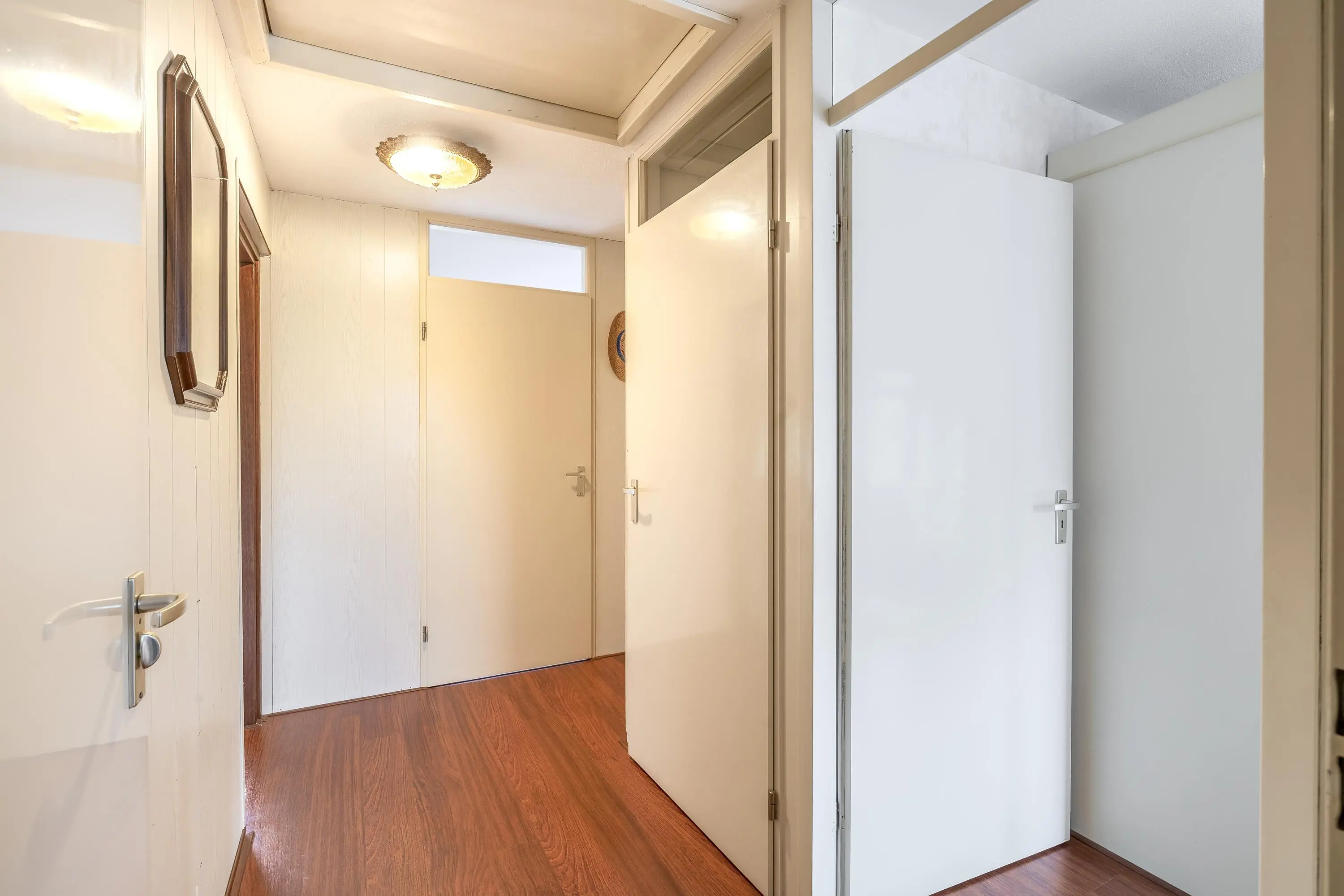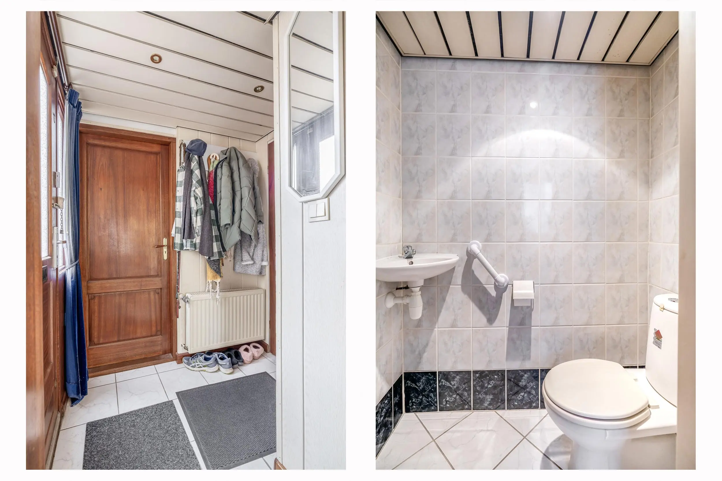 De entree/hal is voorzien van een tegelvloer en biedt toegang tot de meterkast, het separate toilet met fonteintje, de berging en de leefruimte.