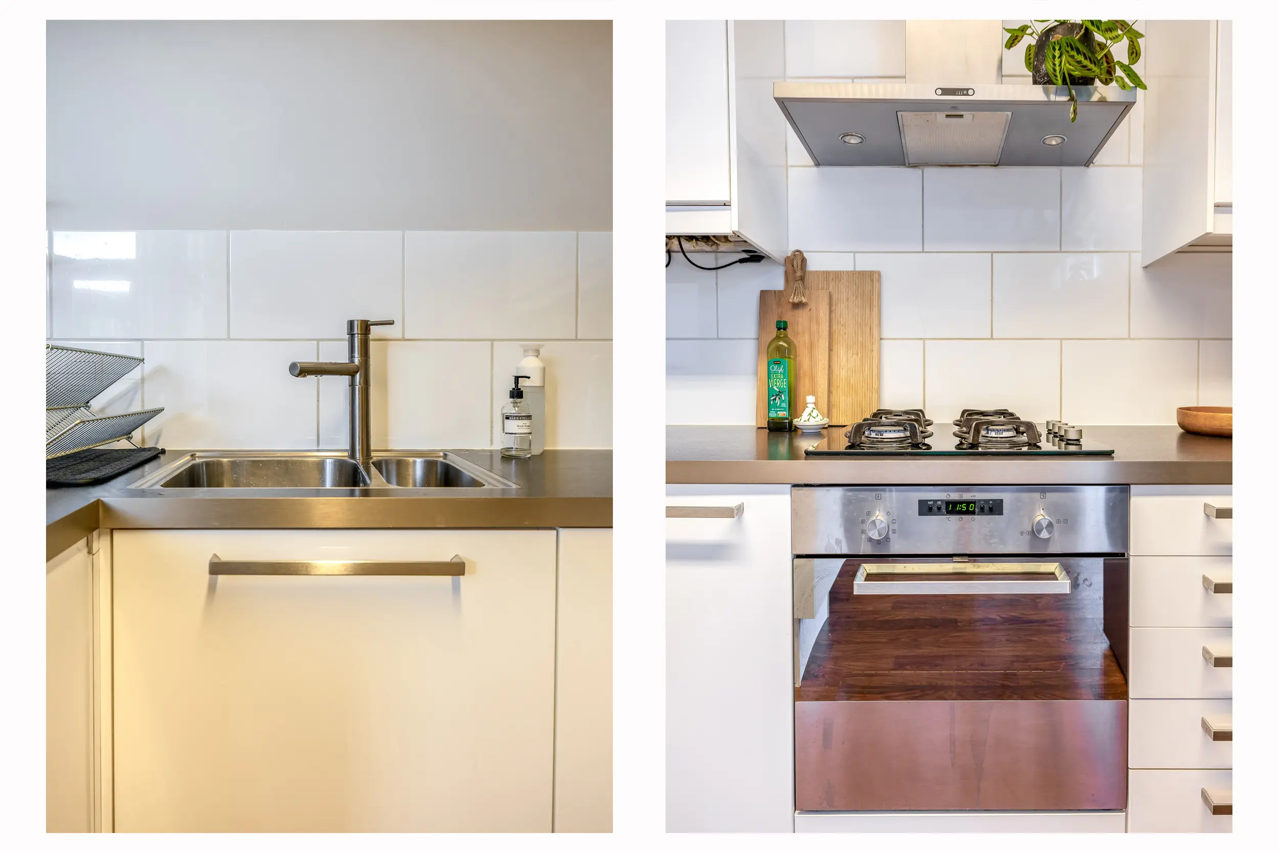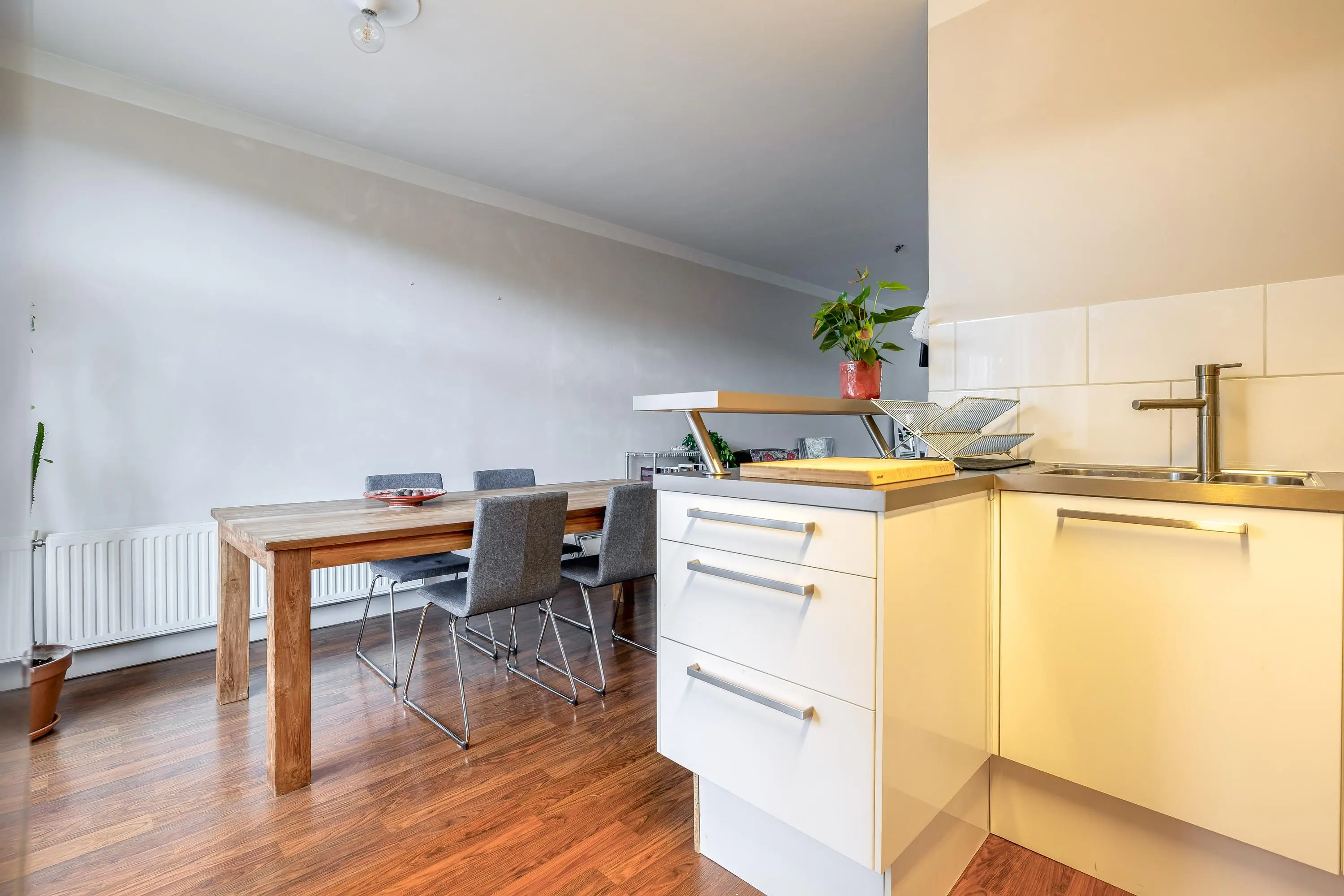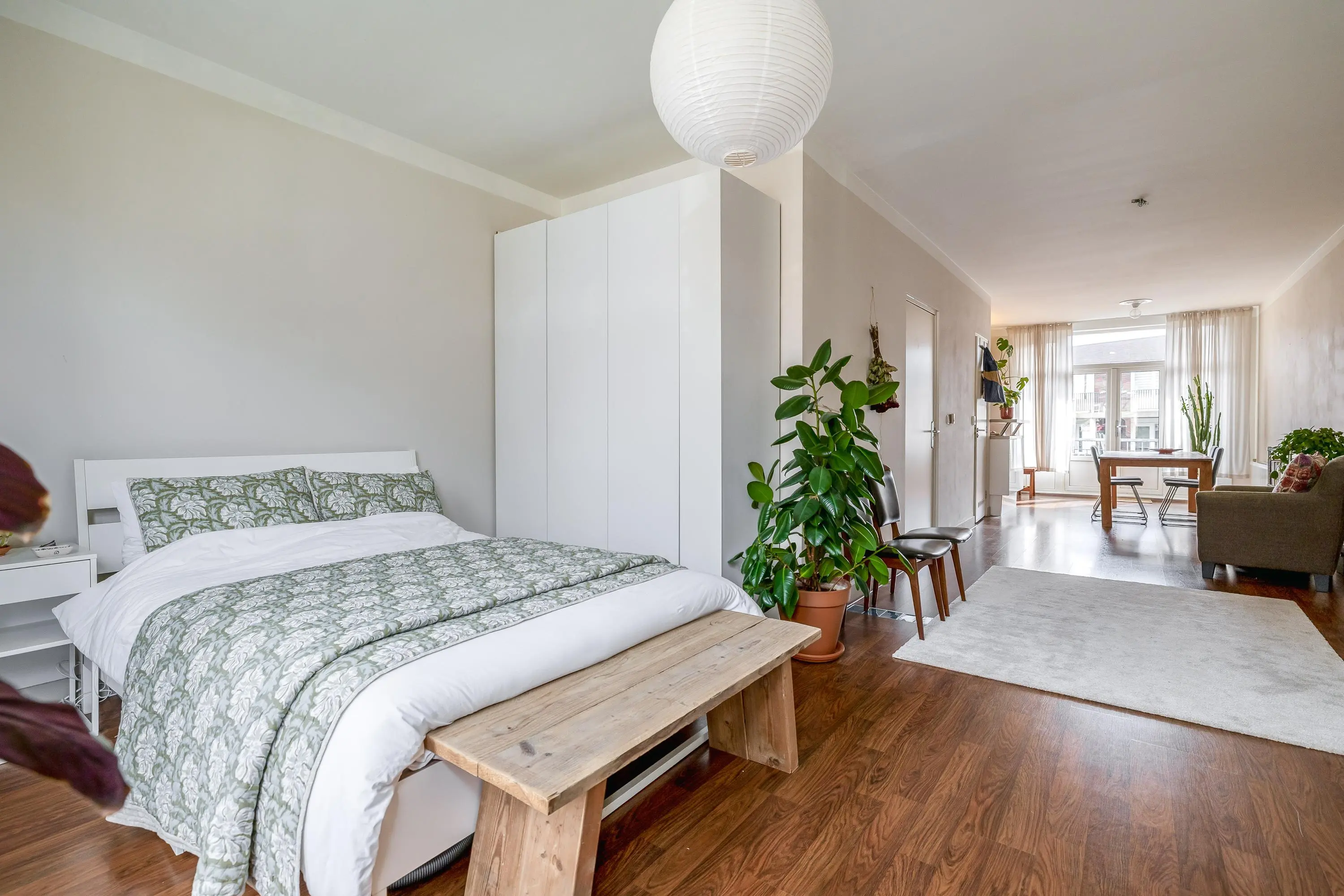 Middels het gesloten portiek is de woning bereikbaar. De entree in de woning is in de royale living. Aan de achterzijde is de open keuken aanwezig, aan de voorzijde bevindt zich de slaapkamer. De kamer is ruim en heeft een mooie authentieke erker waardoor er veel natuurlijk licht naar binnen komt. De meterkast is ook in deze slaapruimte aanwezig. Voor de doorgang naar de keuken is eerst de badkamer te vinden. Deze heeft als sanitaire voorzieningen een douche, toilet en een wastafel met meubel. Via de woonruimte is ook het fijne balkon bereikbaar, deze is gelegen op het zuidoosten. De open keuken is in een L-opstelling voorzien van een divers aanbod aan inbouwapparatuur. Denk dan aan een gaskookplaat, oven, magnetron, afzuigkap, dubbele spoelbak koel-/vriescombinatie, vaatwasser en voldoende kastruimte. De keuken is in een nette staat en heeft een moderne afwerking. Wat een leuk appartement!