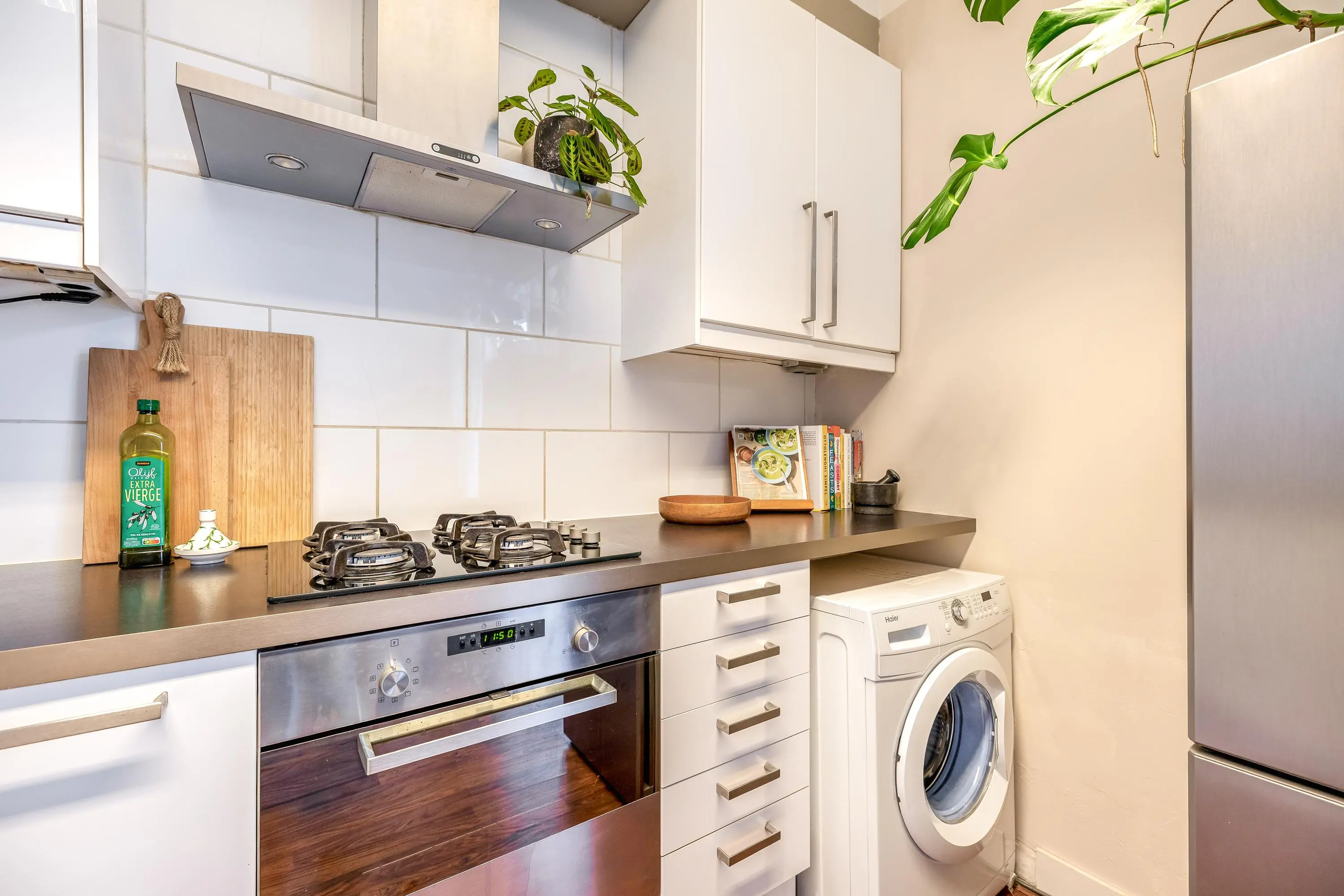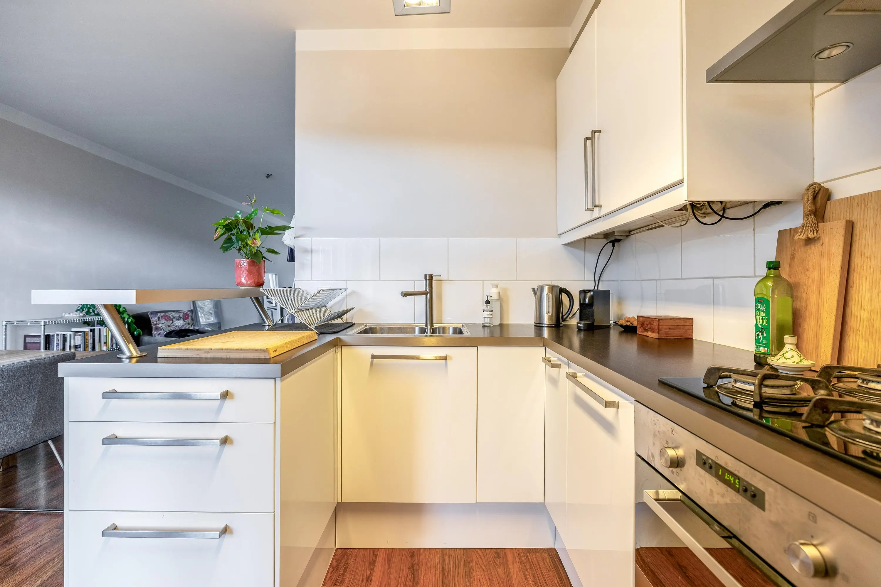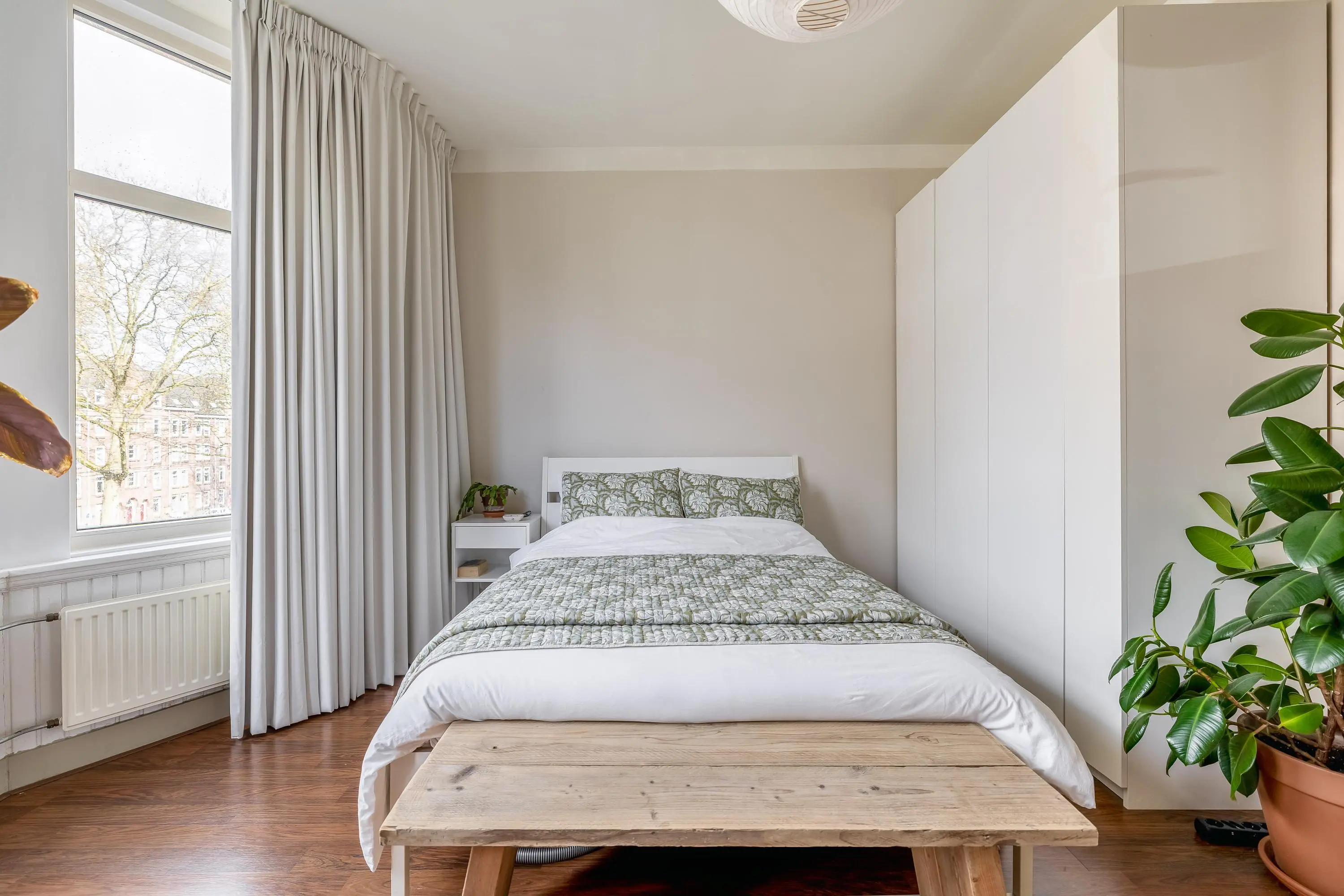 Middels het gesloten portiek is de woning bereikbaar. De entree in de woning is in de royale living. Aan de achterzijde is de open keuken aanwezig, aan de voorzijde bevindt zich de slaapkamer. De kamer is ruim en heeft een mooie authentieke erker waardoor er veel natuurlijk licht naar binnen komt. De meterkast is ook in deze slaapruimte aanwezig. Voor de doorgang naar de keuken is eerst de badkamer te vinden. Deze heeft als sanitaire voorzieningen een douche, toilet en een wastafel met meubel. Via de woonruimte is ook het fijne balkon bereikbaar, deze is gelegen op het zuidoosten. De open keuken is in een L-opstelling voorzien van een divers aanbod aan inbouwapparatuur. Denk dan aan een gaskookplaat, oven, magnetron, afzuigkap, dubbele spoelbak koel-/vriescombinatie, vaatwasser en voldoende kastruimte. De keuken is in een nette staat en heeft een moderne afwerking. Wat een leuk appartement!