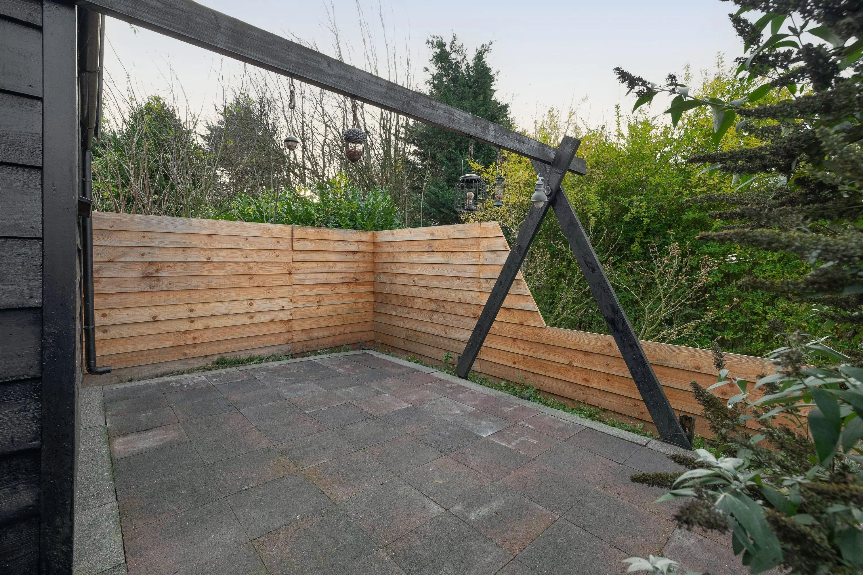 De ruime achtertuin is grotendeels bestraat en aangevuld met diverse borders voor beplanting. Het eerste, ruime niveau van de tuin leent zich uitstekend voor het creëren van een gezellige loungeplek of een comfortabele eethoek, ideaal om in de zomer heerlijk buiten te genieten. Daarnaast is hier een praktische buitenkraan aanwezig.