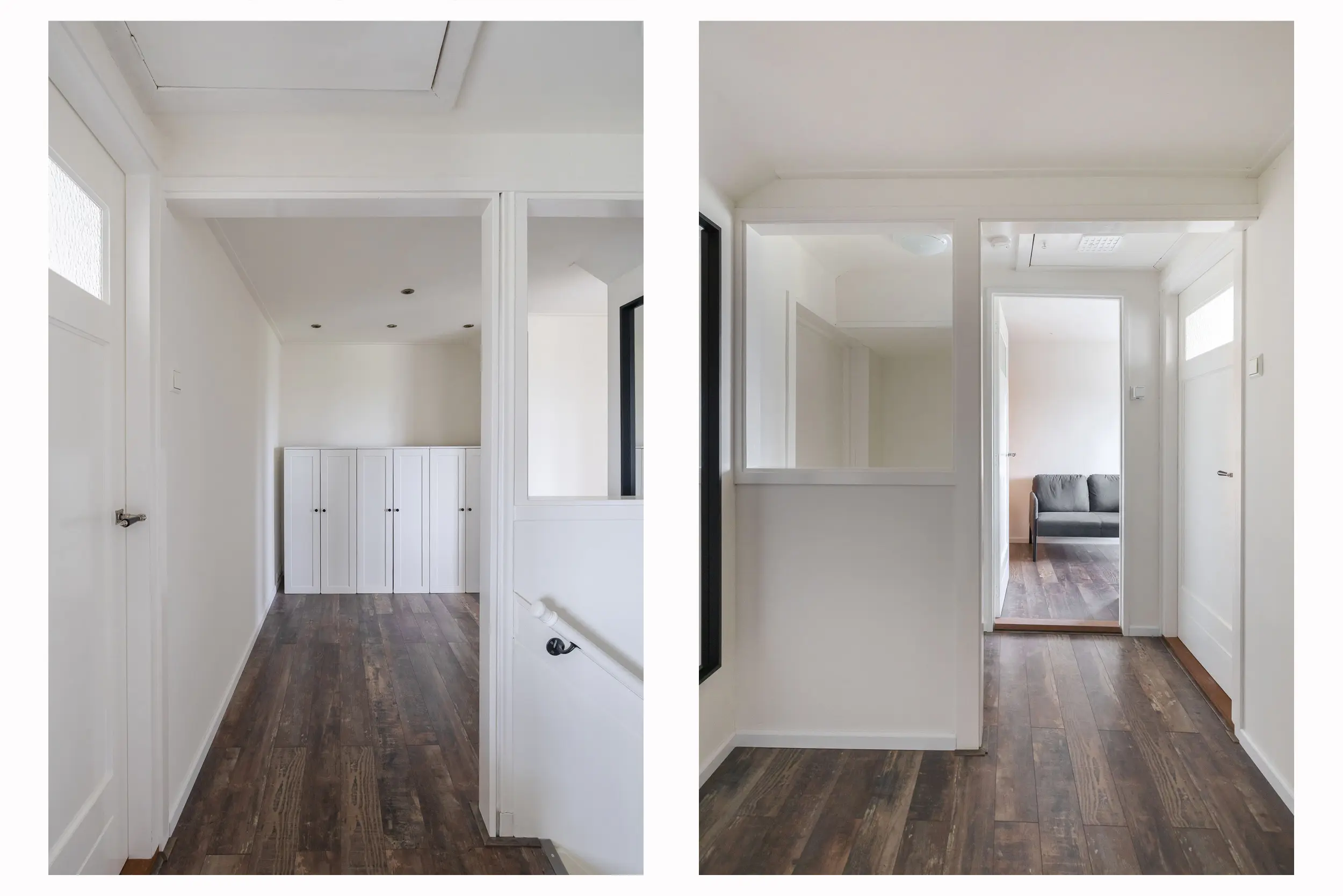 De overloop is voorzien van dezelfde laminaatvloer als in de woonkamer, welke doorloopt in de slaapkamers. Vanaf de overloop is er toegang tot drie slaapkamers, de badkamer en de vliering.
