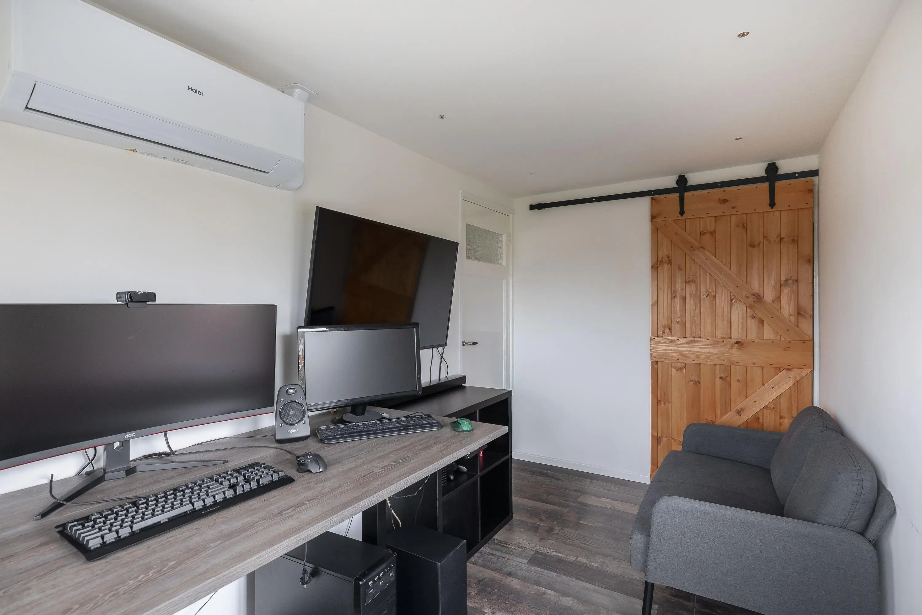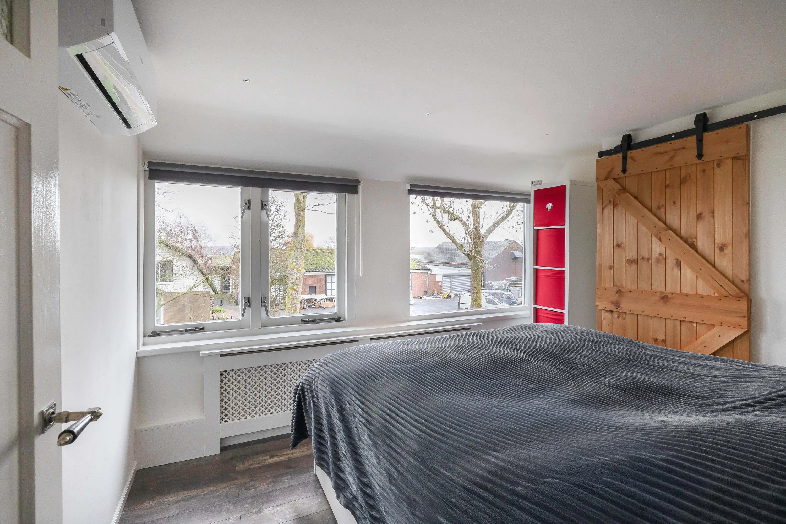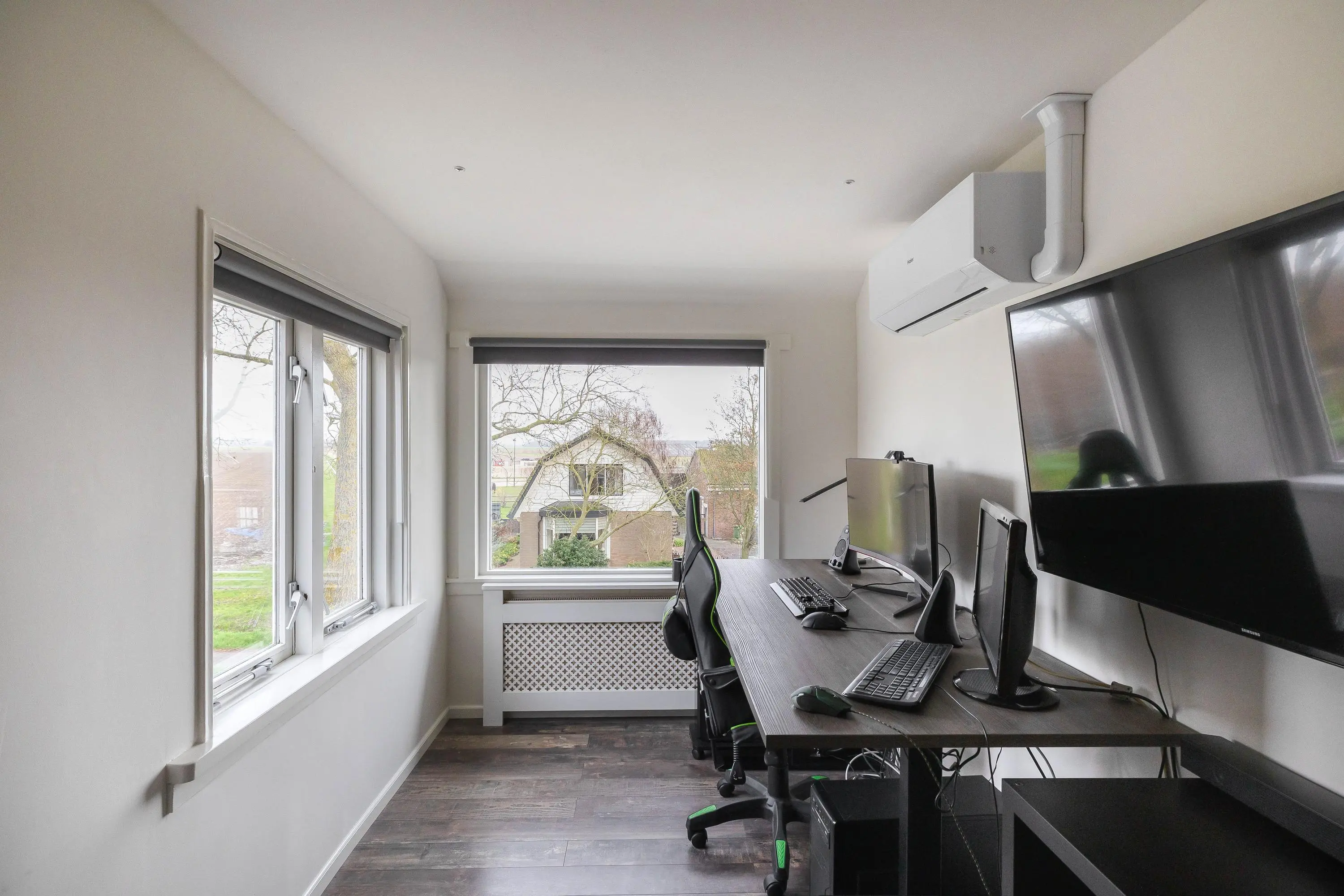 De tweede en derde slaapkamer bevinden zich aan de voorzijde van de woning. De tweede slaapkamer meet circa 9,5m², beschikt over een inbouwkast met schuifdeur en is voorzien van airconditioning. De derde slaapkamer heeft een oppervlakte van ongeveer 7,5m² en beschikt eveneens over een inbouwkast met schuifdeur en airconditioning.