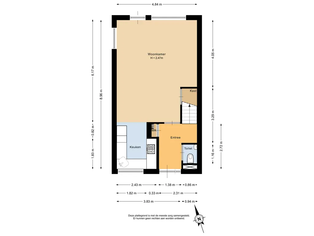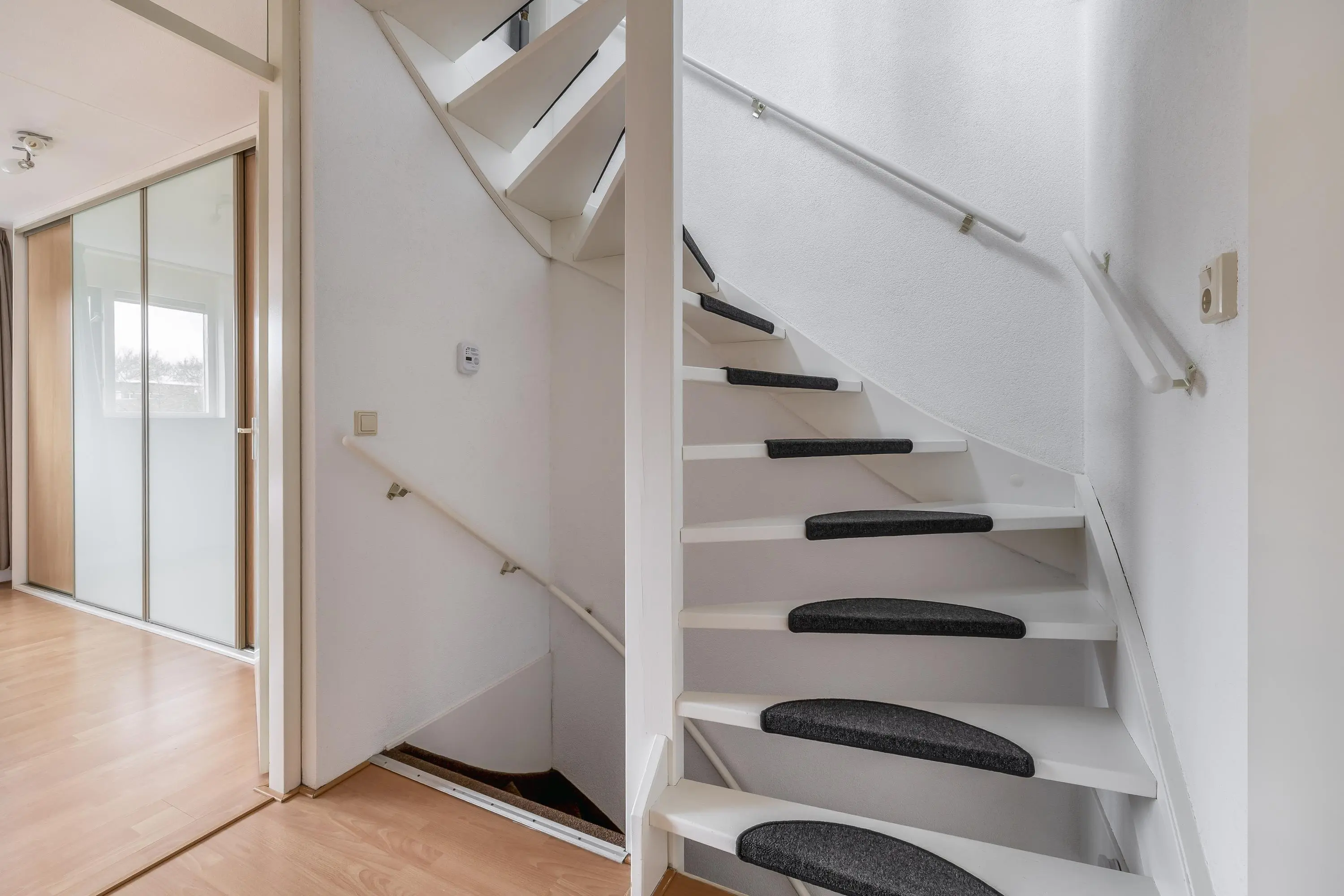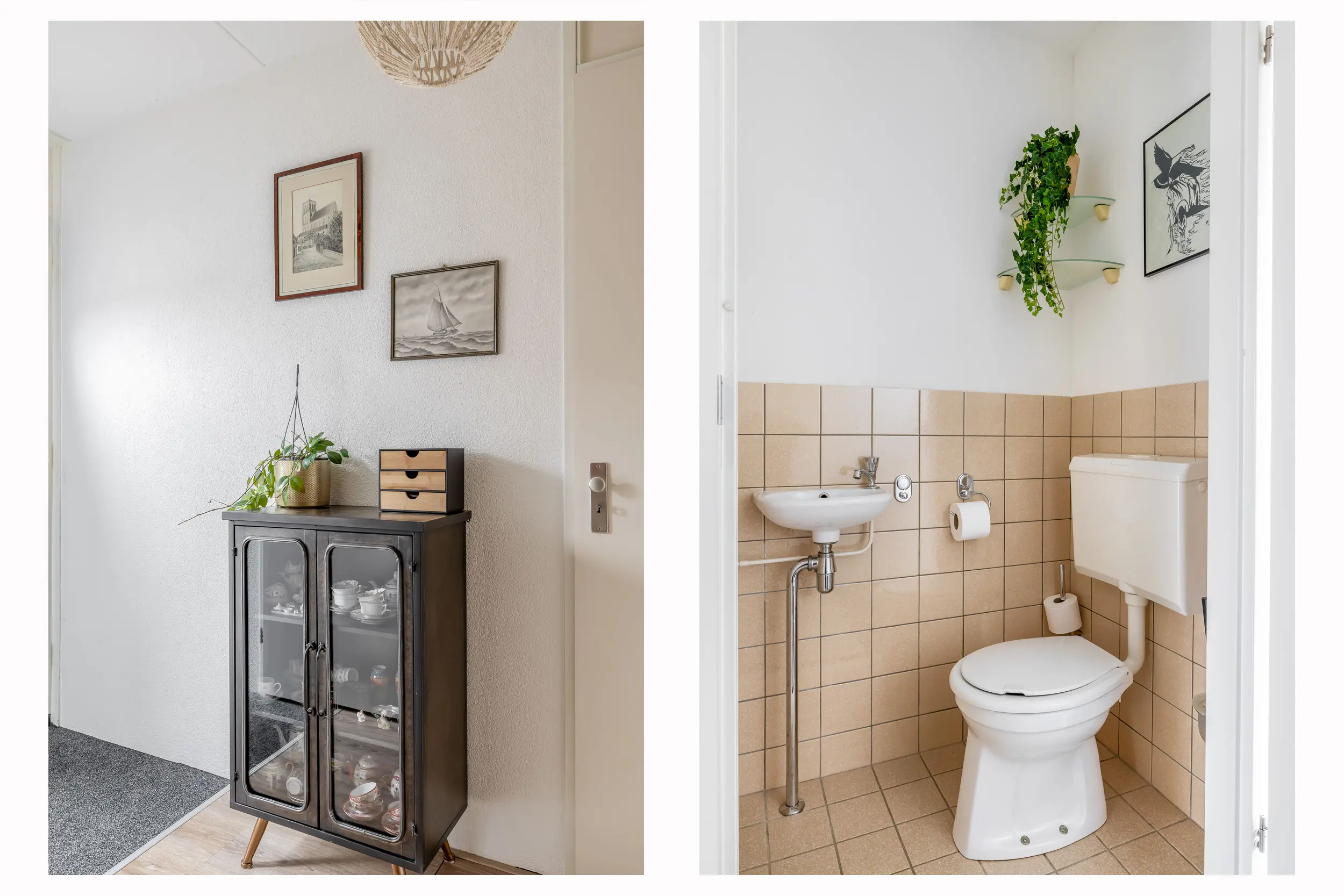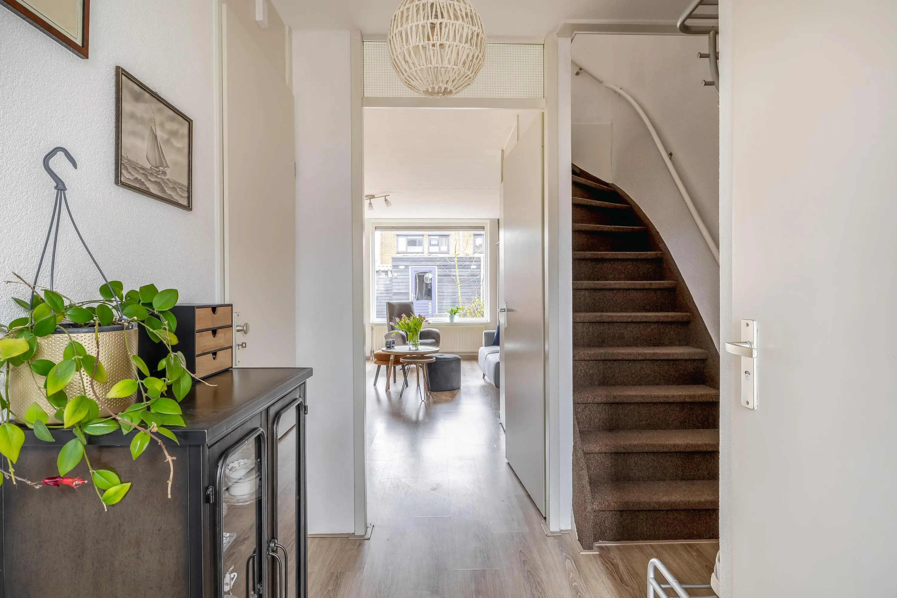 Entree/hal voorzien van een nette laminaatvloer welke doorloopt over de gehele begane grond. In de hal bevindt zich de meterkast, het separate toilet met fonteintje en de trapopgang naar de eerste verdieping.