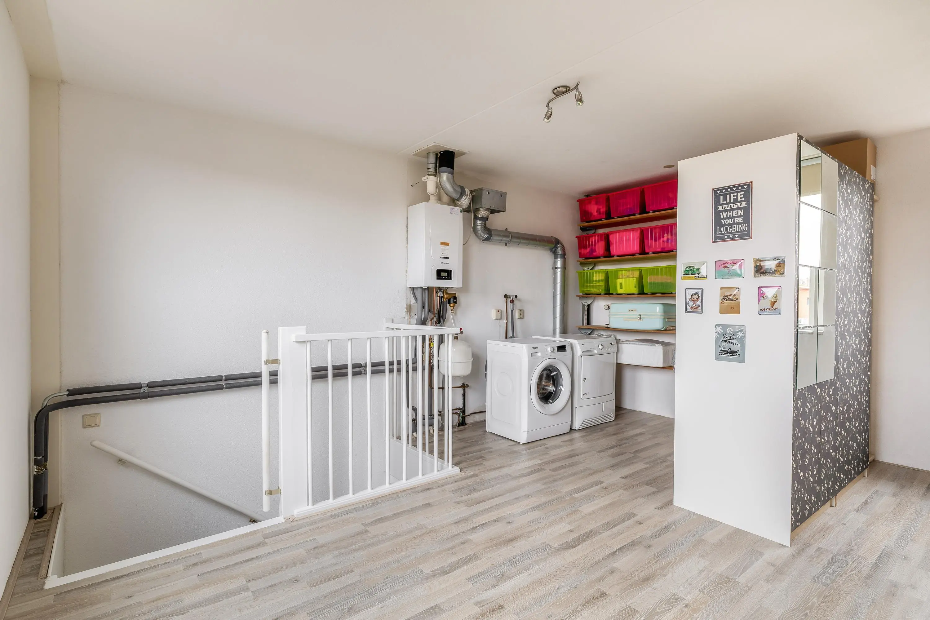 De zolderverdieping is een open en multifunctionele ruimte. Hier zijn de aansluitingen voor wasmachine en droger aanwezig, evenals de opstellingen van de cv-ketel en de mechanische ventilatie. Deze verdieping biedt volop mogelijkheden voor het realiseren van een extra slaapkamer of werkkamer. Ook is er op deze verdieping een deur aanwezig met toegang tot het dak. Het dak is voorzien van sedum-beplanting; een natuurlijke koeling en isolatie!
