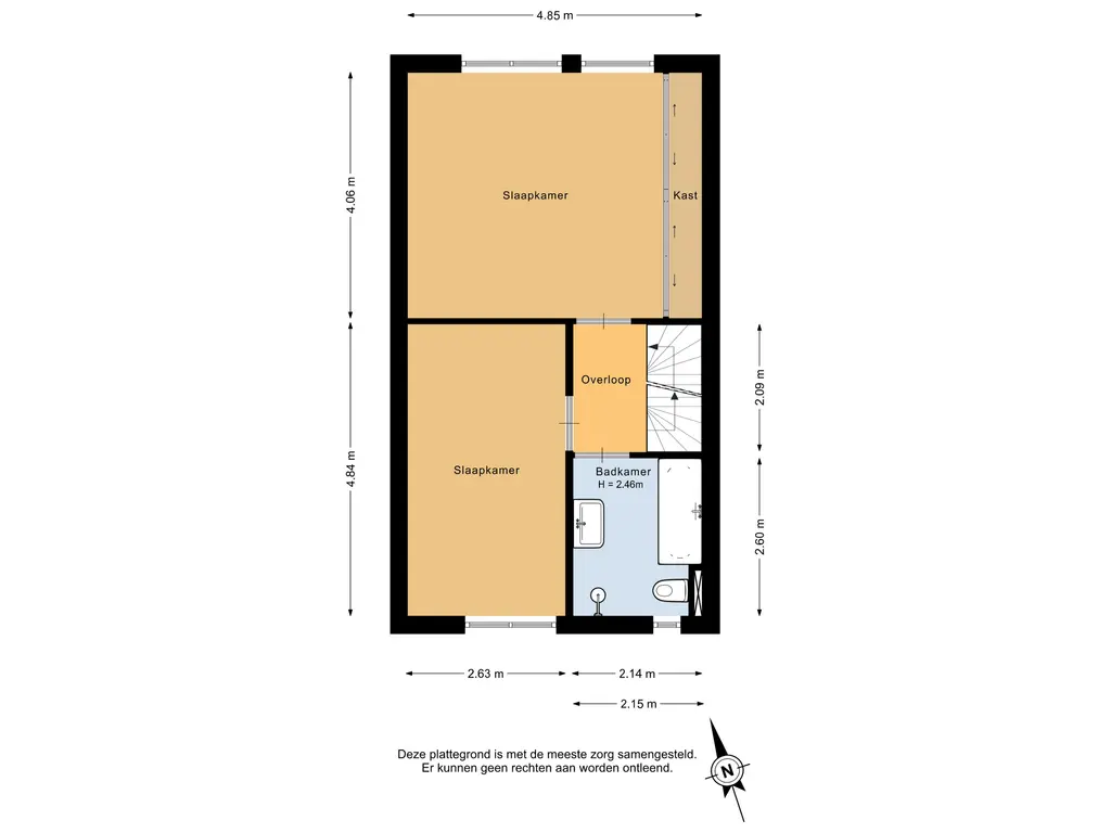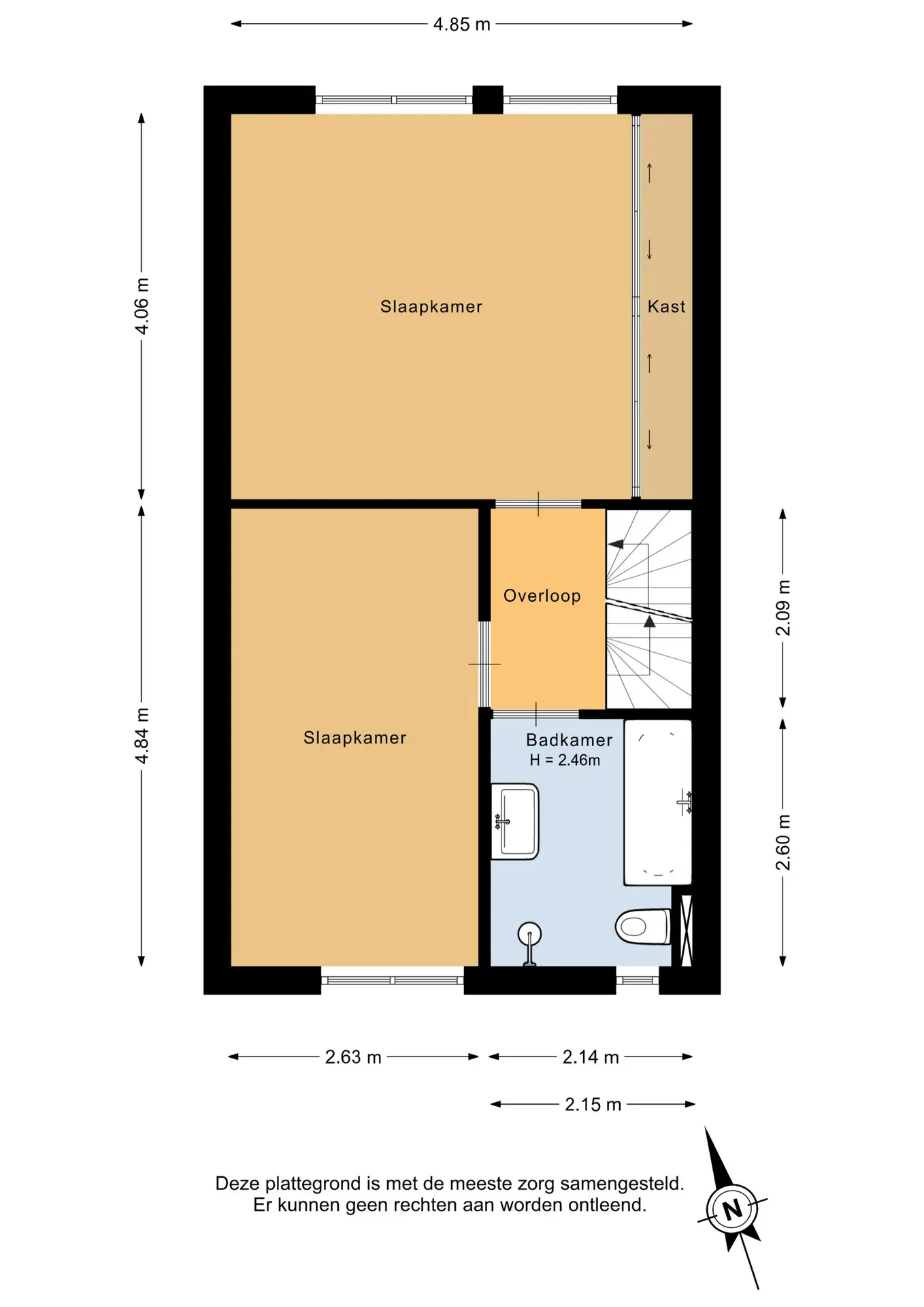 De tweede slaapkamer is gelegen aan de voorzijde en heeft een oppervlakte van circa 12,5m².