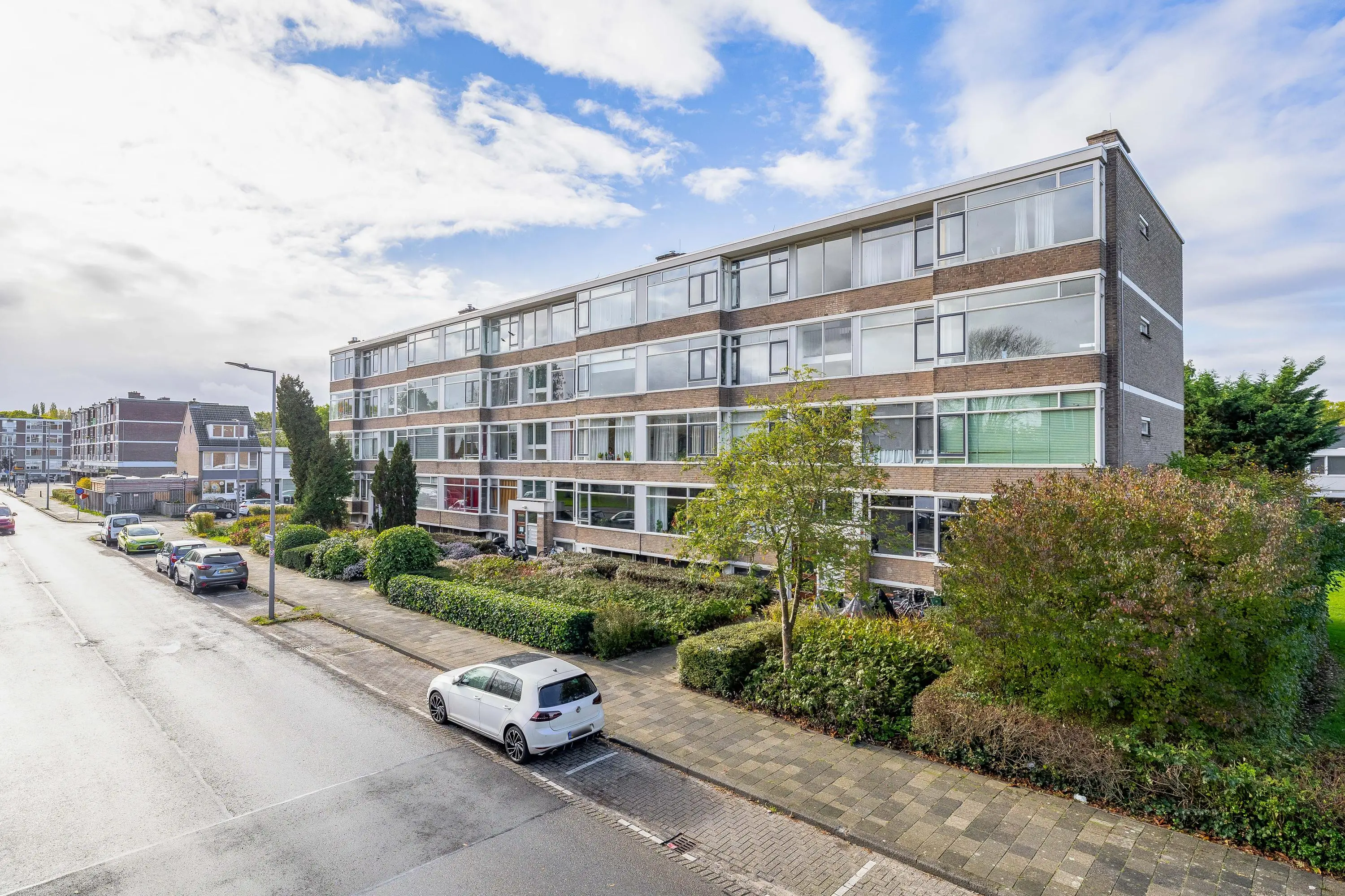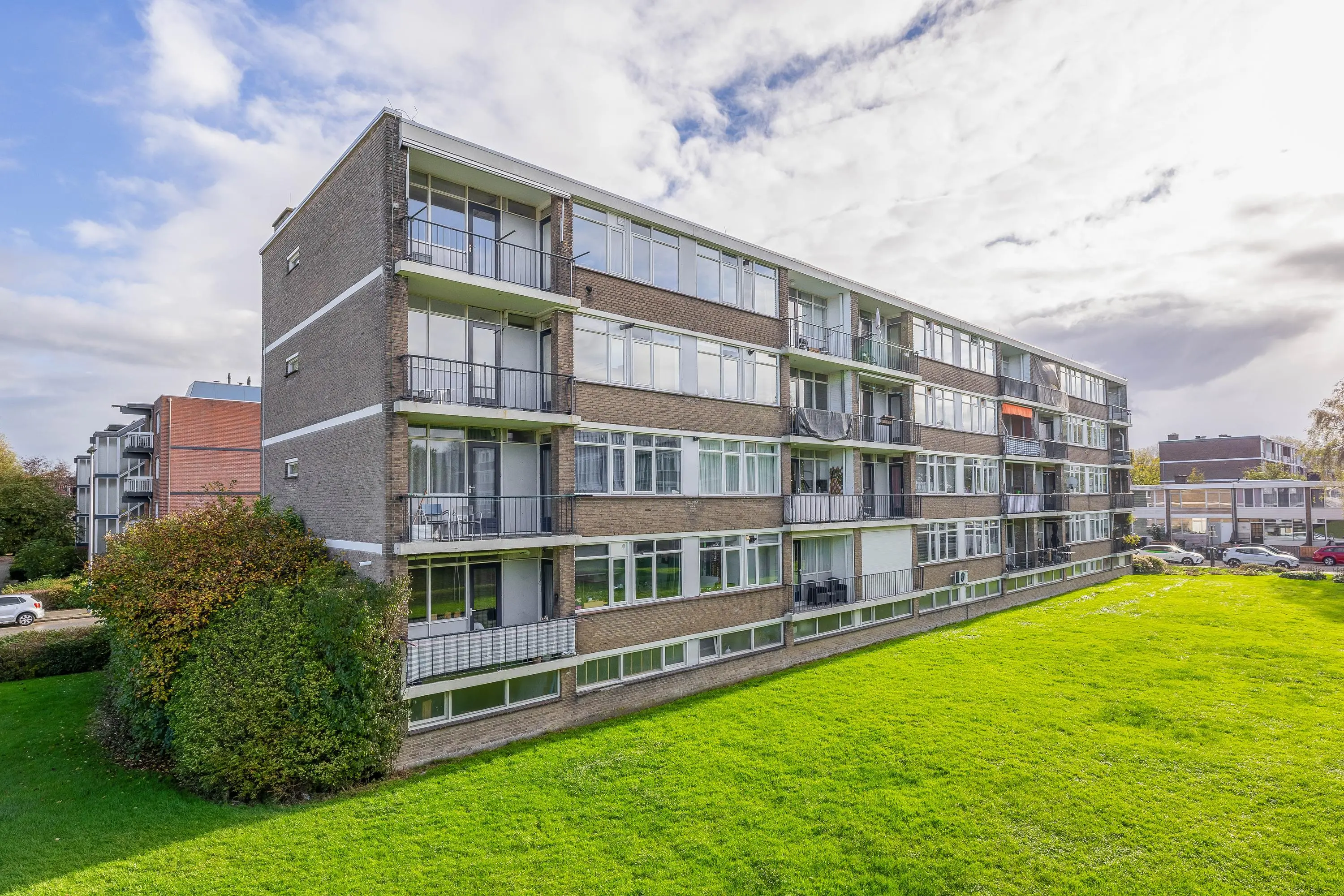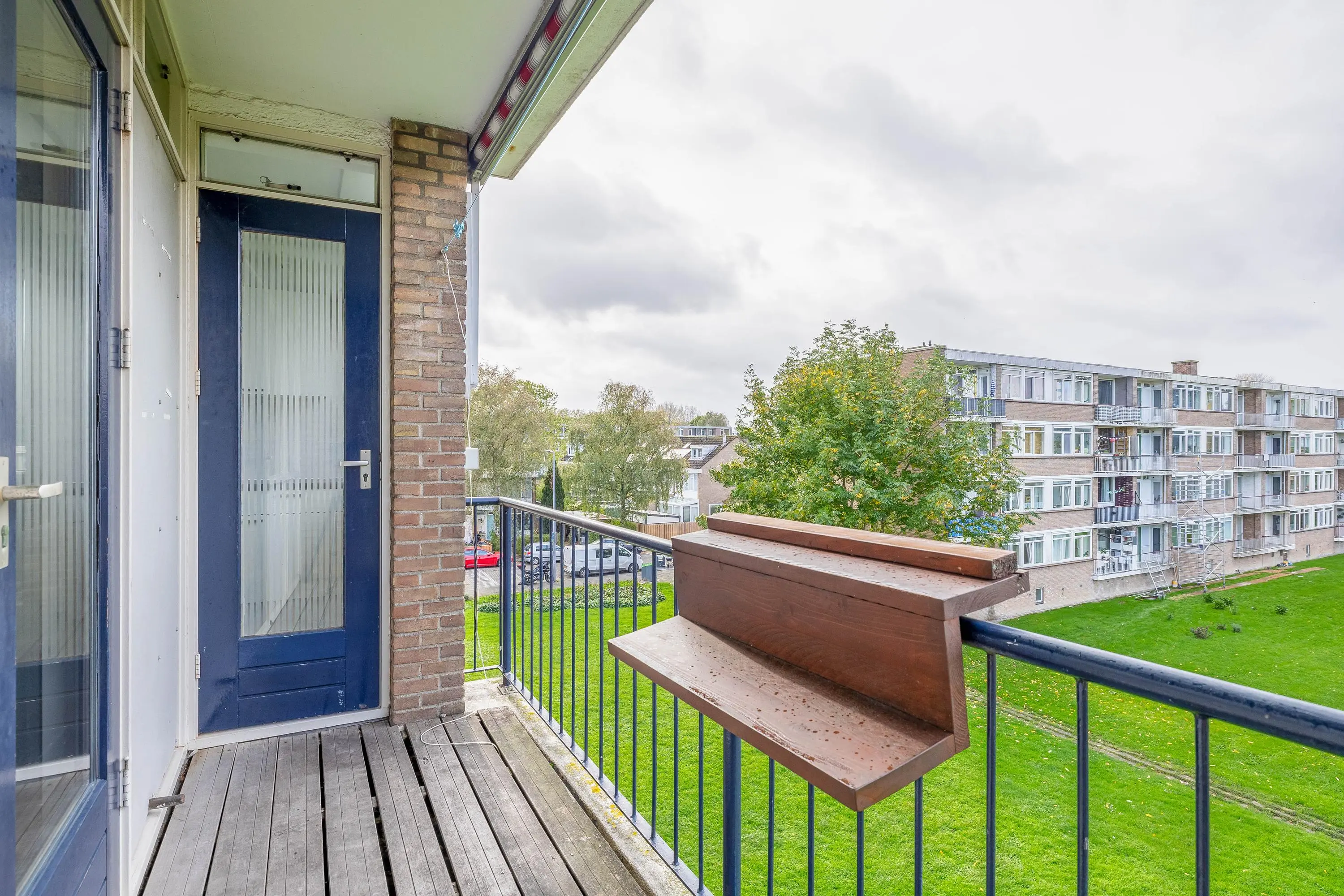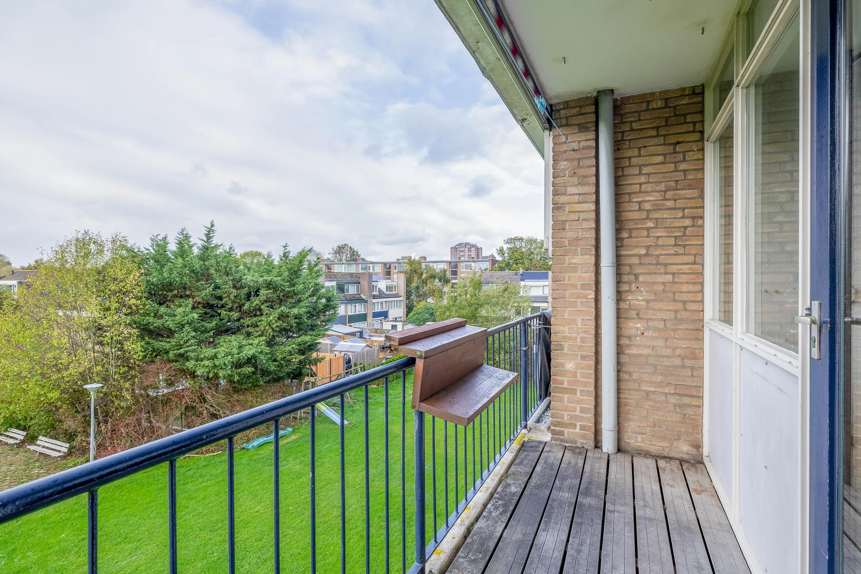 Het balkon ligt op het zonnige zuidwesten en geeft een fijn vrij uitzicht op een groenstrook.