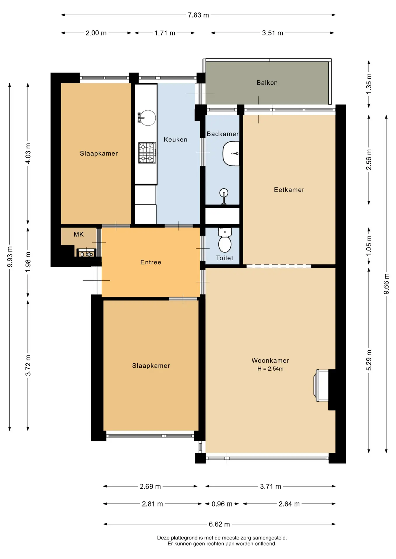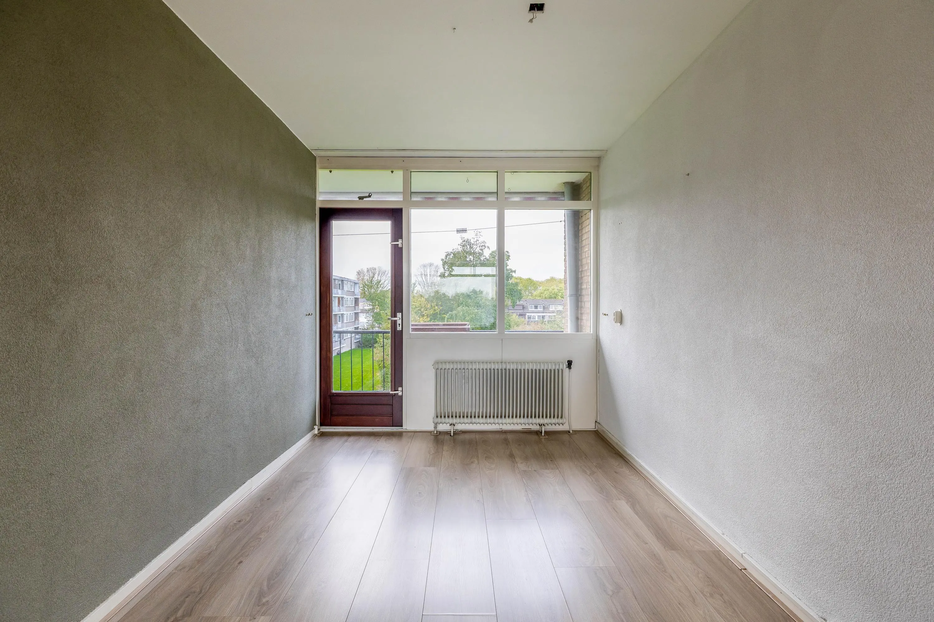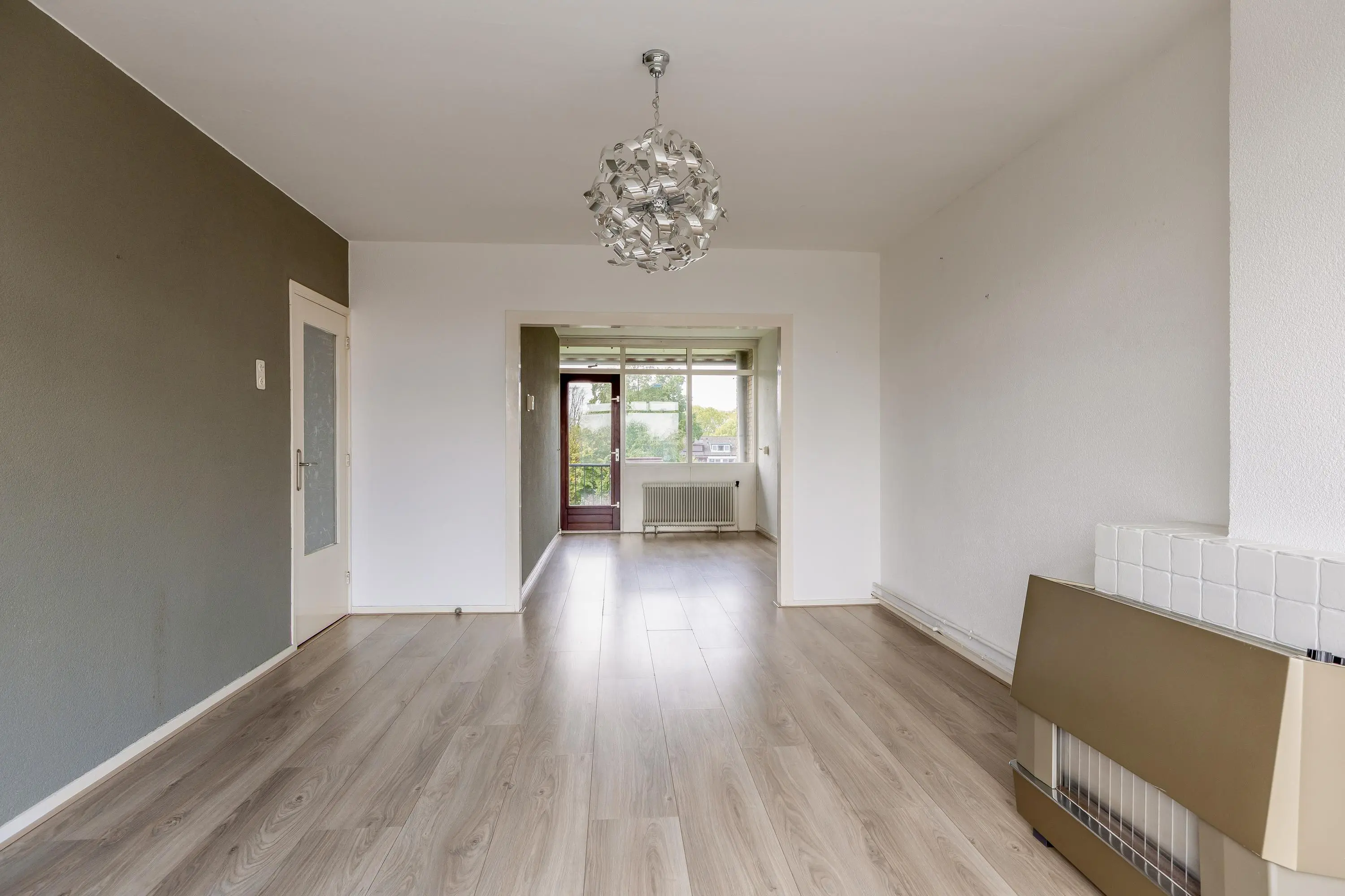 Vanwege het feit dat er 1 kamer bij de living is getrokken is er een totale oppervlakte van maar liefst 31m². De ruimte is nu goed op te delen in een woon- en eetgedeelte. Het eetgedeelte ligt aan de achterzijde en geeft toegang tot het zonnige balkon.