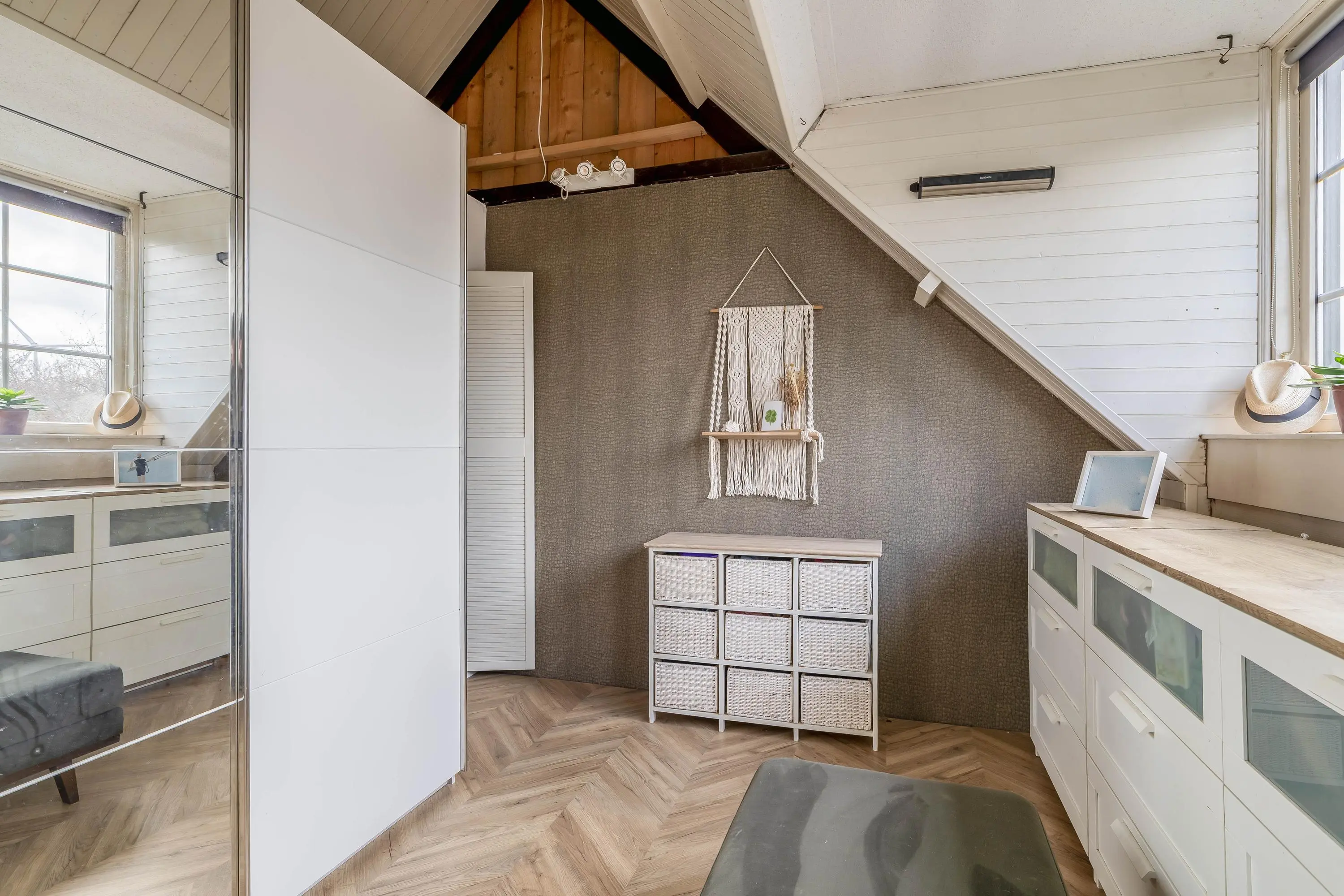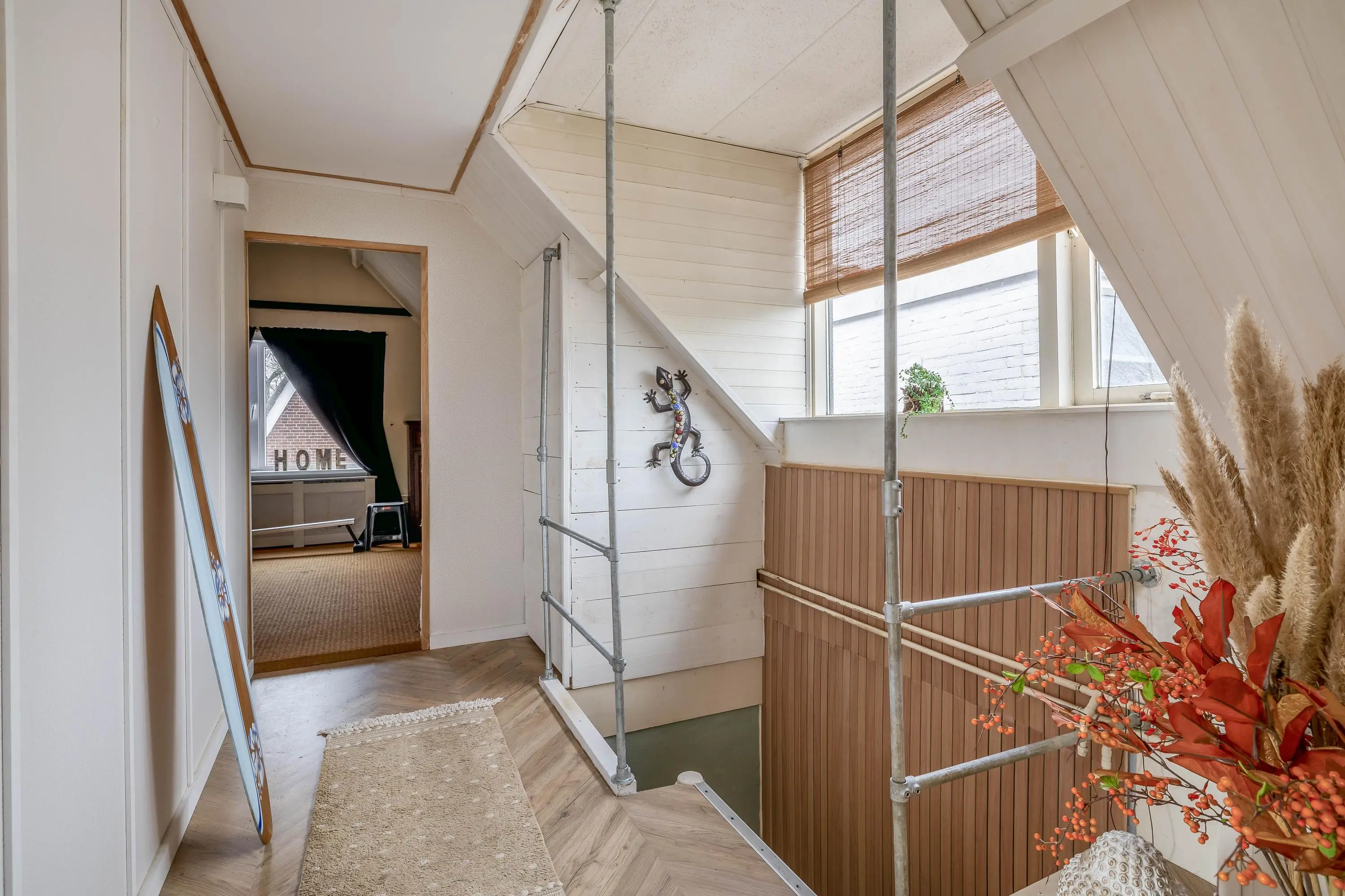 De overloop biedt toegang tot drie slaapkamers en is afgewerkt met een visgraatvloer, die doorloopt in de hoofdslaapkamer en de derde slaapkamer. Daarnaast is er een praktische kast aanwezig.