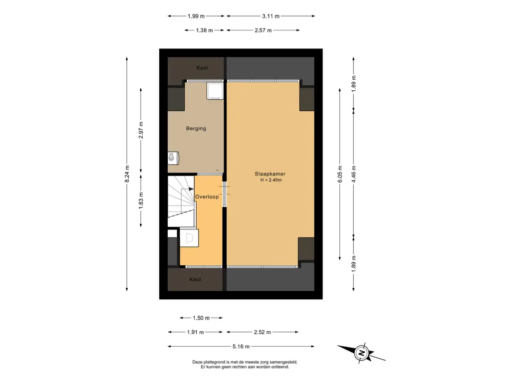 Deze presentatie is met zorg samengesteld. Desondanks kunnen aan deze presentatie geen rechten worden ontleend. Daarnaast aanvaardt de makelaar of zijn opdrachtgever geen aansprakelijkheid voor de in de presentatie verstrekte informatie. Mocht de presentatie vragen oproepen, dan nodigen wij u van harte uit deze onder onze aandacht te brengen.