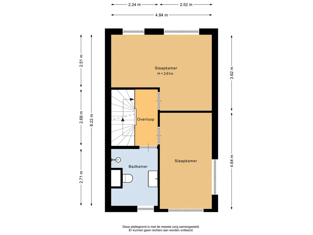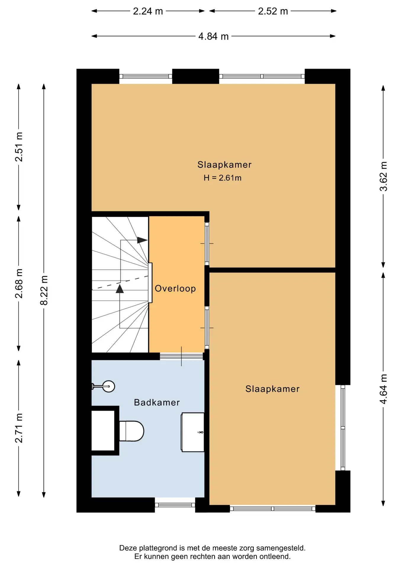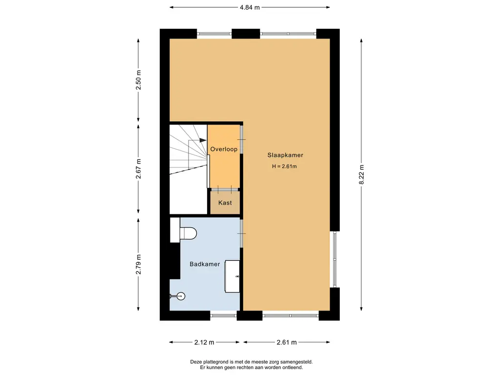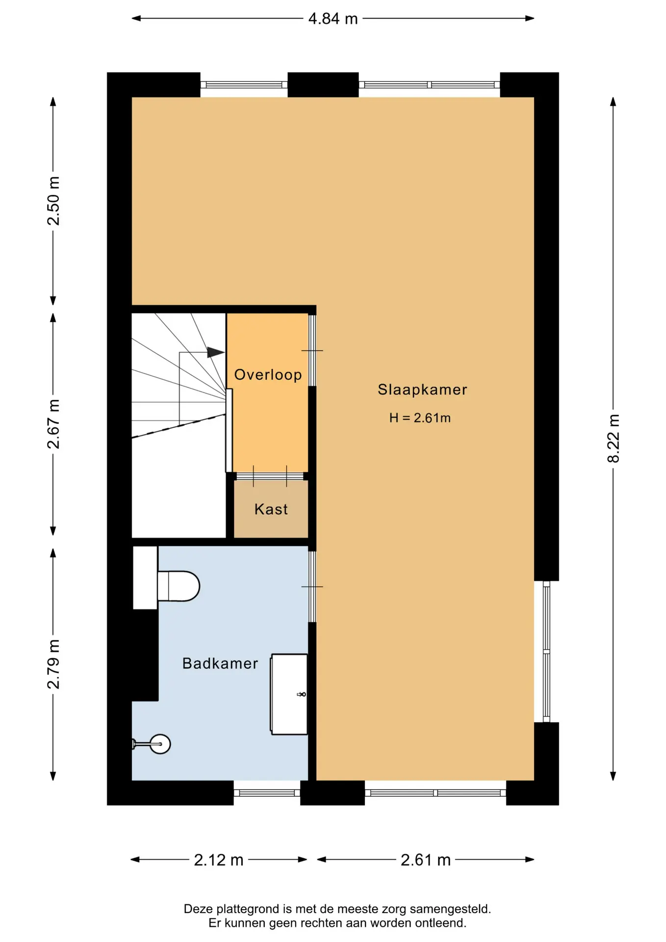 De hoofdslaapkamer ligt aan de achterzijde van de woning en heeft een oppervlakte van circa 15m².