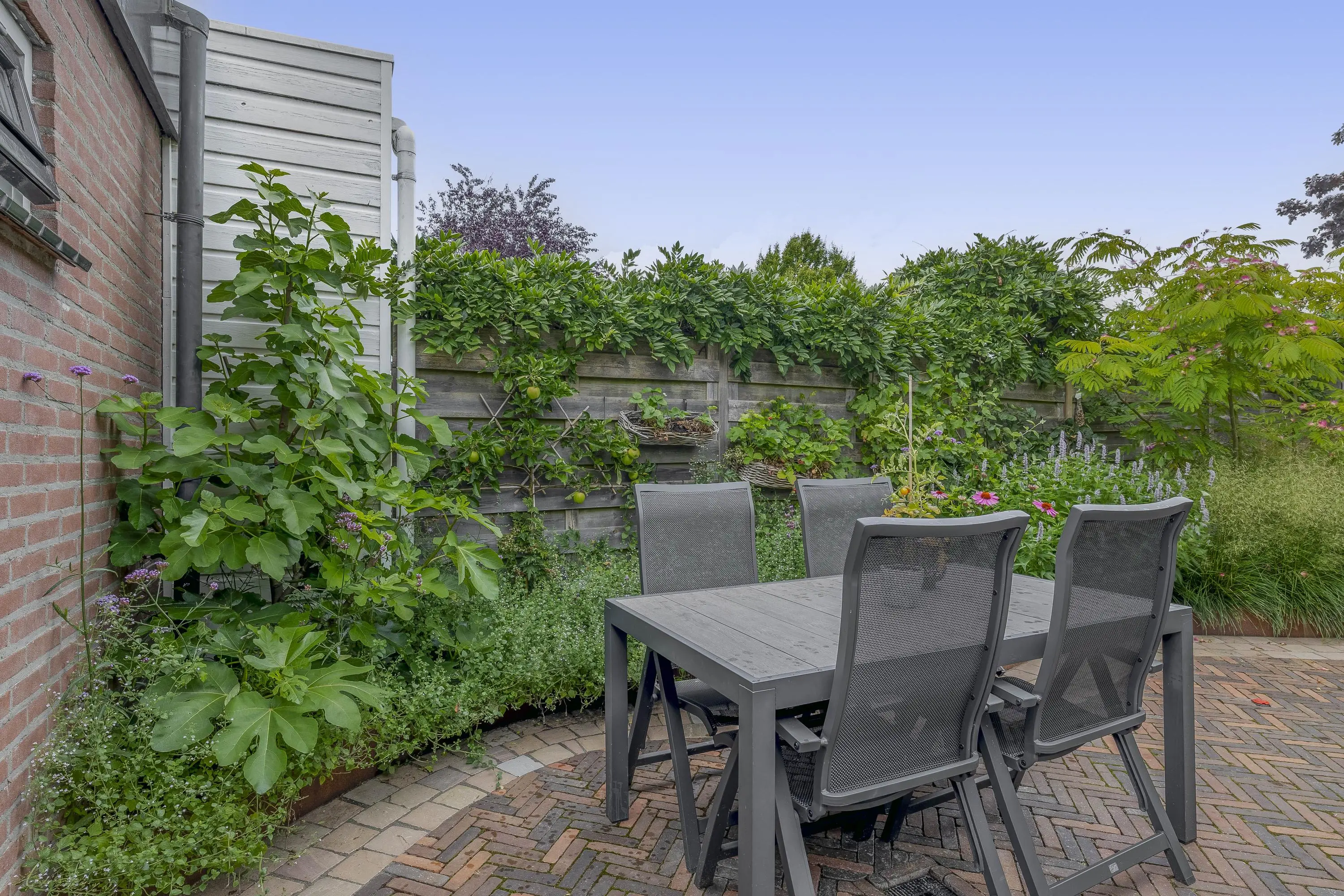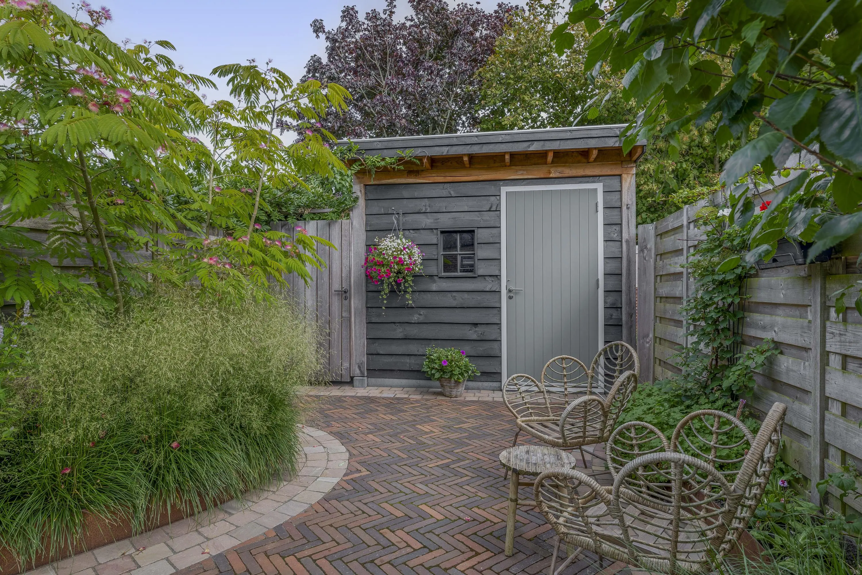 De fraai aangelegde achtertuin is gelegen op het zuidoosten, waardoor je optimaal profiteert van de ochtend- en middagzon. De tuin is grotendeels bestraat, wat zorgt voor een onderhoudsvriendelijke basis, maar beschikt ook over borders met aarde voor een groene uitstraling. Dankzij de royale afmetingen is er volop ruimte om een comfortabele zithoek te creëren. Achterin de tuin bevindt zich een praktische houten berging. Deze berging is in 2023 gebouwd en volledig geïsoleerd. De tuin is tevens bereikbaar via een achterom.