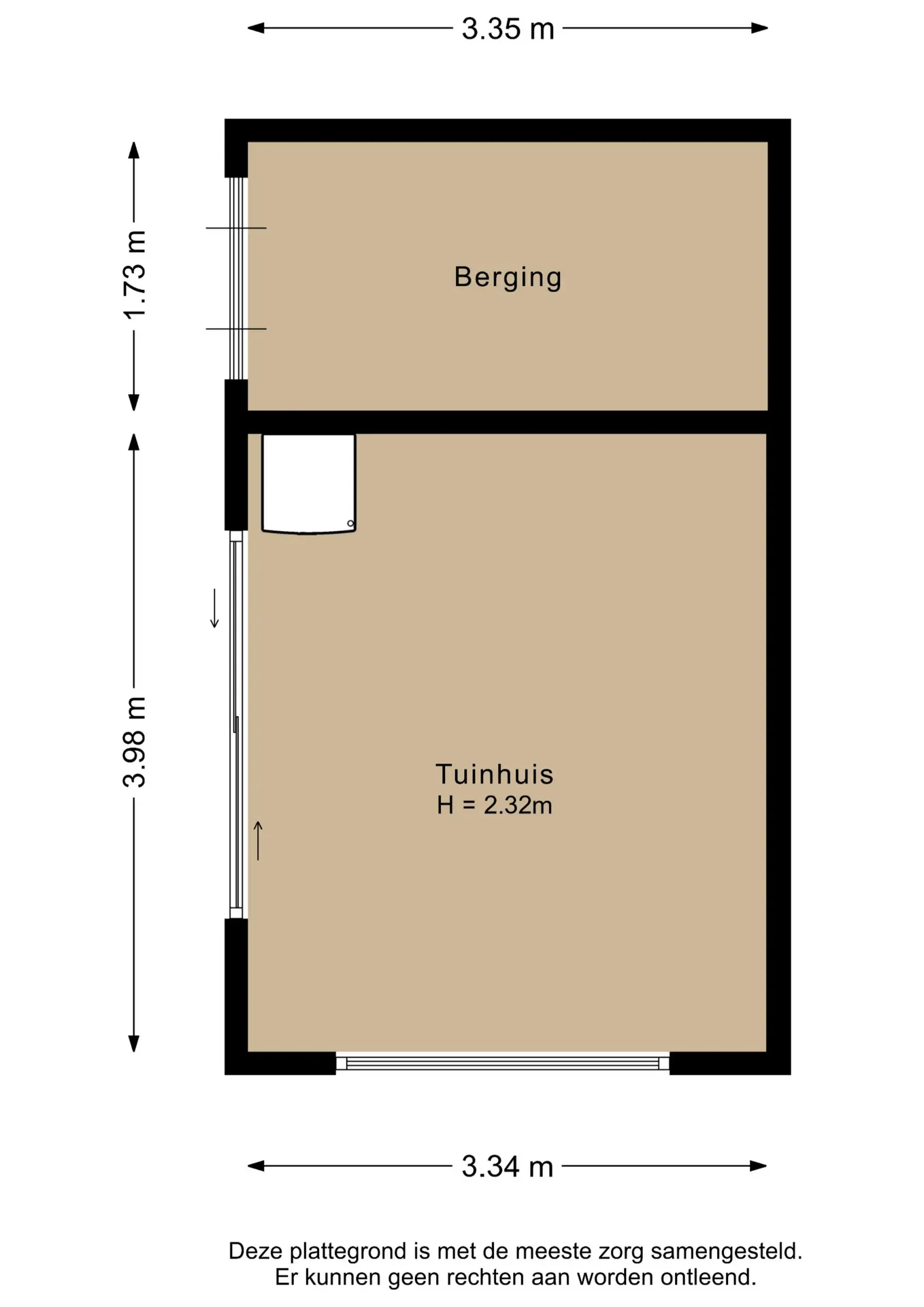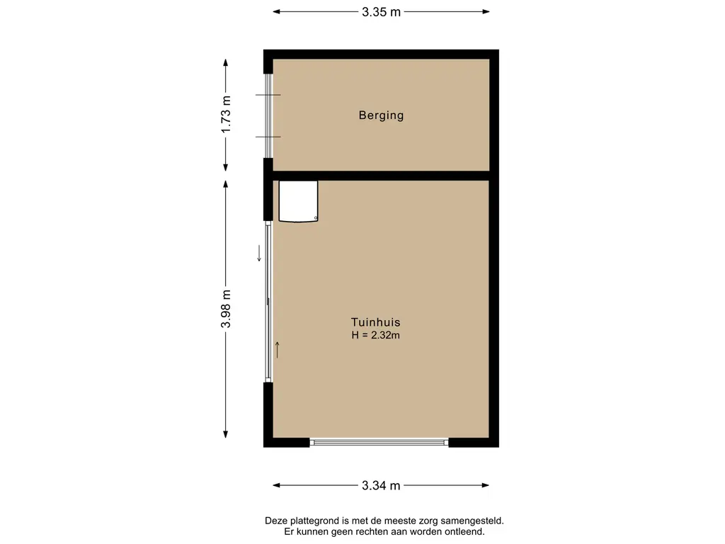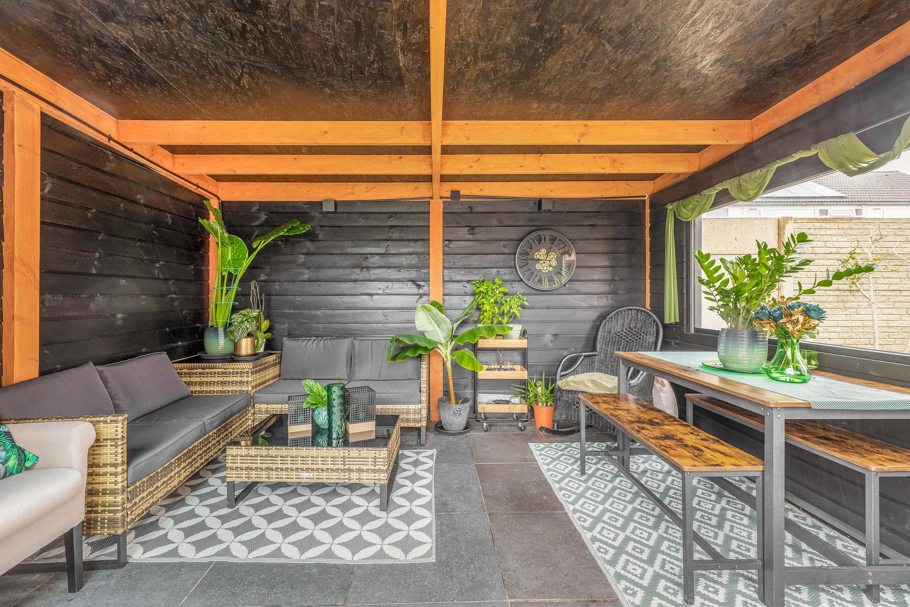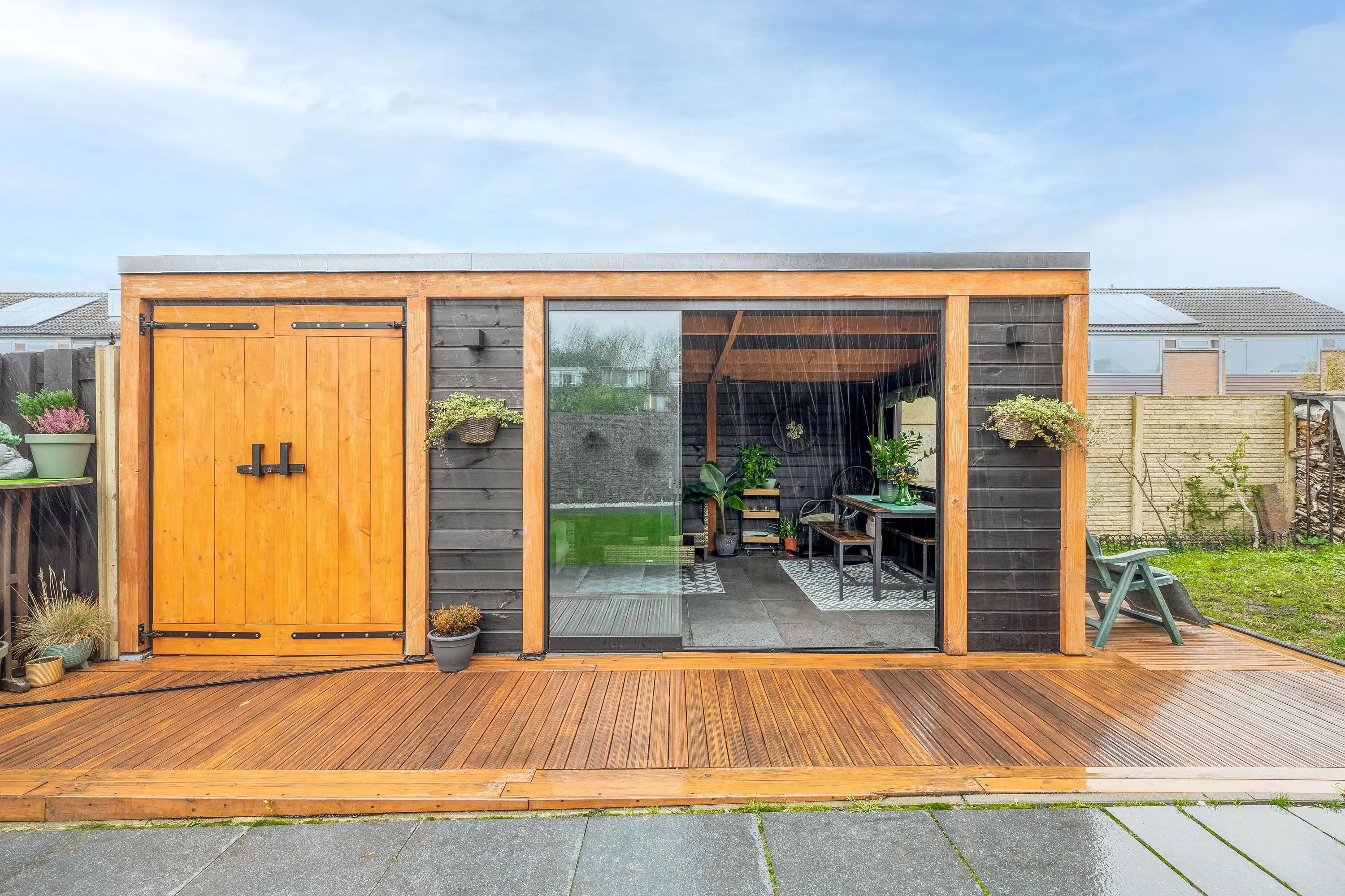 Het tuinhuis (ca. 12m²) heeft een luxe afwerking, is voorzien van elektra en beschikt over een glazen schuifdeur. Het tuinhuis is naar eigen wens in te richten en wordt momenteel gebruikt als sfeervolle loungeplek. Direct aan het tuinhuis grenst een aparte berging van circa 5,5m².
