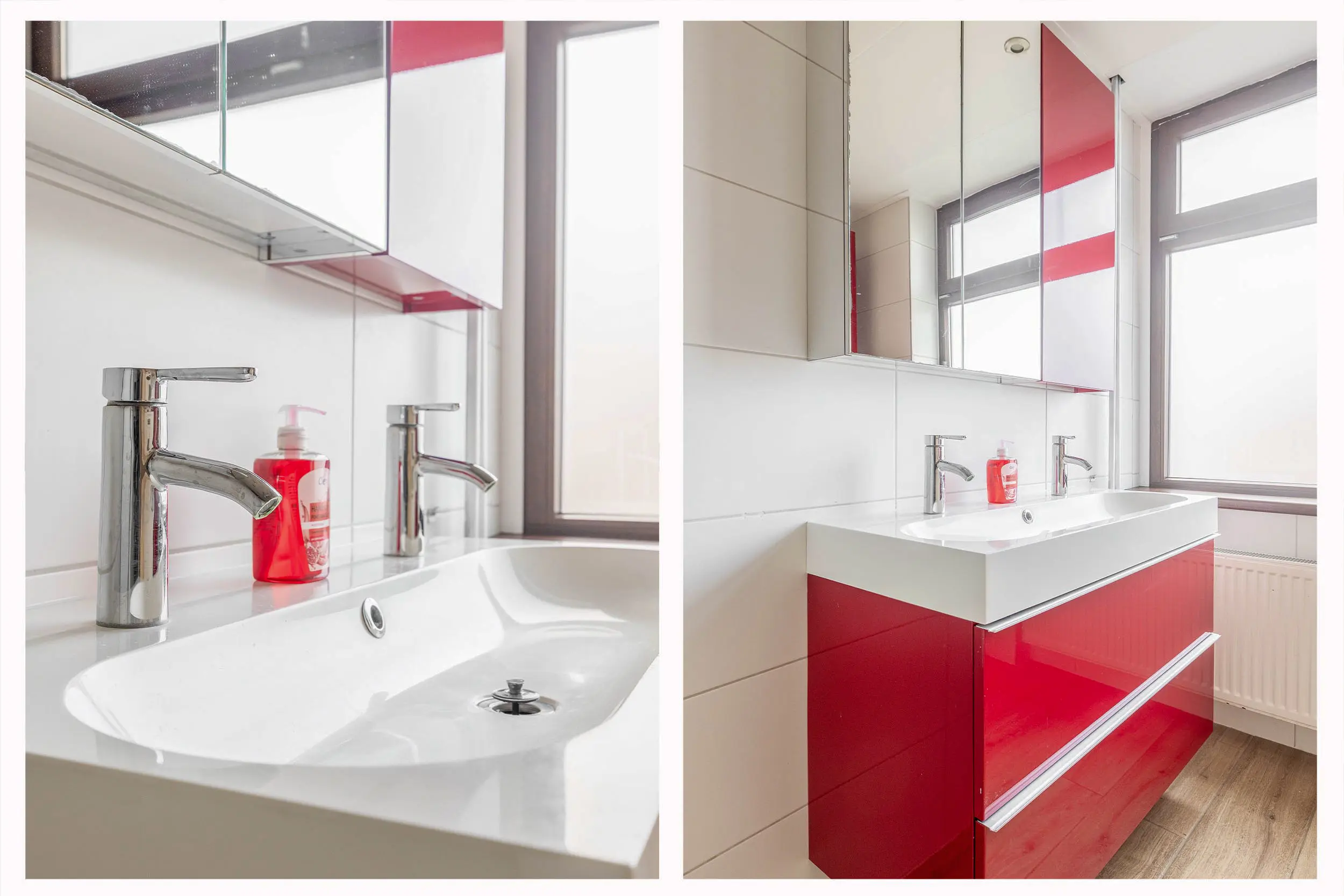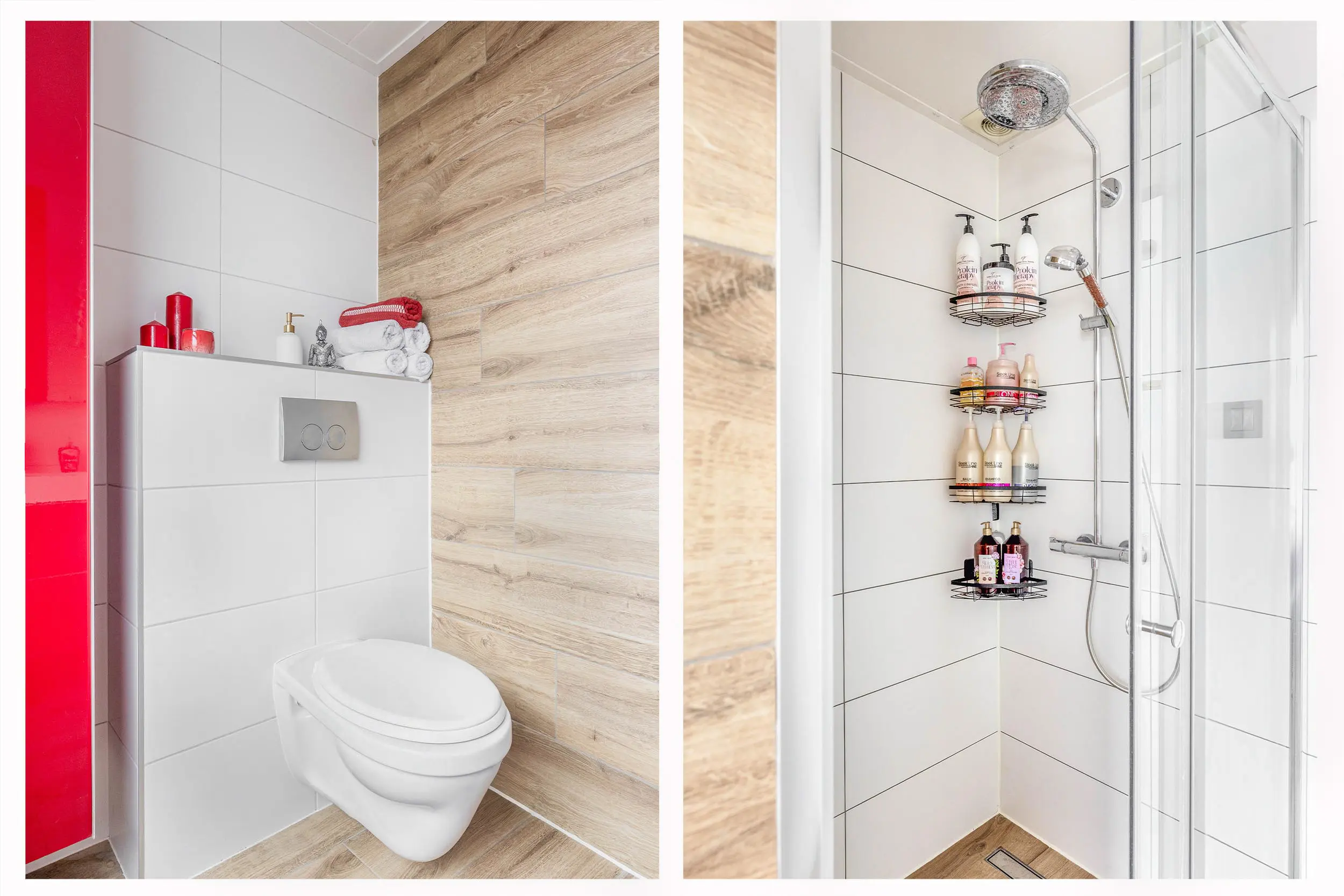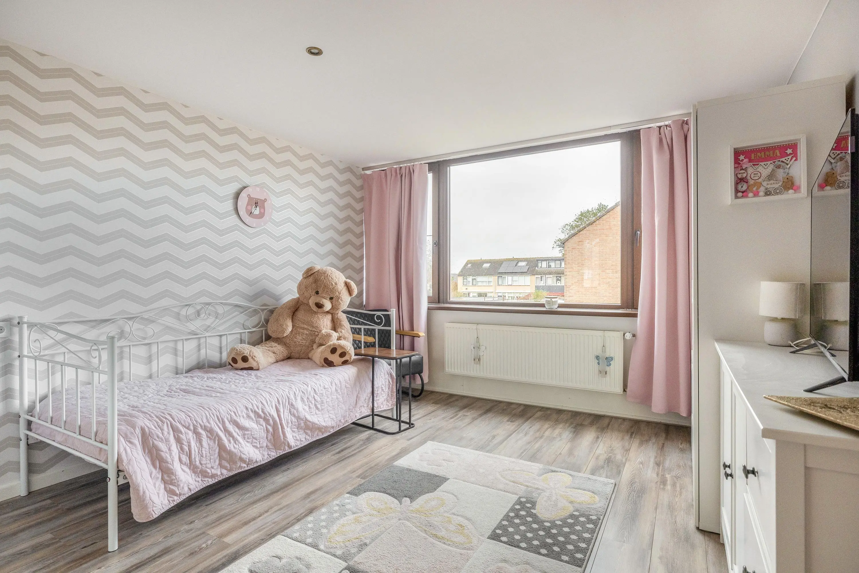 De hoofdslaapkamer ligt aan de achterzijde van de woning en heeft een royale oppervlakte van circa 15,5m². De tweede slaapkamer bevindt zich aan de voorzijde en meet ongeveer 12m². Beide kamers profiteren van veel natuurlijke lichtinval dankzij de grote raampartijen.