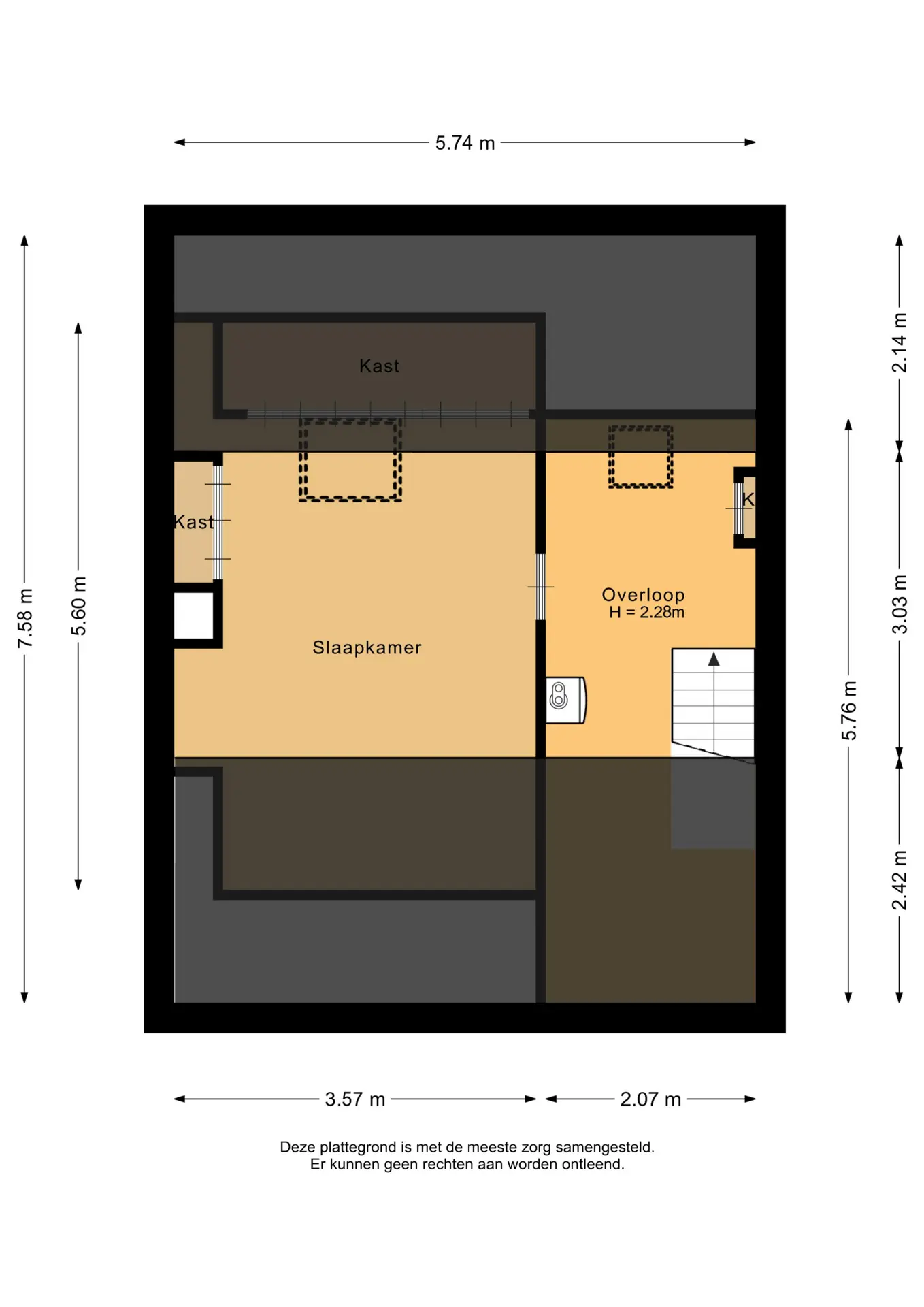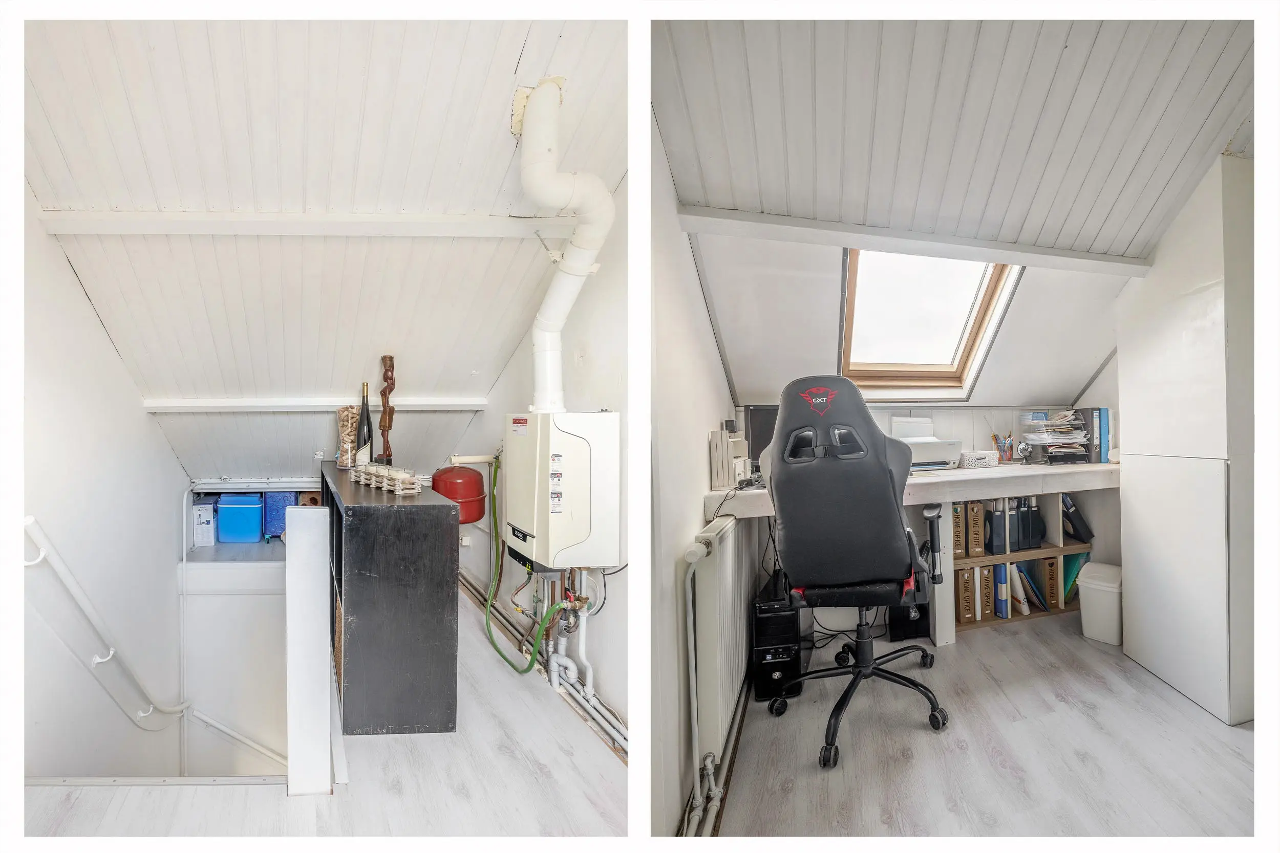 De overloop is voorzien van een laminaatvloer die doorloopt in de slaapkamer. Op de overloop bevinden zich de cv-opstelling en de witgoedaansluitingen. Dankzij het dakraam geniet deze ruimte van prettige natuurlijke lichtinval.