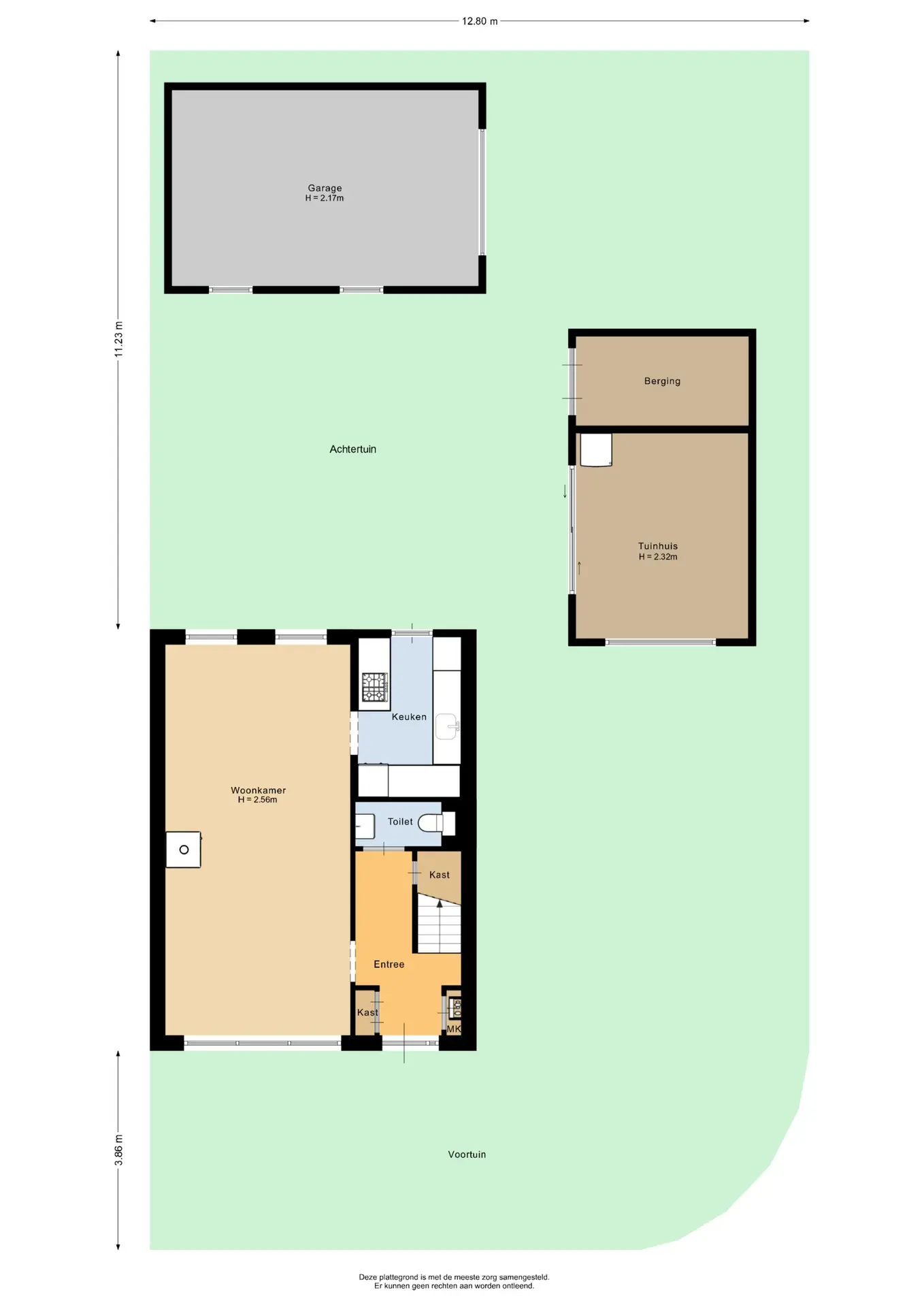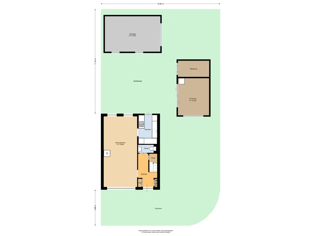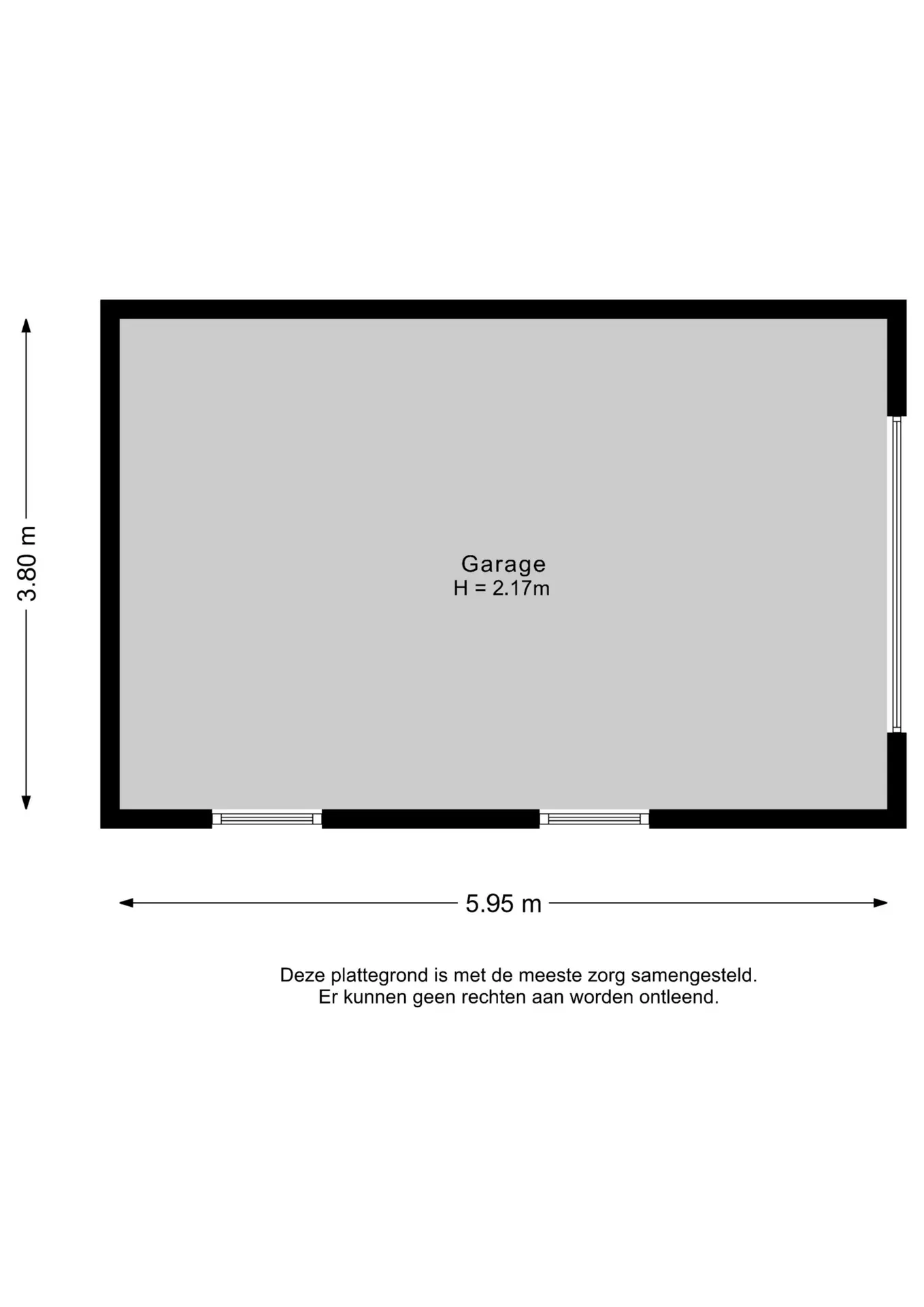 De garage heeft een oppervlakte van circa 22,5m² en biedt de mogelijkheid om uw auto te parkeren of extra opslagruimte te creëren. De tuin is bovendien bereikbaar via een achterom.