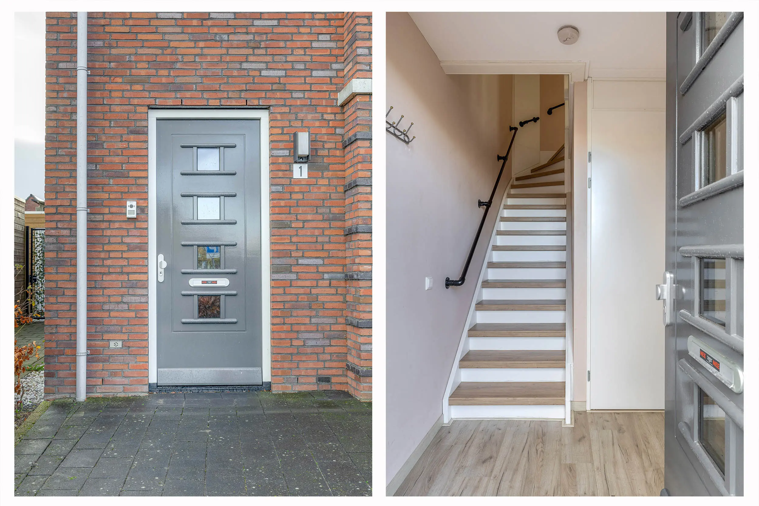 Bij binnenkomst stapt u de hal binnen, voorzien van een keurige laminaatvloer die doorloopt in de gehele woning. In de hal bevinden zich de meterkast, de warmtepomp en de trapopgang naar de eerste verdieping.